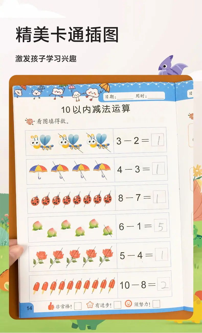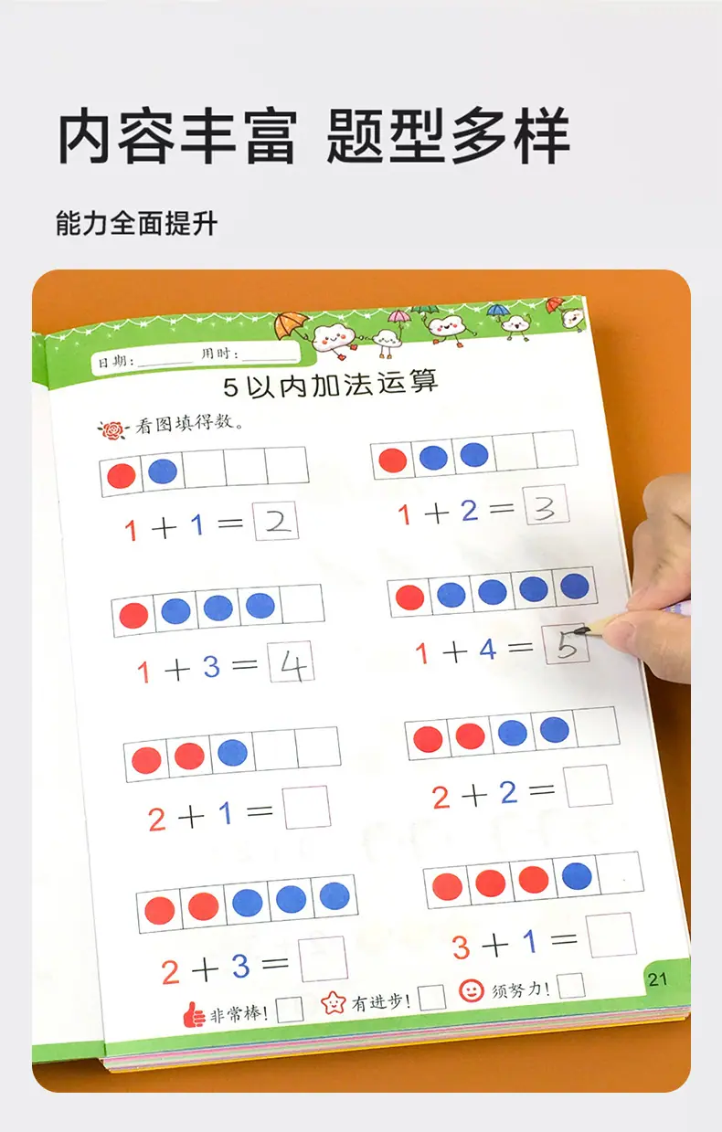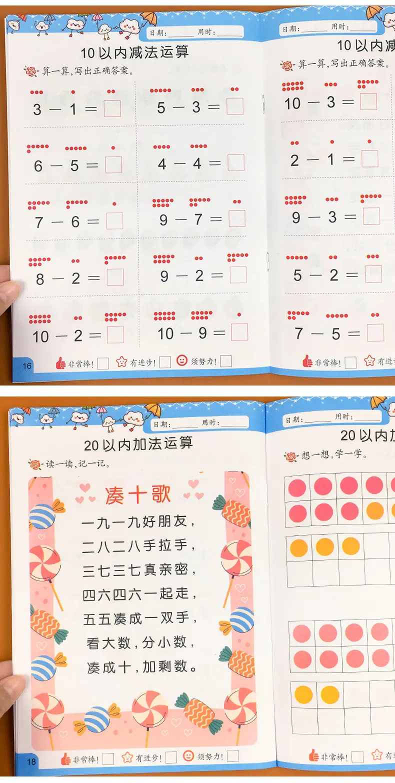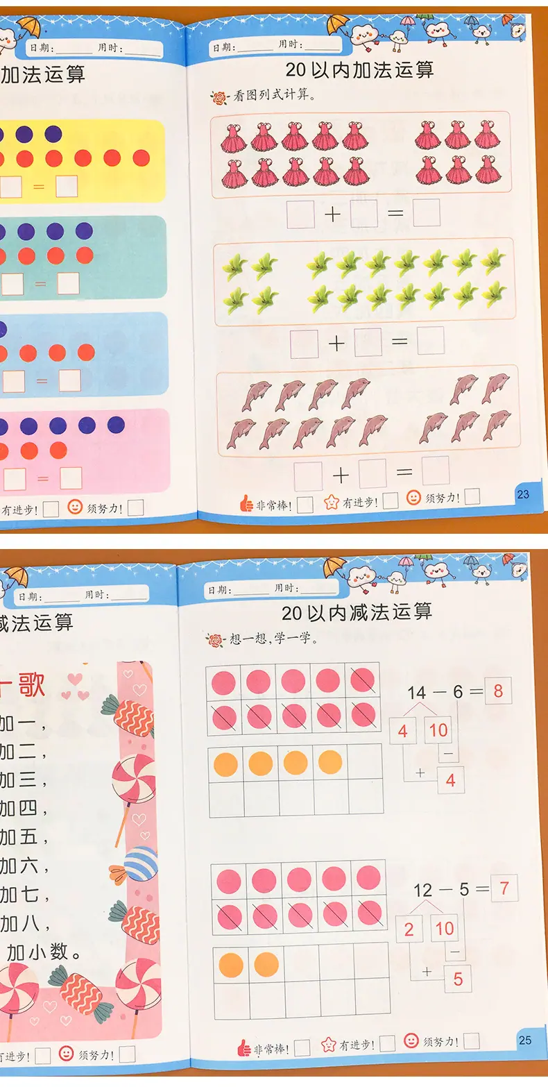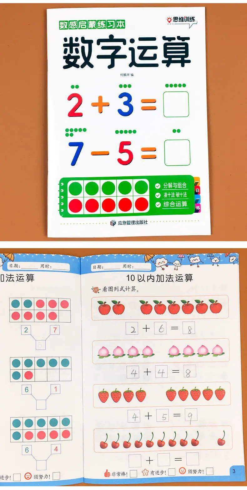 D Práctica de Iluminación del Sentido Numérico Libro para Niños Pequeños Educación Temprana Transición a la Escuela Primaria Libro de Texto de Entrenamiento del Pensamiento Matemático Libro de Aritmética de Suma y Resta