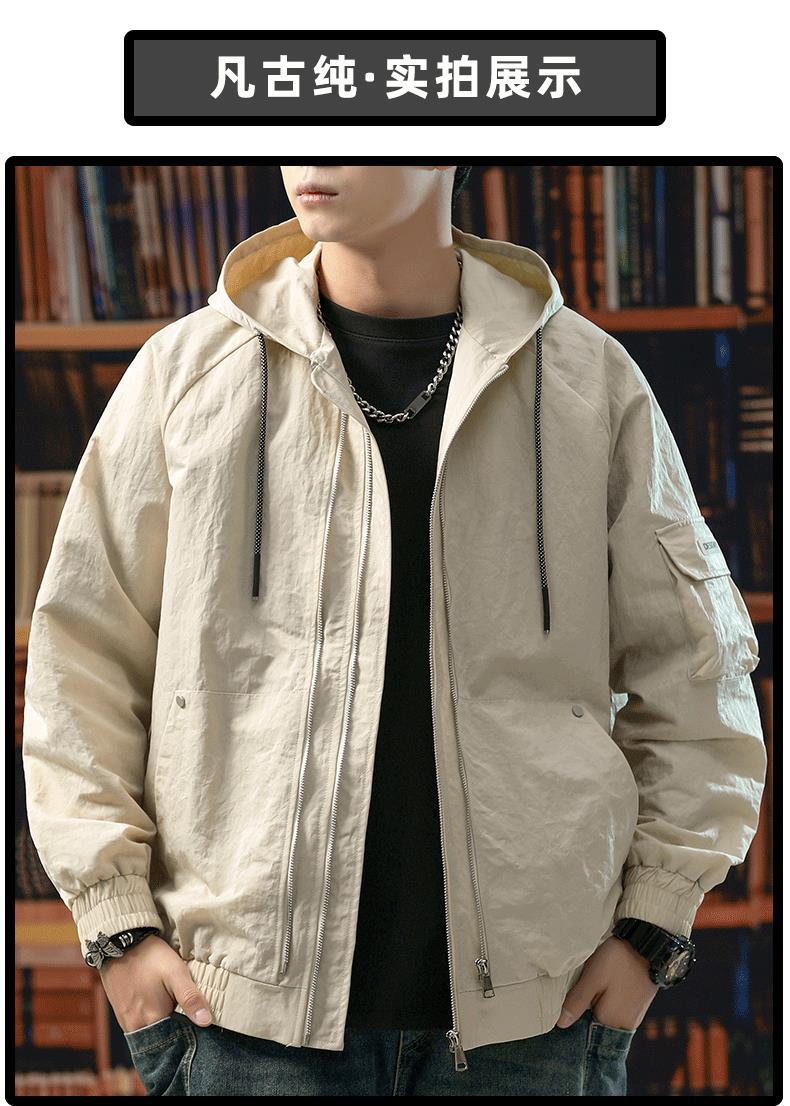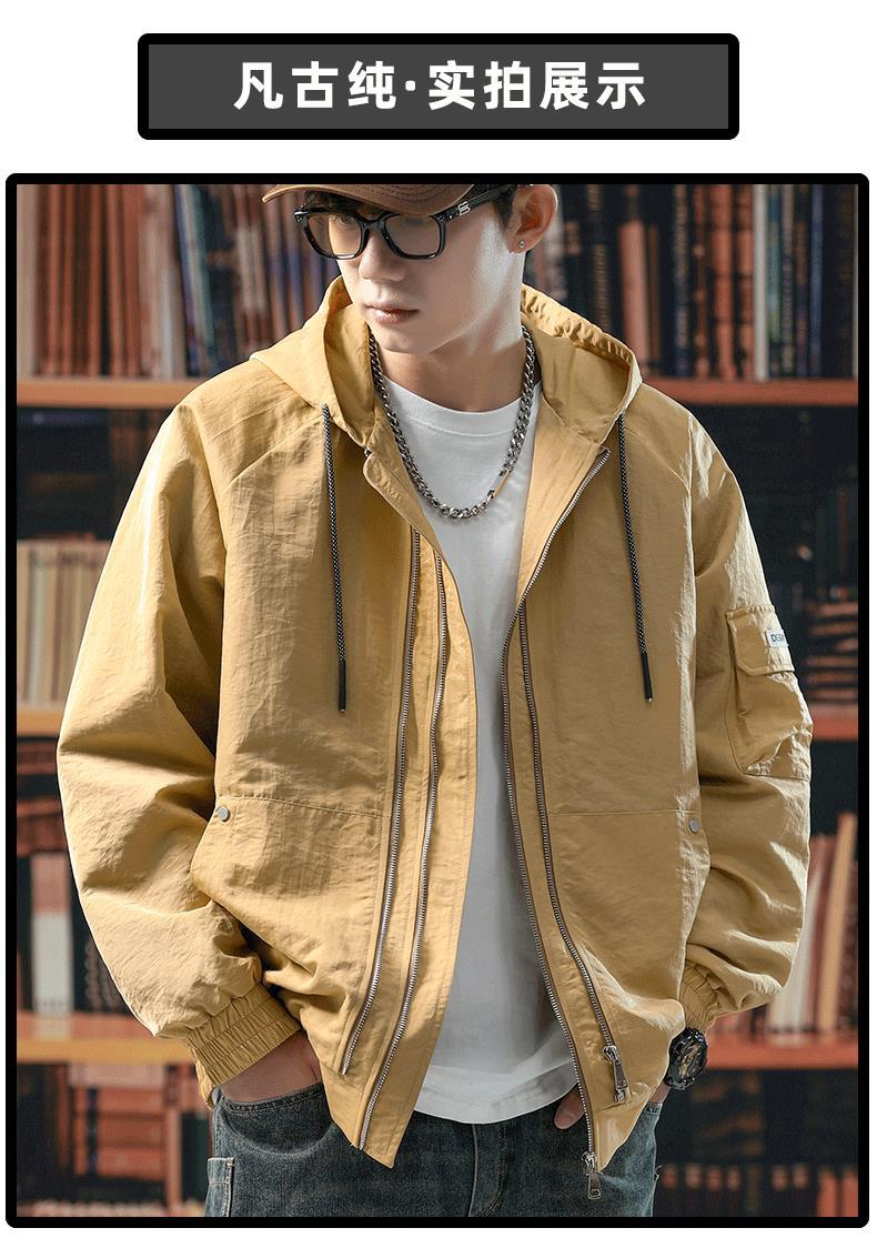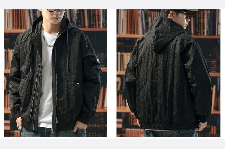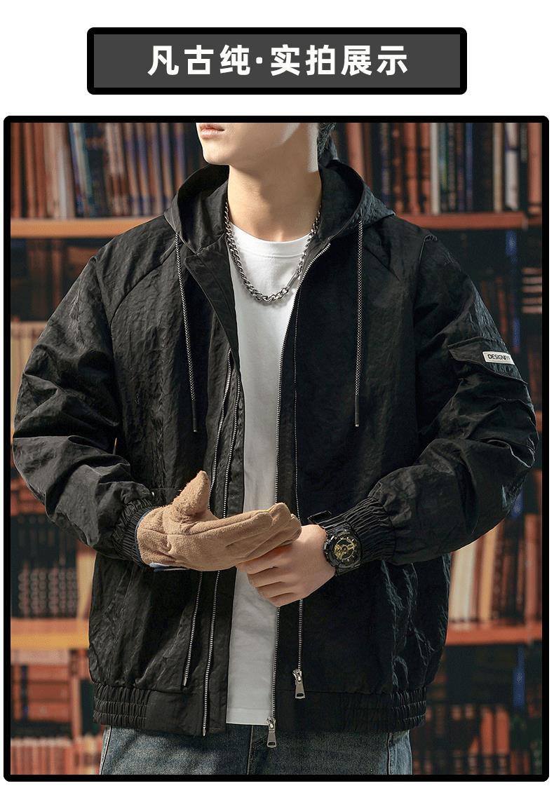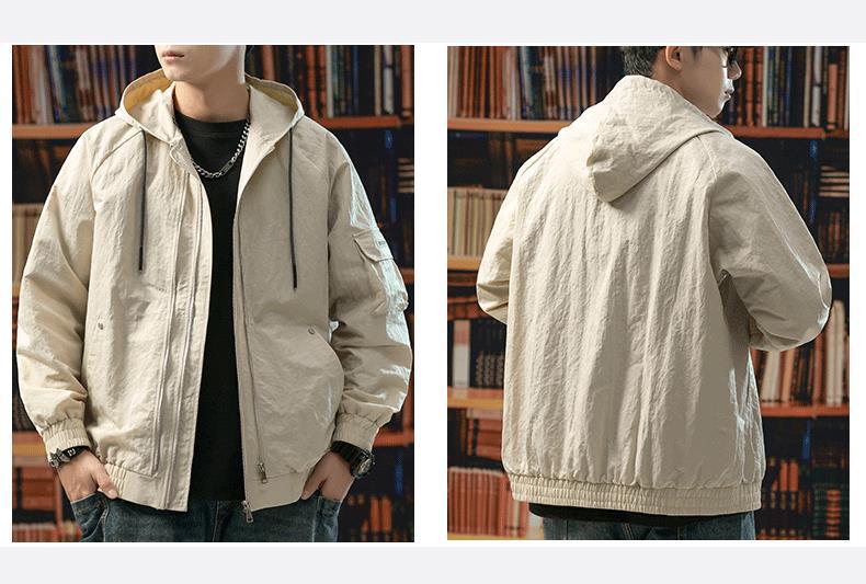 Chamarra de trabajo para hombre primavera y otoño casual holgada fresca guapa top con capucha cortavientos abrigo marca de moda