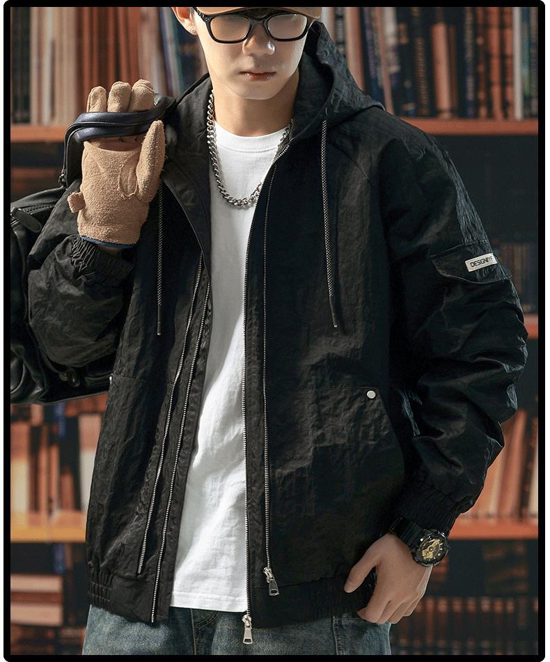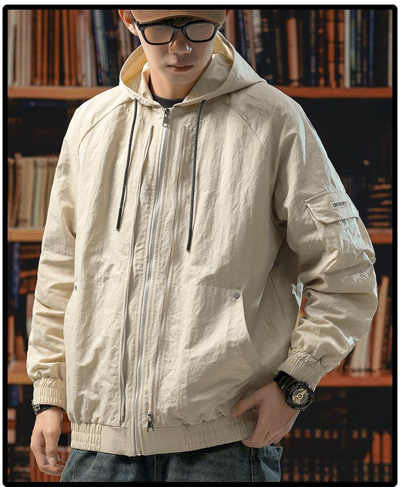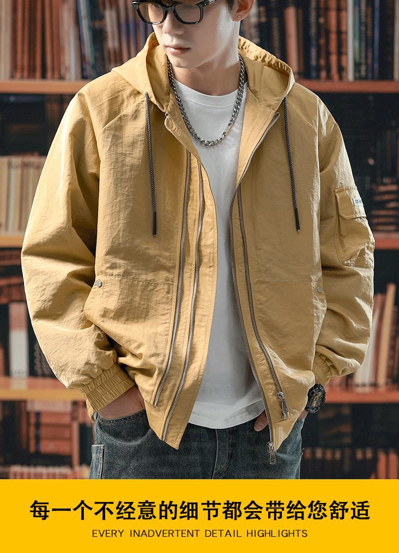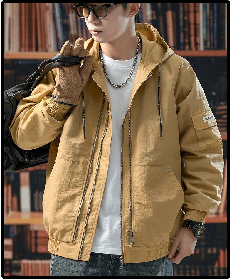 Chamarra de trabajo para hombre primavera y otoño casual holgada fresca guapa top con capucha cortavientos abrigo marca de moda