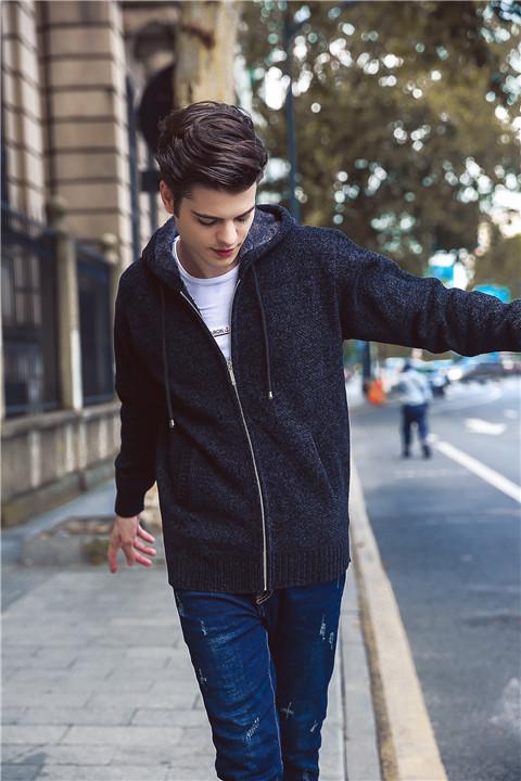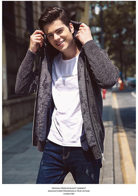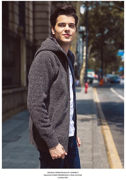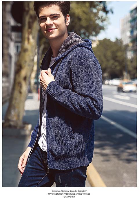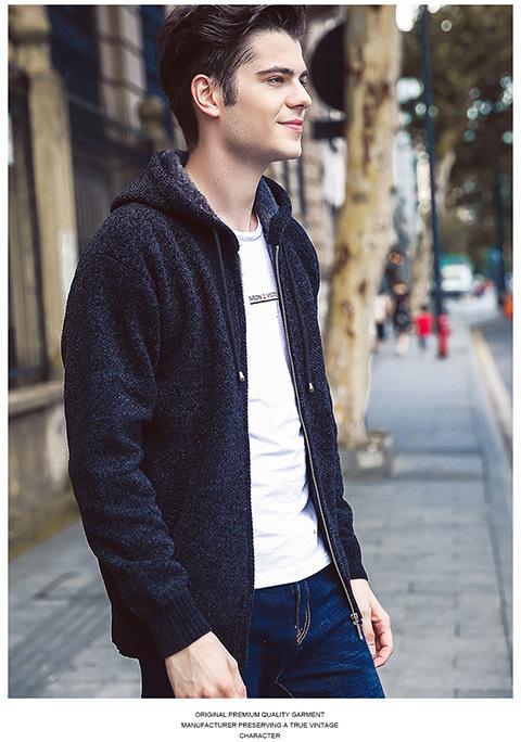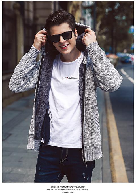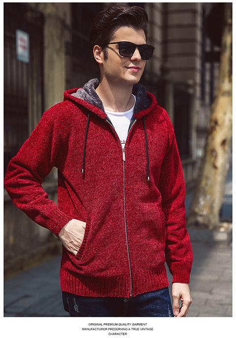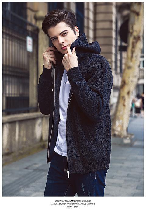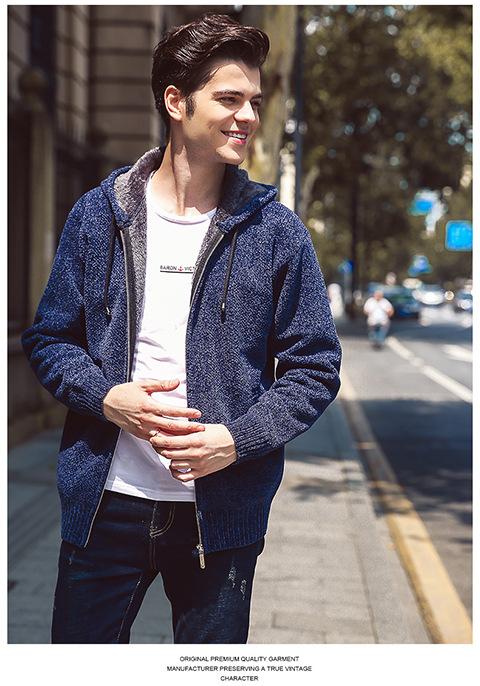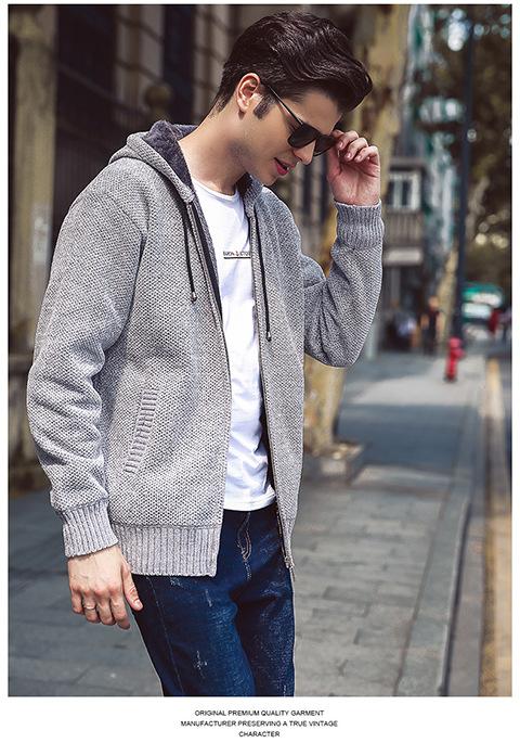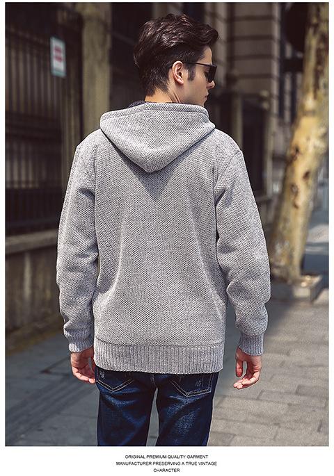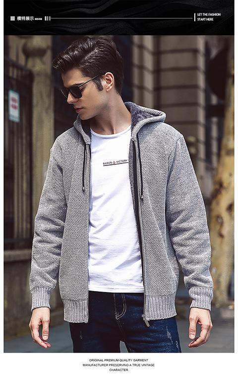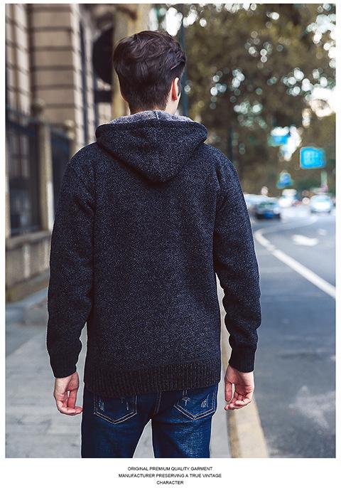 Invierno Nuevo Suéter Cárdigan con Capucha para Hombre Europeo y Americano Plus Terciopelo Grueso Tejido Sudadera para Hombre Joven T-1861#