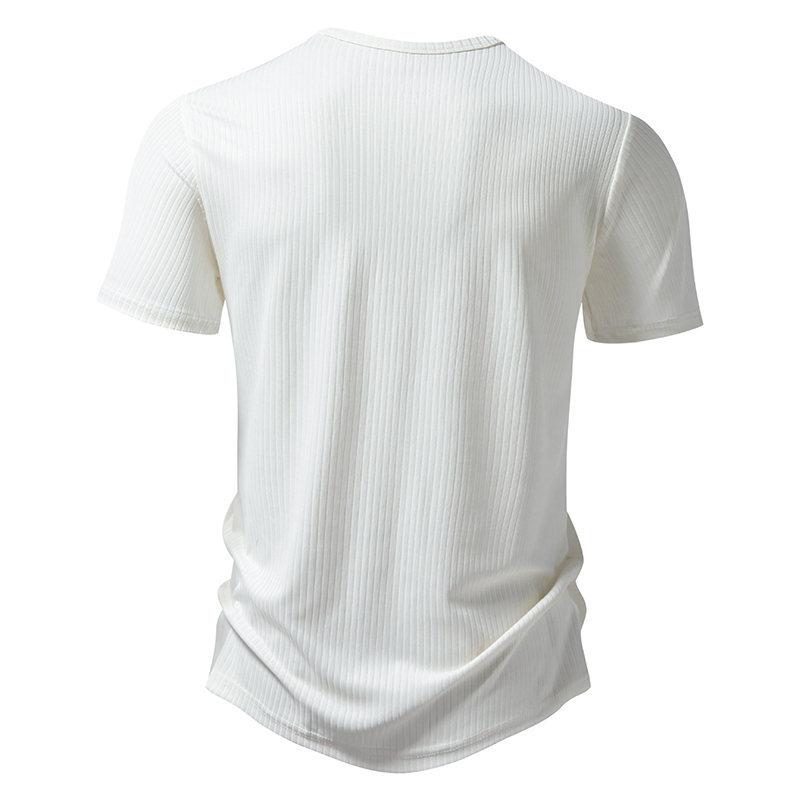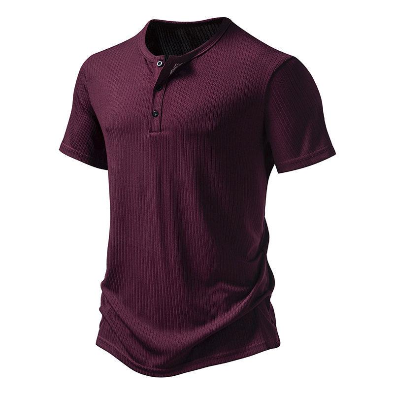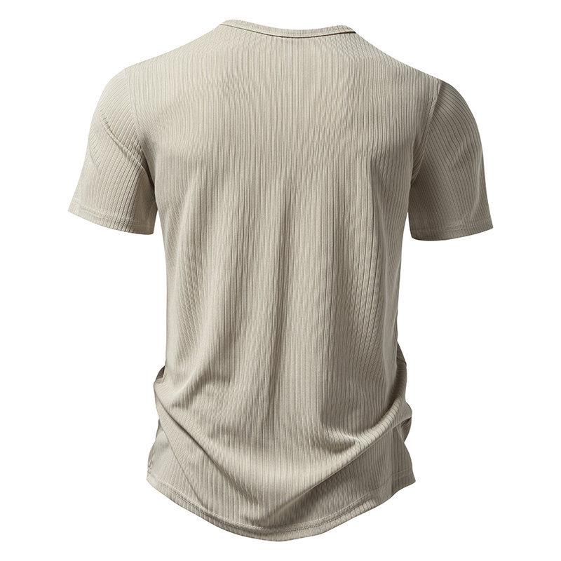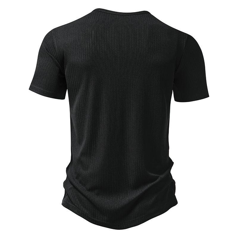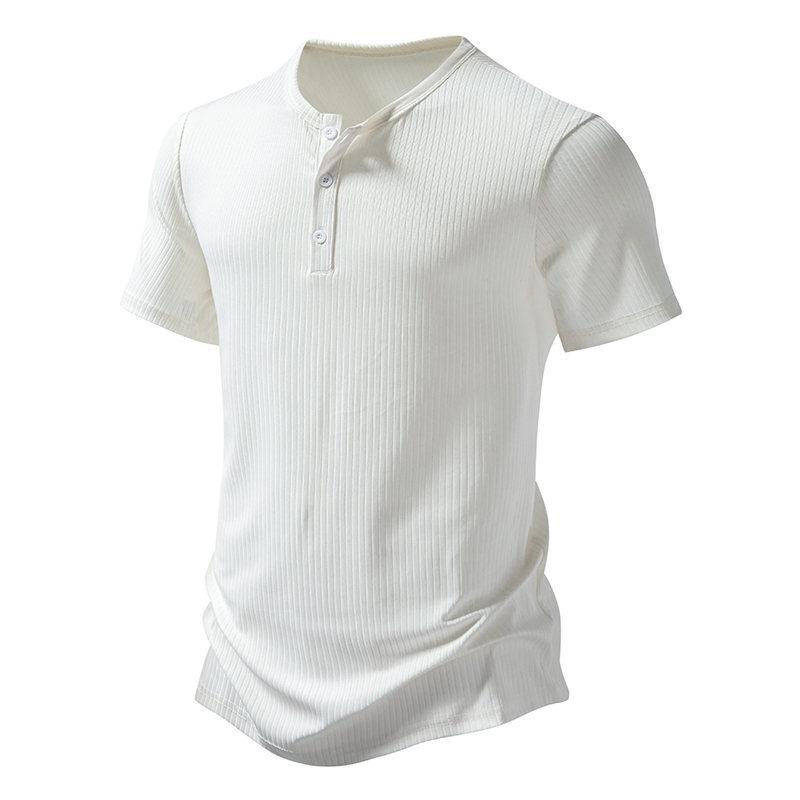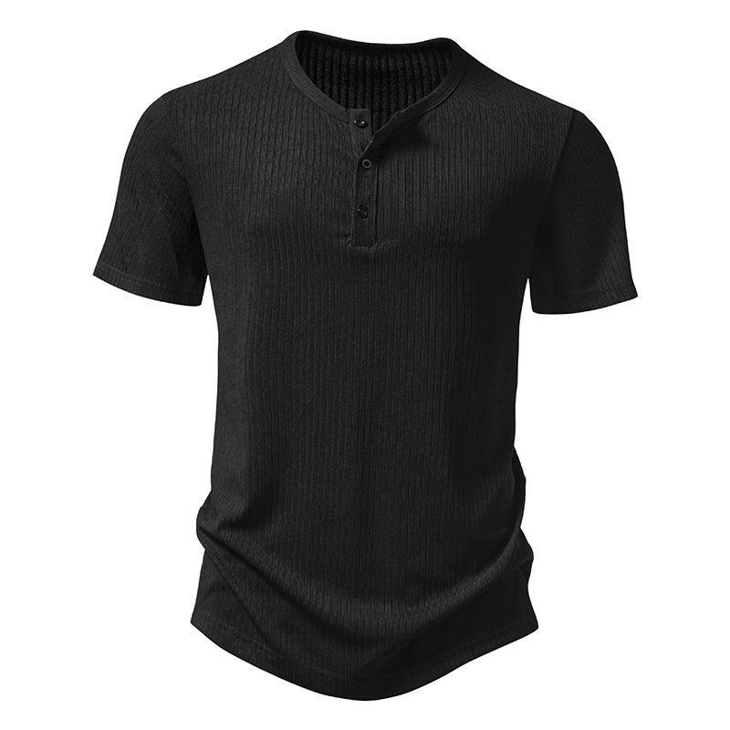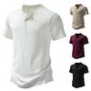 Amazon Nueva Camiseta de Manga Corta Henry Pit para Hombre Talla Europea Moda Casual Color Sólido Simple Holgada para Hombre