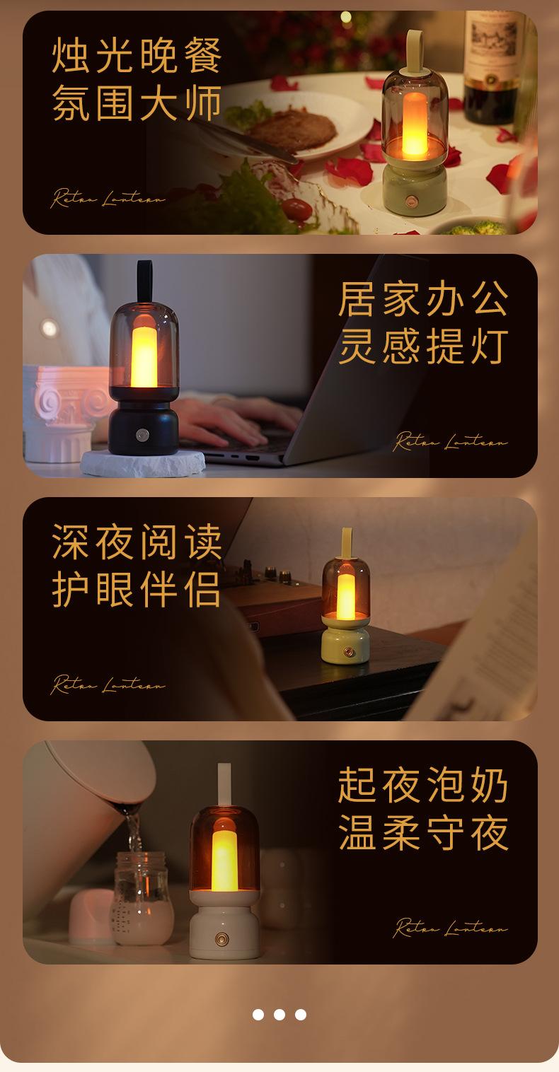 Nueva luz nocturna portátil de llama vintage, luz de ambiente para camping, luz portátil de carga para exteriores, adornos de mesita de noche para dormitorio, regalo