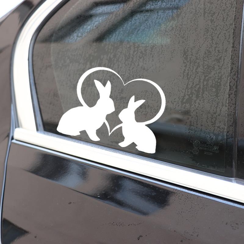 Comercio exterior transfronterizo pegatinas de dibujos animados de animales amor doble conejo pegatinas para coche reflectantes pegatinas decorativas para la carrocería del coche pegatinas para arañazos