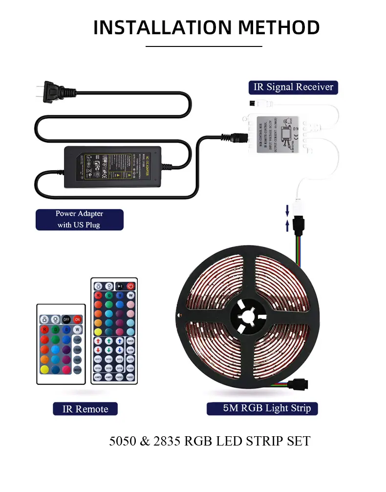 2835/5M300 lamp + controller + power supply (plastic box packaging), 5050/5M90 lamp + controller + power suppl...
