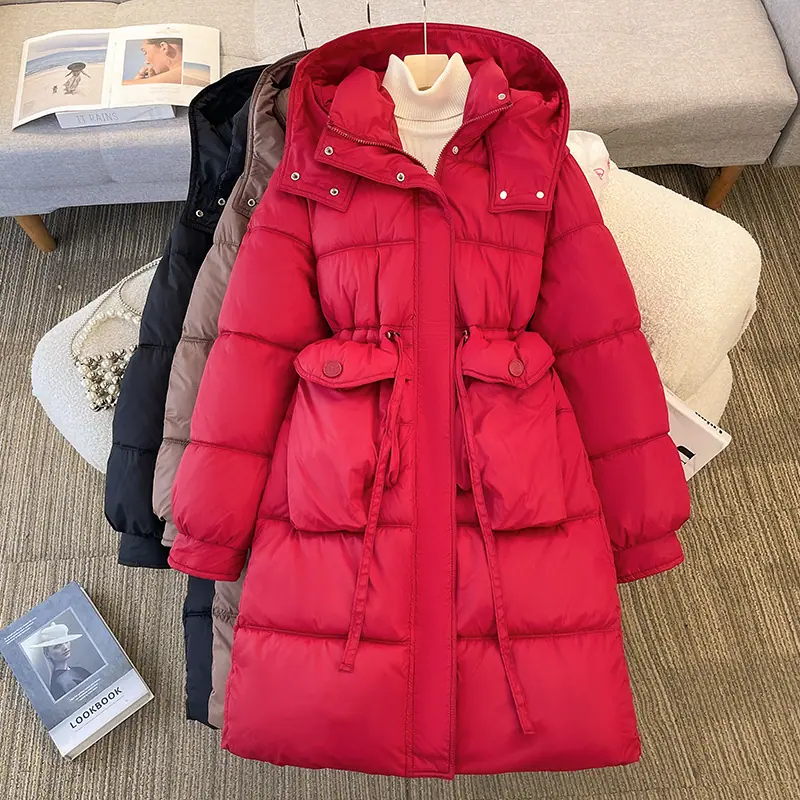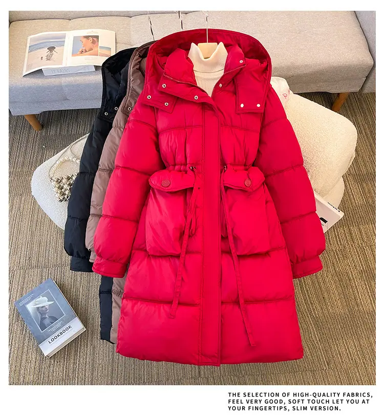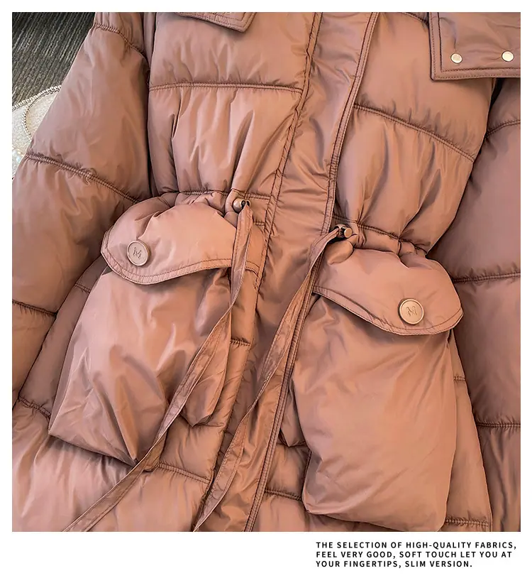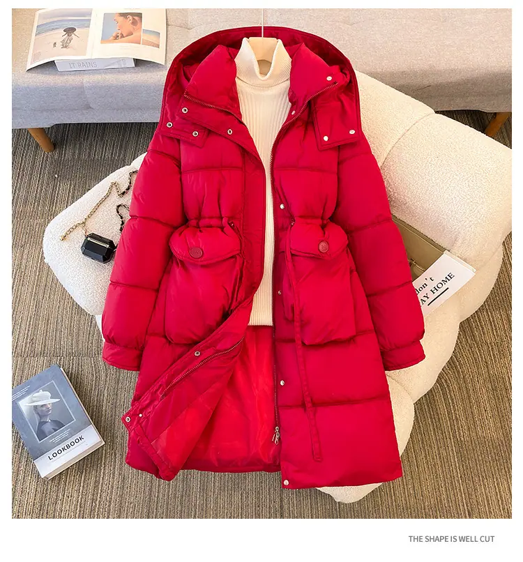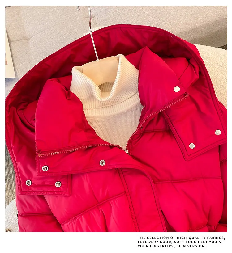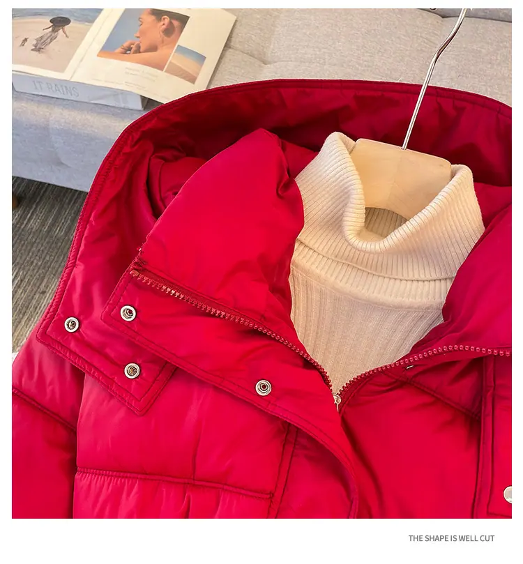 Angola Red【Loose and Versatile Fashion This Year's Popular Hot Style Winter Cotton-Padded Jacket Foreign Style Hepburn Style First-Line European Station Petite Women's Winter Clothing Double-Layer Cotton-Padded Jacket Foreign Trade Brand European Goods Trendy Brand Warm Women's