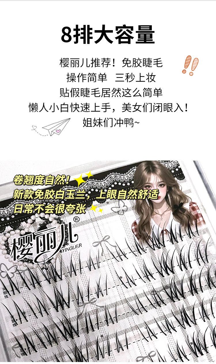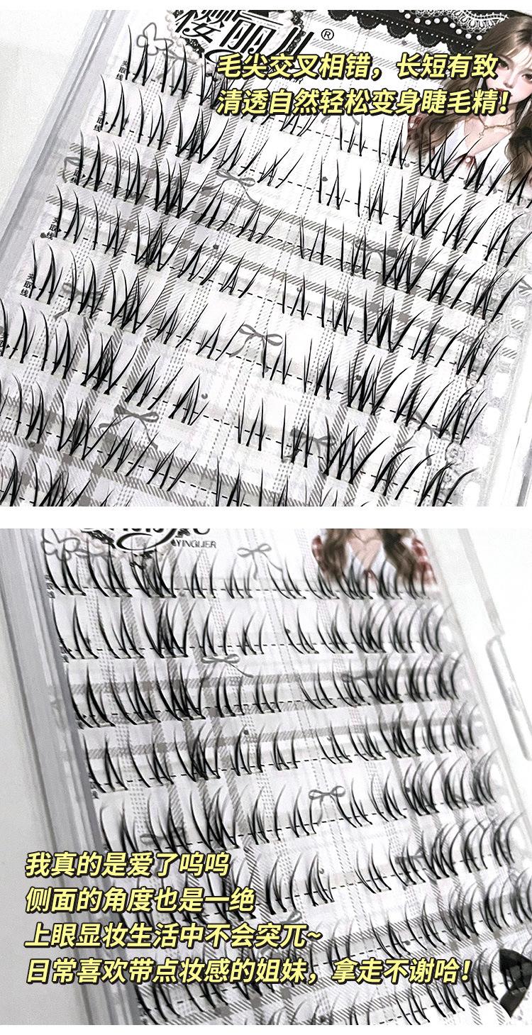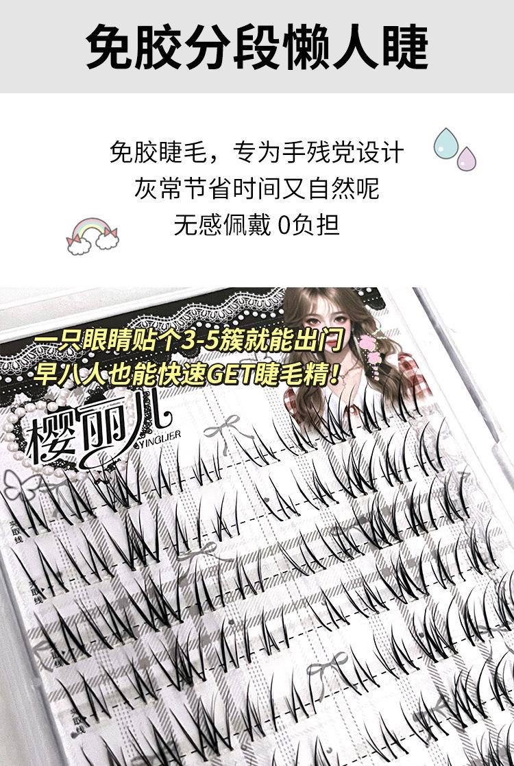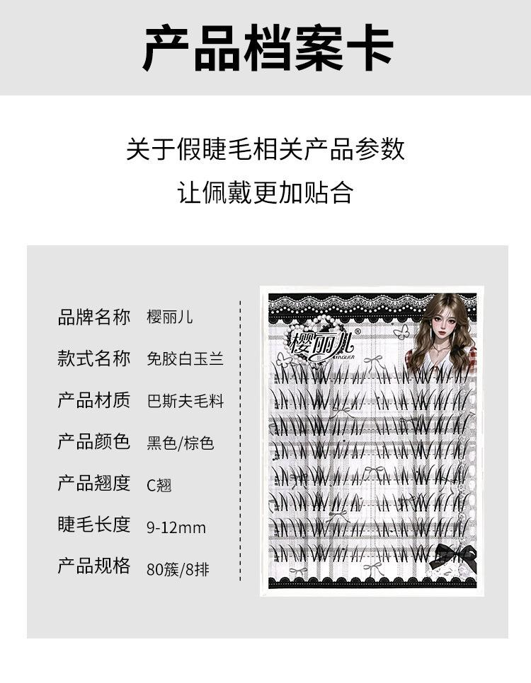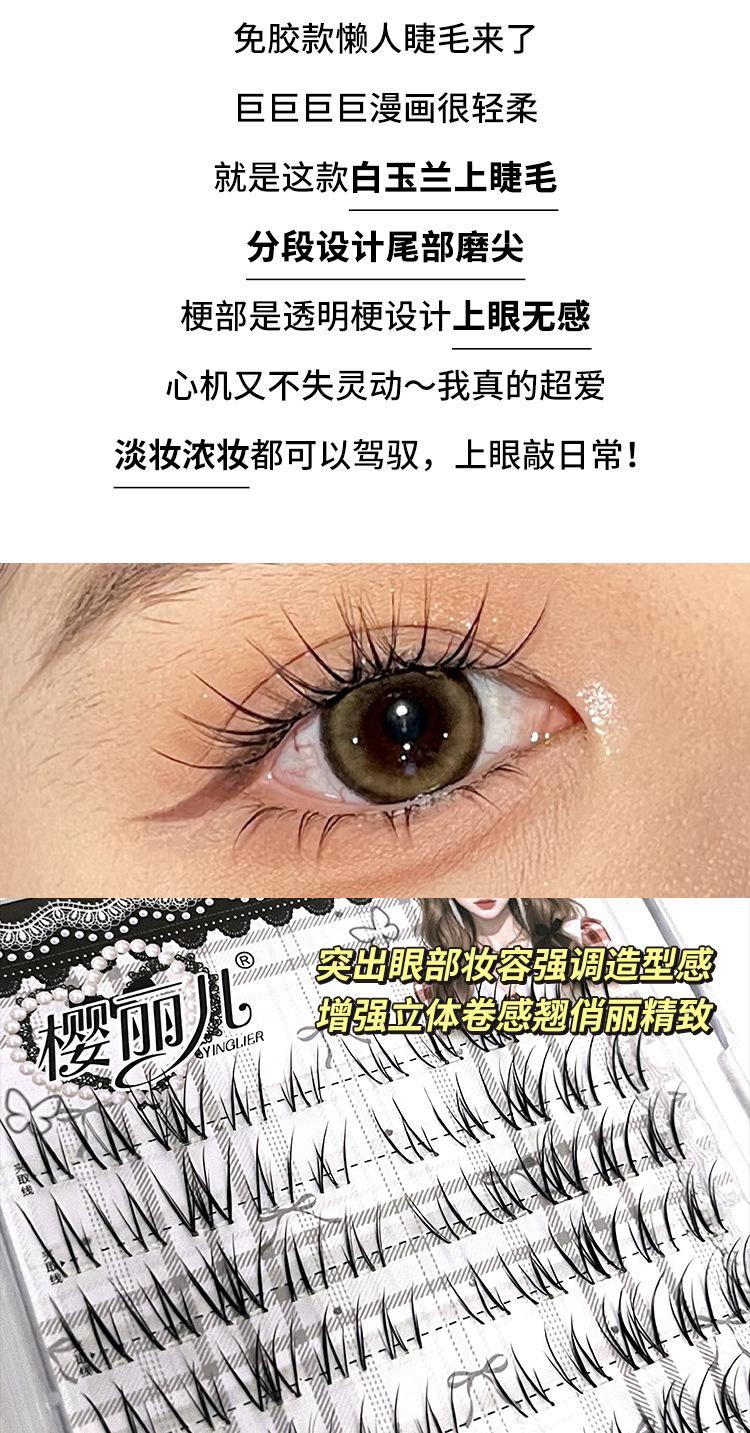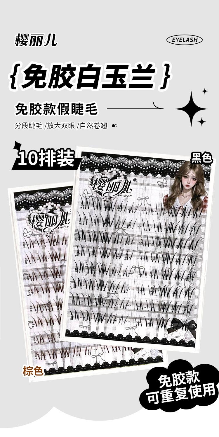 Ying Lier Pestañas Postizas Marrones Magnolia Sin Pegamento Simulación Natural Cool Inclinadas Voladoras Ligeras Segmentadas Autoadhesivas