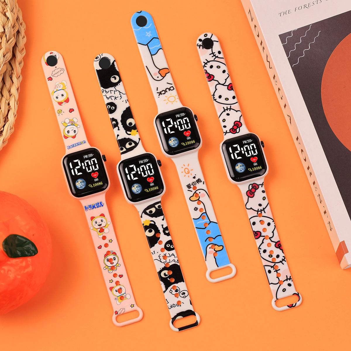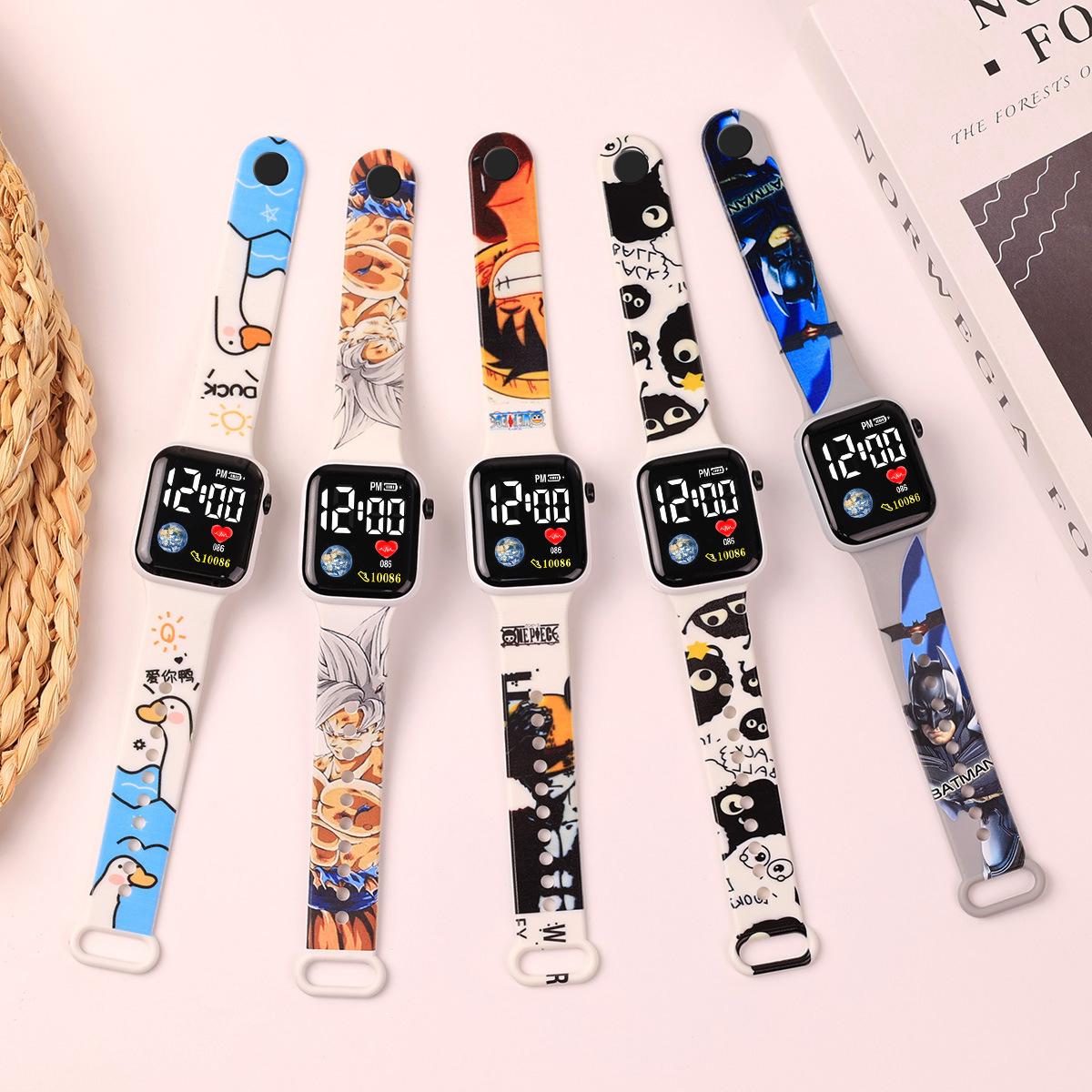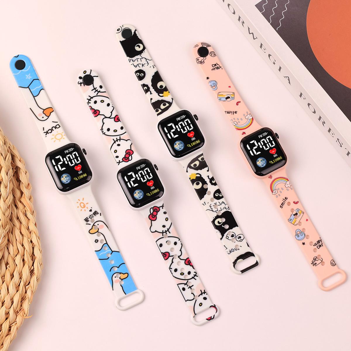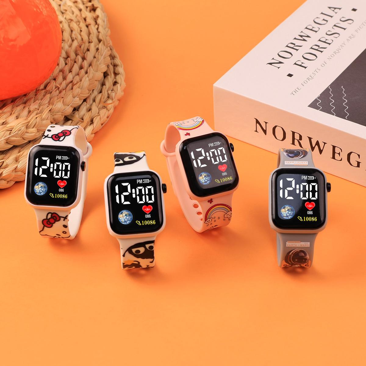 Reloj LED cuadrado de moda y personalidad con botón de impresión de dibujos animados para estudiantes de primaria