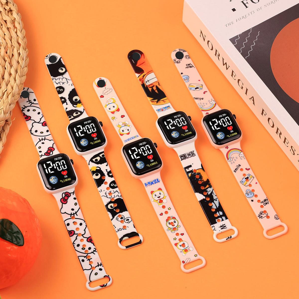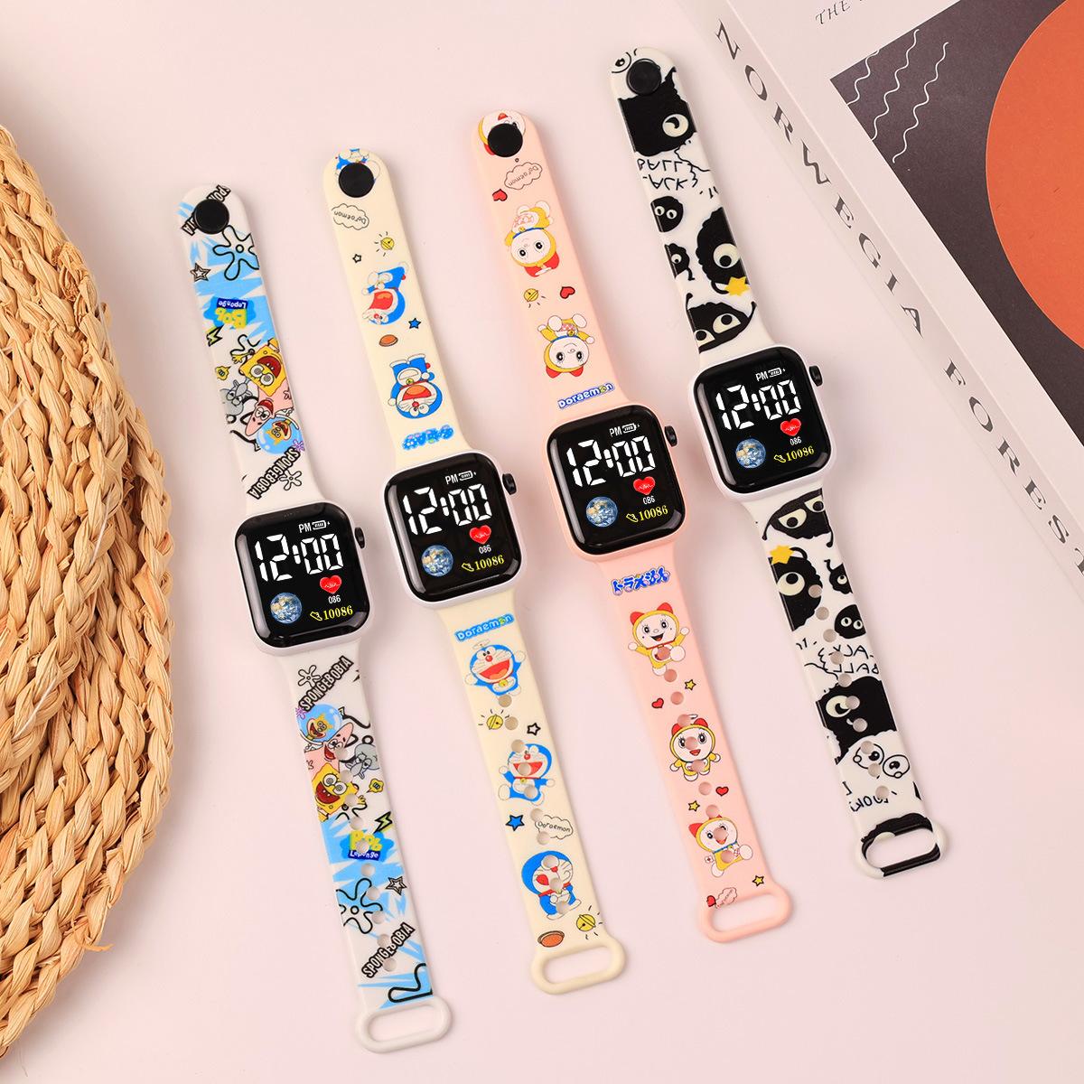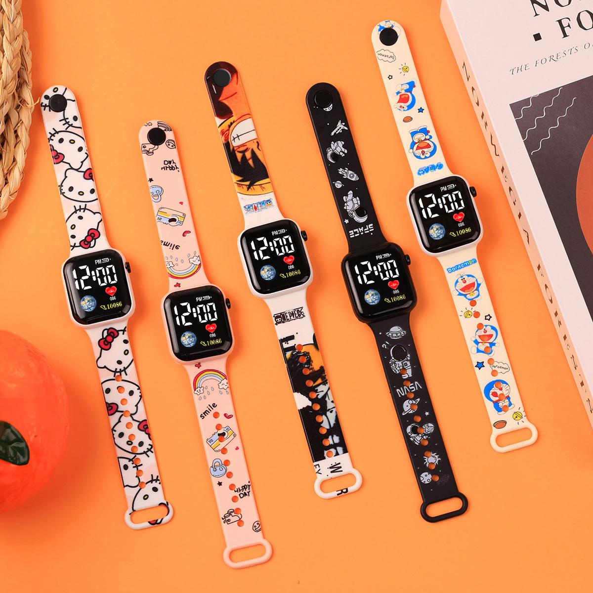Reloj LED cuadrado de moda y personalidad con botón de impresión de dibujos animados para estudiantes de primaria