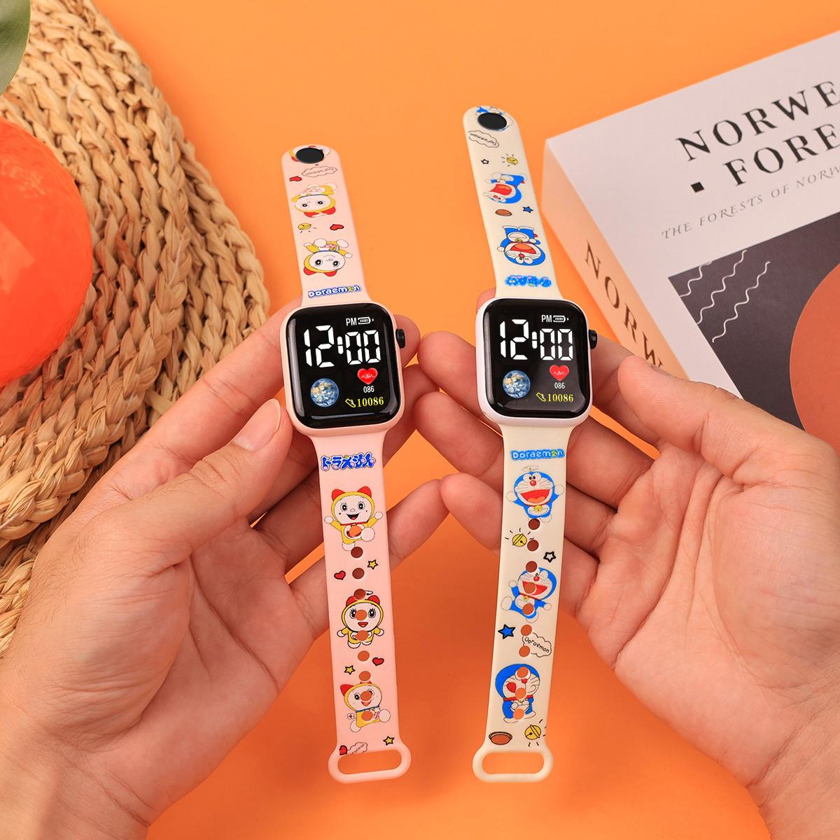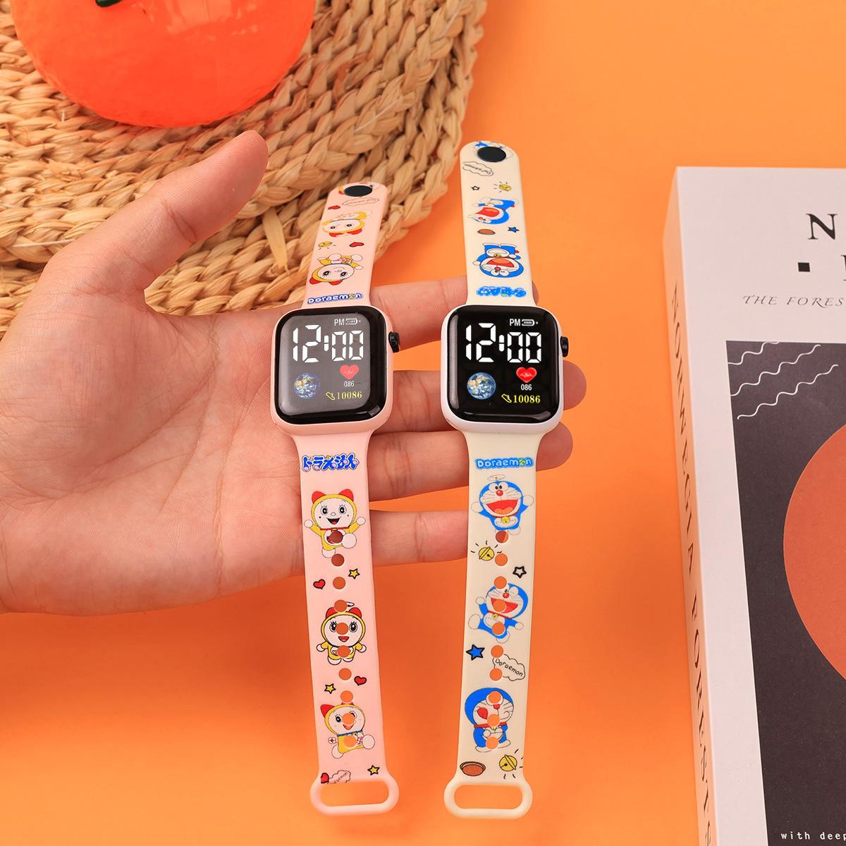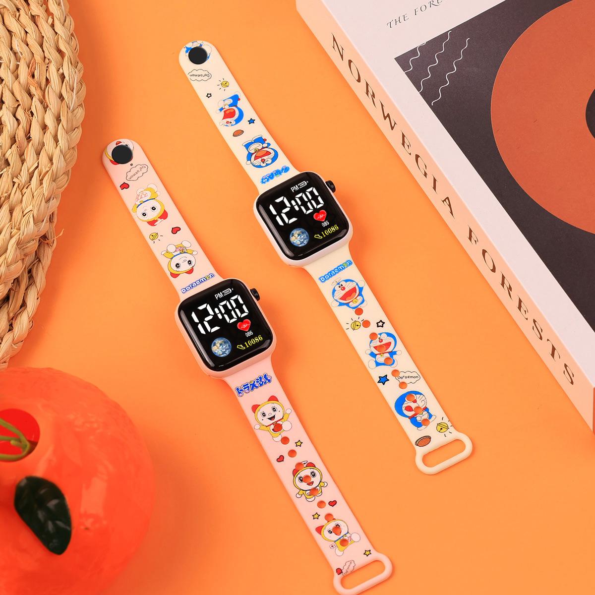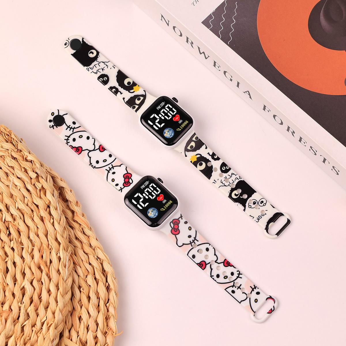 Reloj LED cuadrado de moda y personalidad con botón de impresión de dibujos animados para estudiantes de primaria