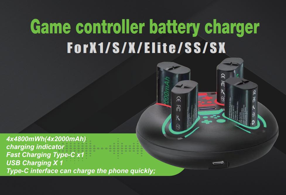 El cargador de baterías para controles de juego viene con cuatro baterías recargables de 2000 mAh, un cable de carga y una base de carga. Proporciona abundante energía para los controles de Xbox One, Xbox One S, Xbox One X, Xbox Series S, Xbox Series X y Xbox One Elite, para que ya no tengas que preocuparte por interrupciones en medio de tu juego.