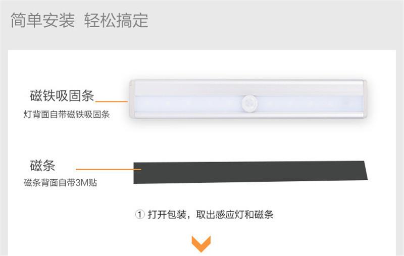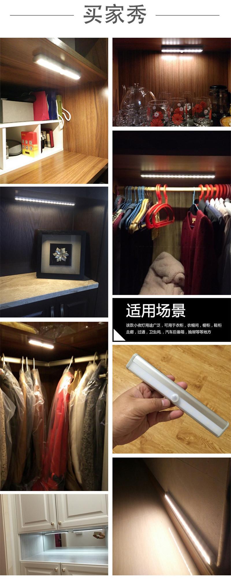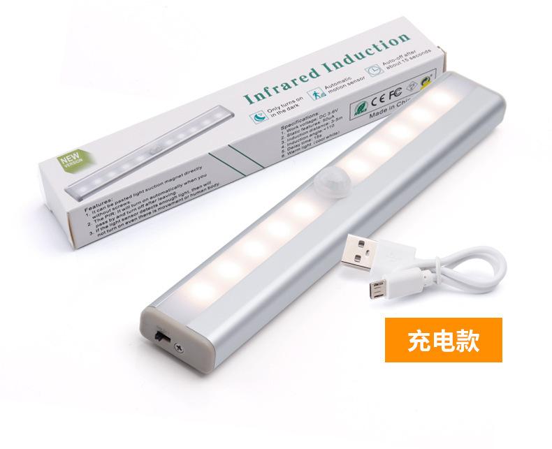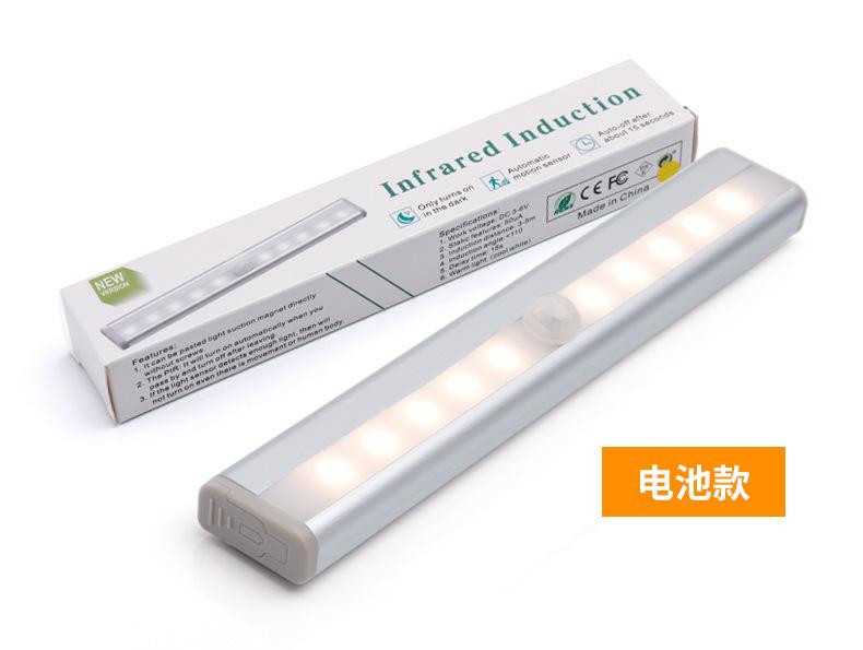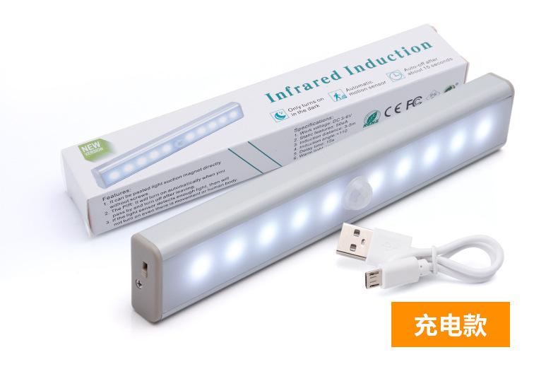 Tira inteligente recargable led lámpara de inducción del cuerpo humano lámpara de pared para armario lámpara de batería para armario luz nocturna usb para pasillo