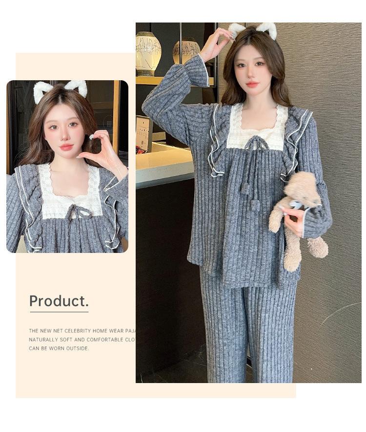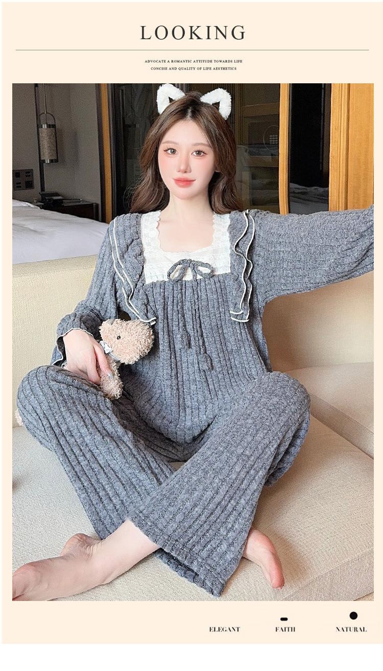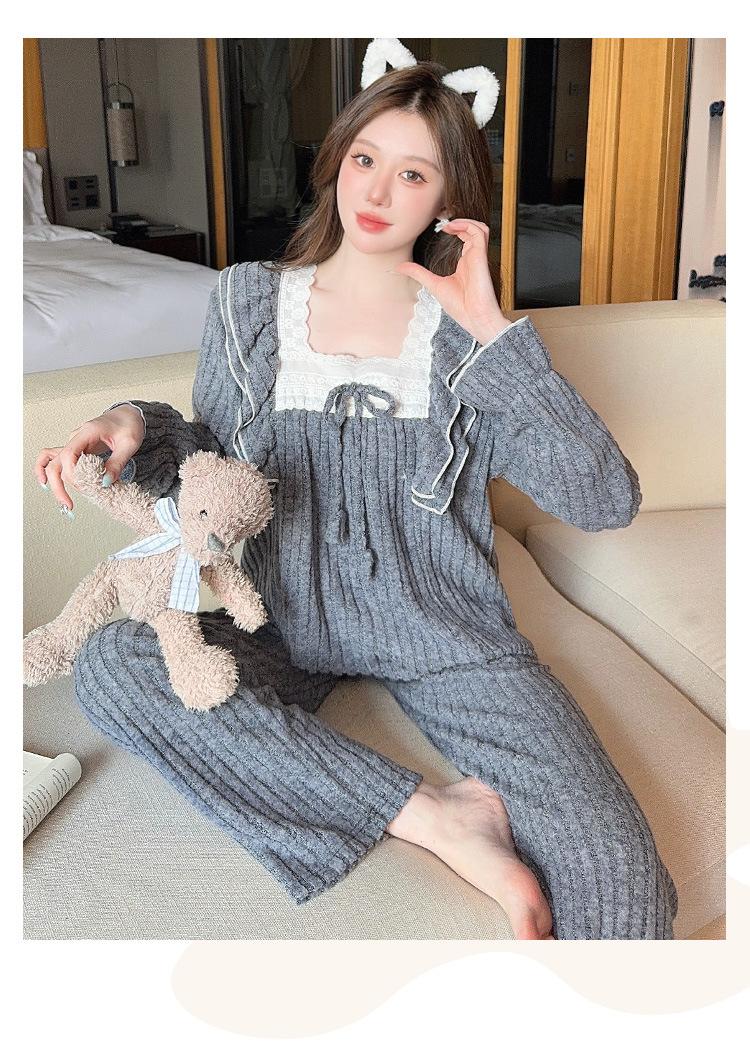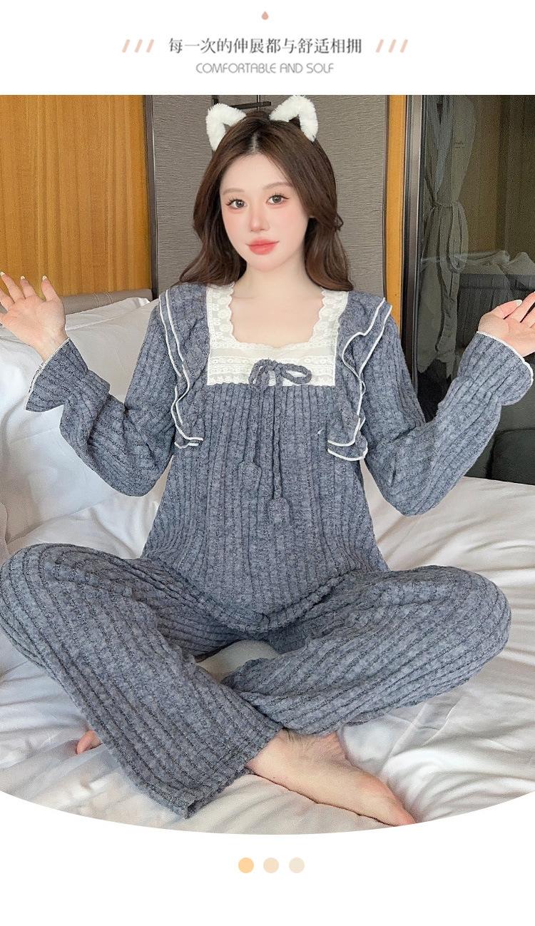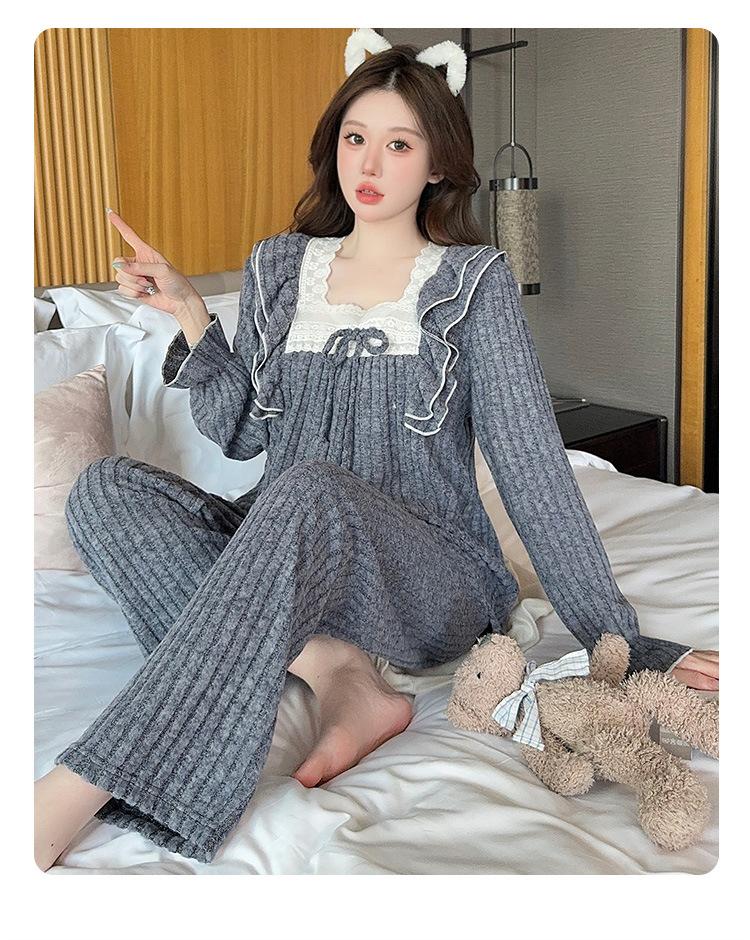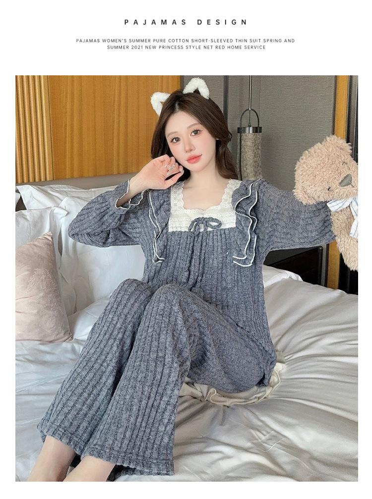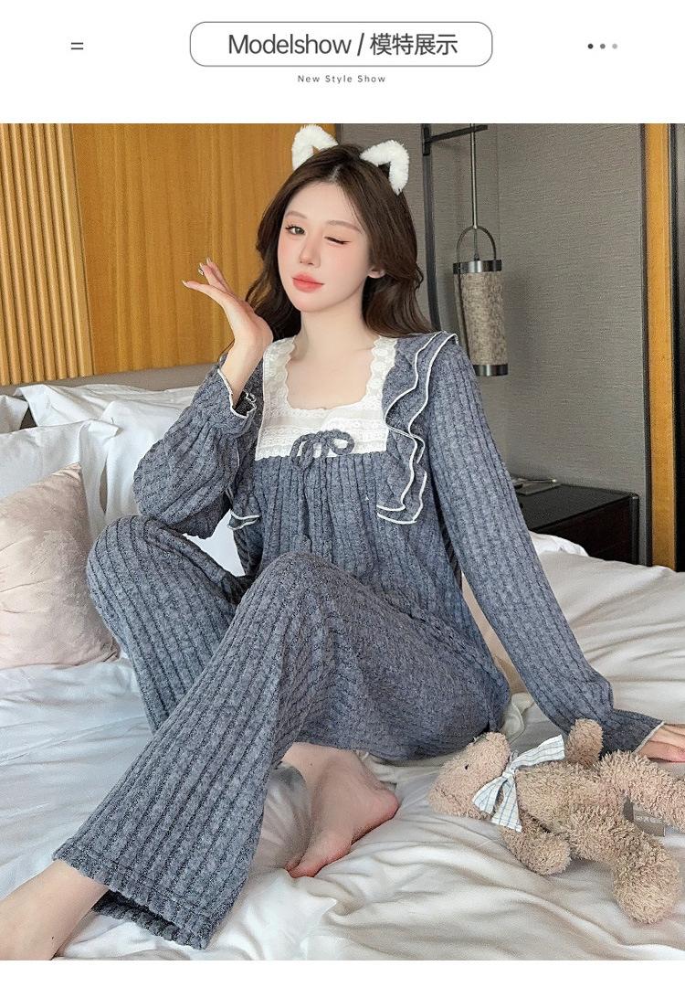Conjunto de Ropa de Casa de Franela y Cachemira de Manga Larga para Mujer, Otoño/Invierno, Dulce, Nuevo 2025, Lindo Estilo Princesa