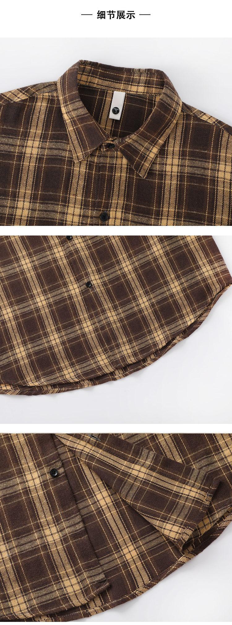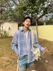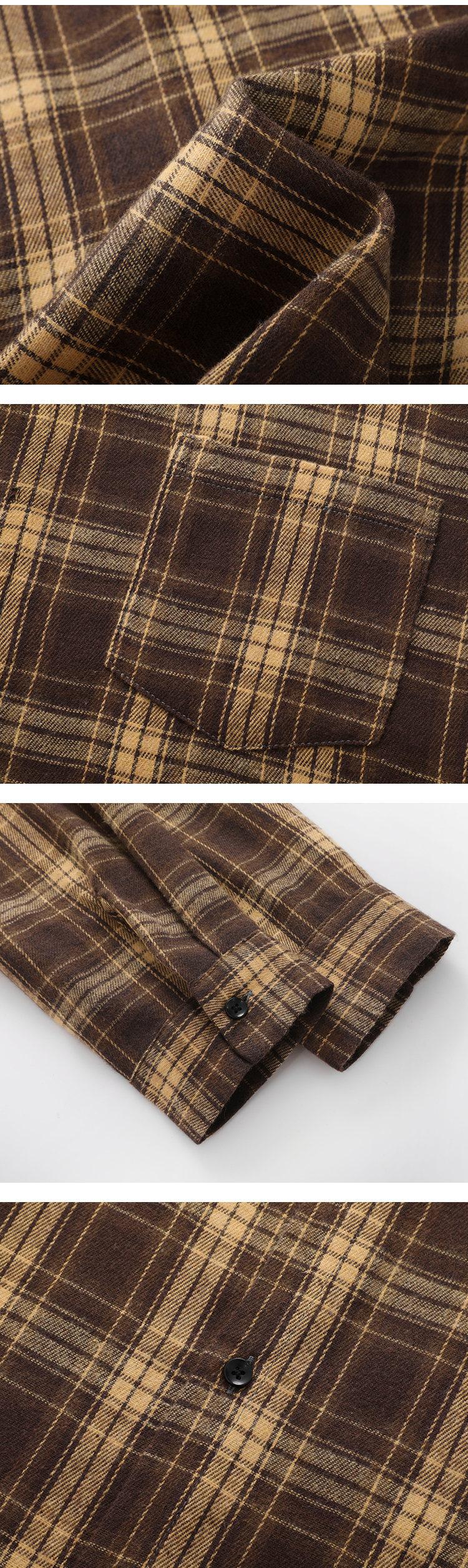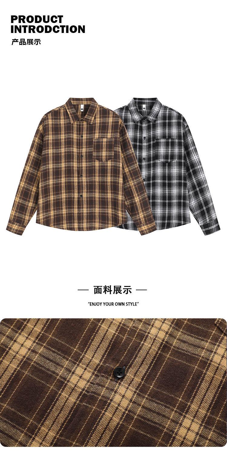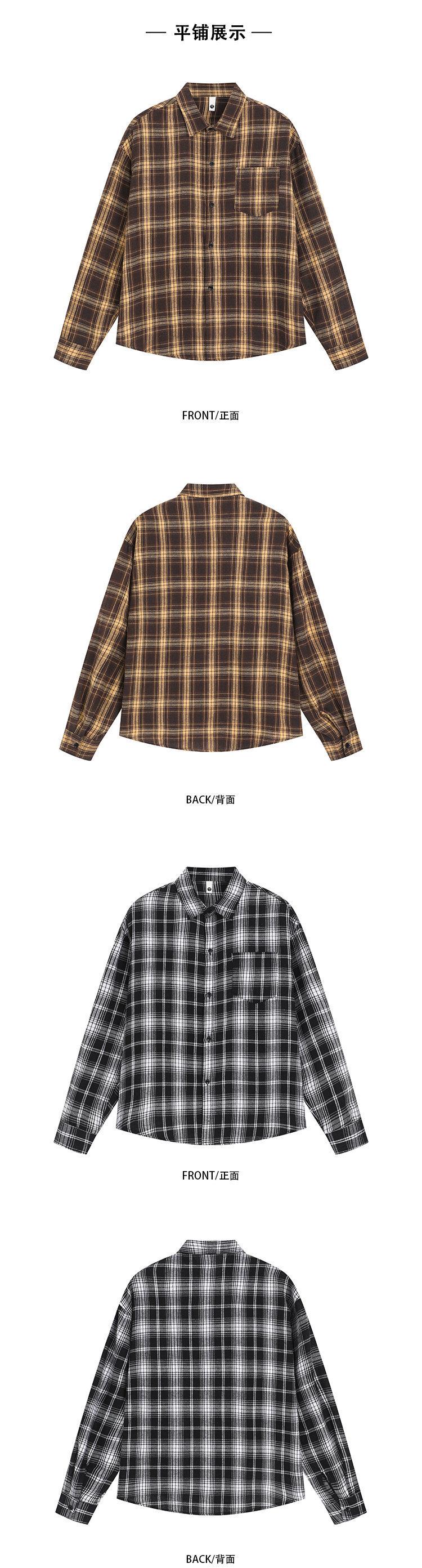 Tendencia de Moda Otoño 2025 Nueva Camisa de Cuadros para Hombre Retro Americano Talla Grande Suelta Manga Larga En Stock