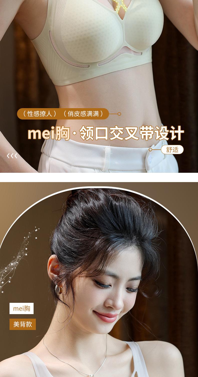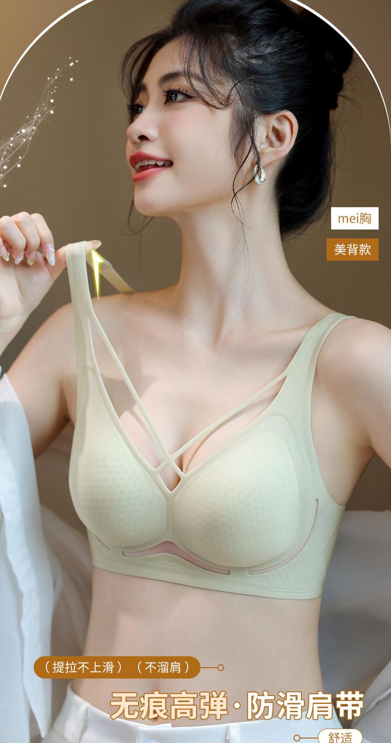 Ropa Interior de Gato para Mujer Verano Fina Recolección de Pecho Pequeño Espalda Hermosa Sin Costuras Reducción de Pecho Anti-Caída Seda de Hielo Sujetador Hollow