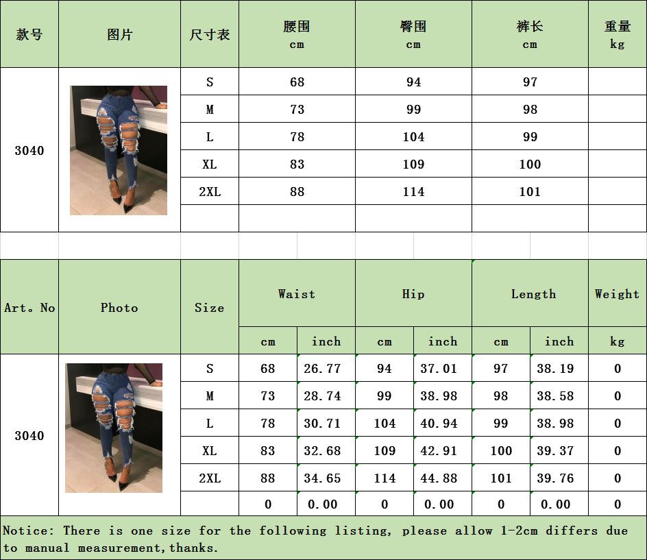 Aliexpress Ebay Amazon Jeans Rotos para Mujer Pantalones Skinny Comercio Exterior Jeans para Mujer Ropa de Mujer