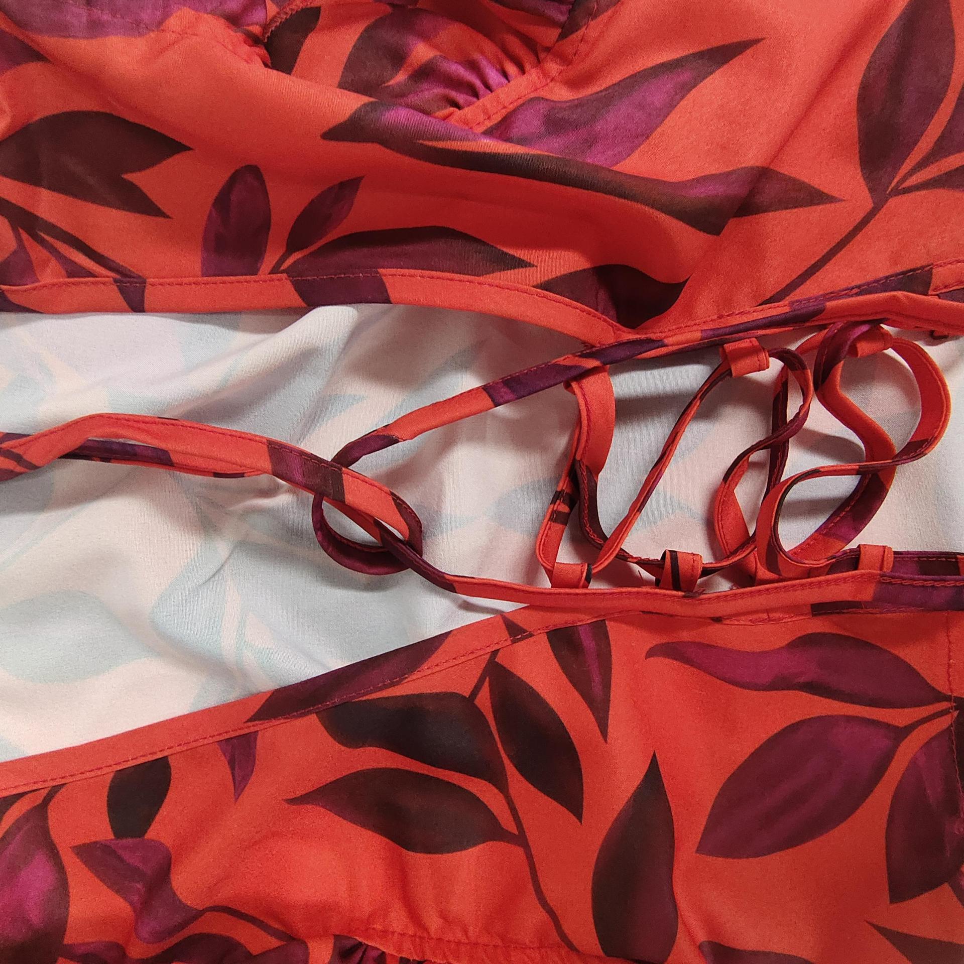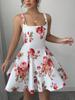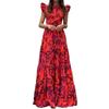 Vestido de Noche de Alfombra Roja Transfronterizo Nueva Moda Europea y Americana Estampado Mangas Vuelo Cintura Alta Vestido Europeo y Americano para Mujer