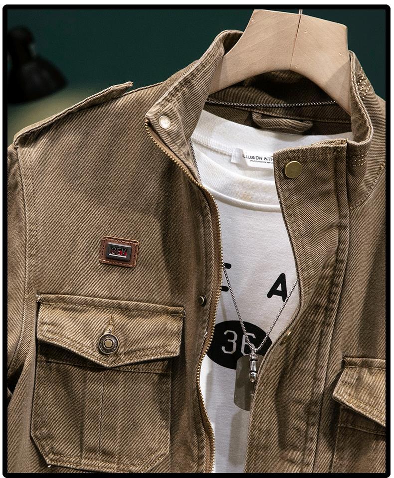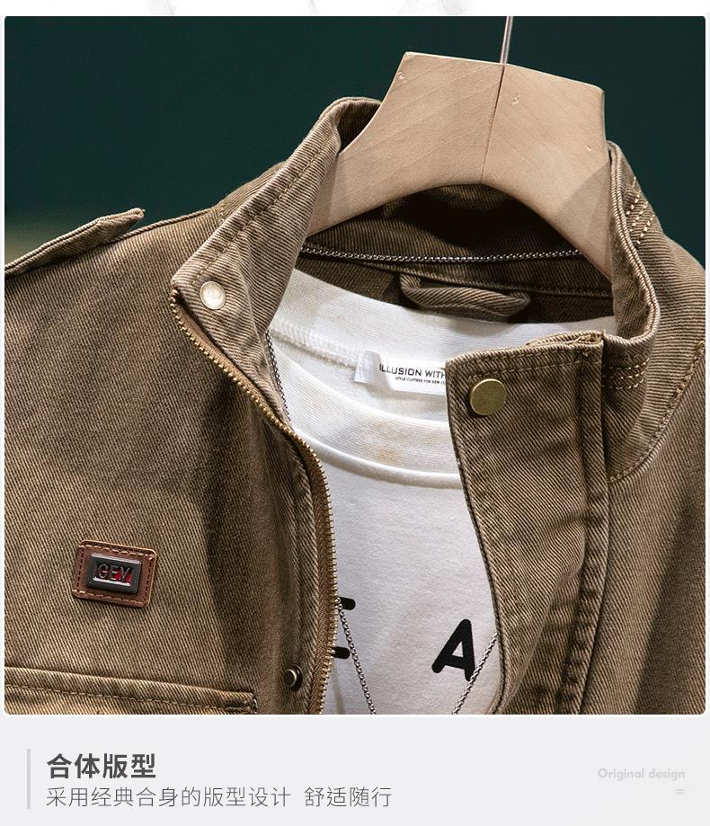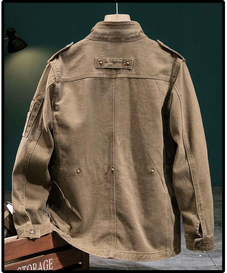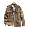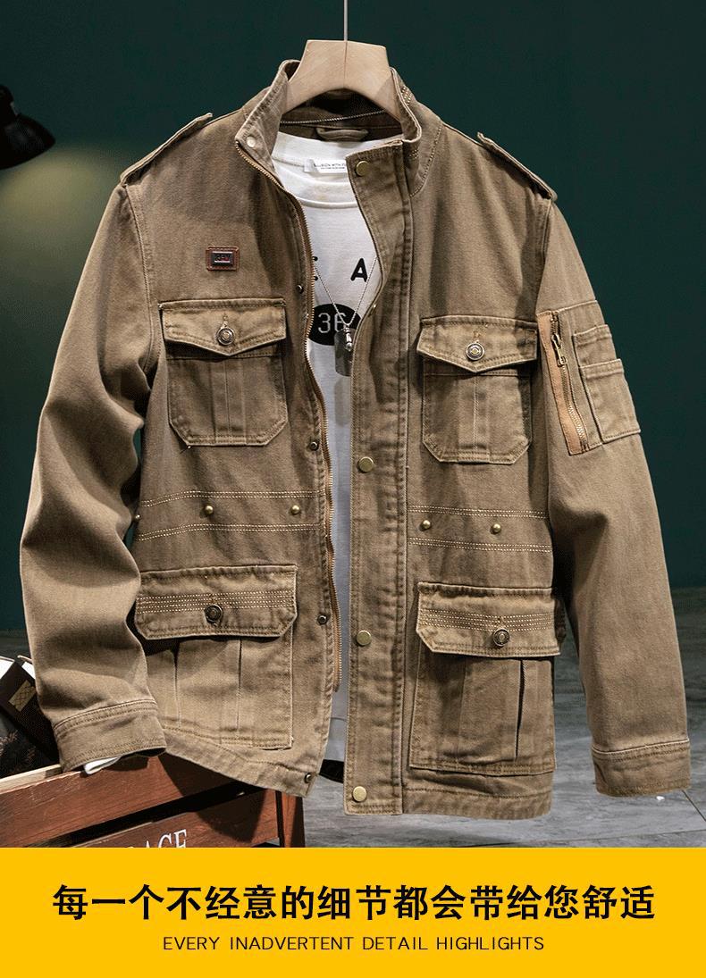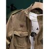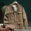 Chaqueta Americana de Ropa de Trabajo para Hombre Primavera Otoño Casual Multibolsillos Peso Pesado Lavado Vintage Cuello Alto Chaqueta de Caza Ropa de Calle