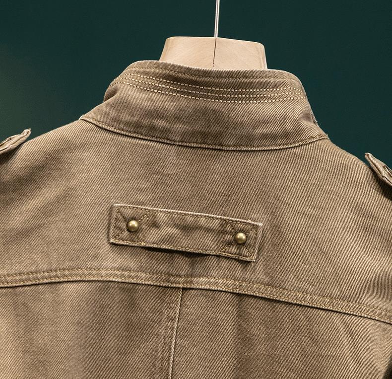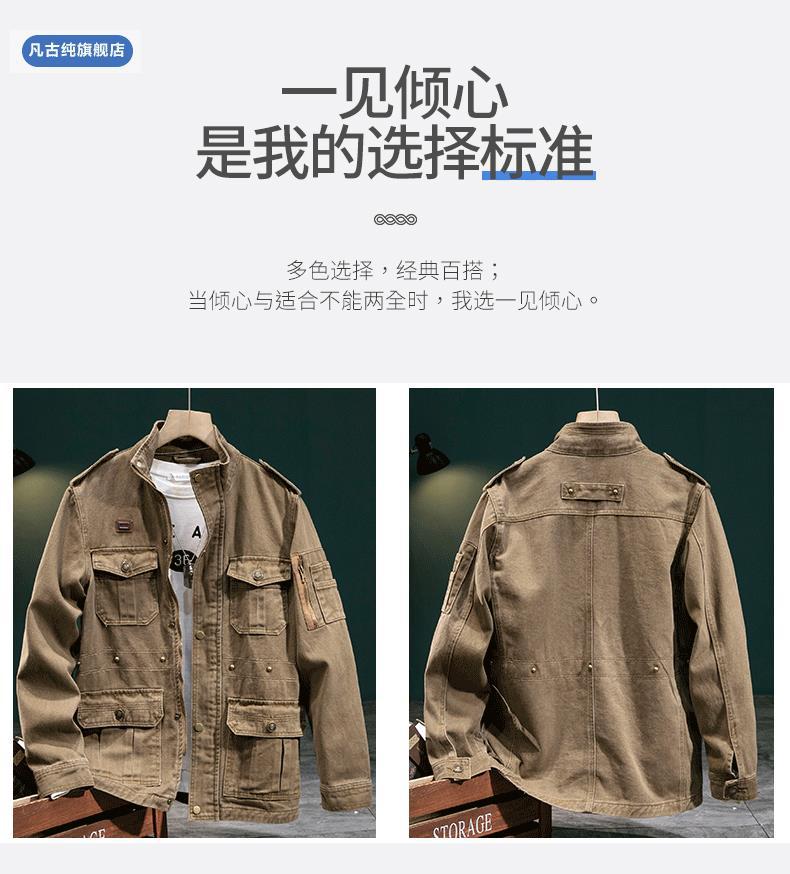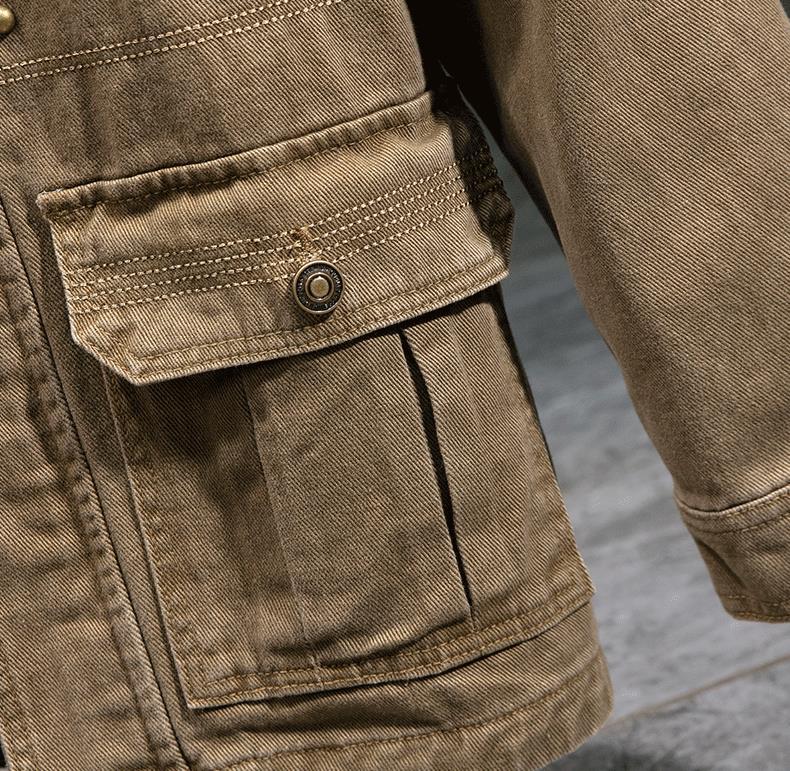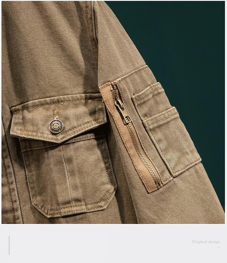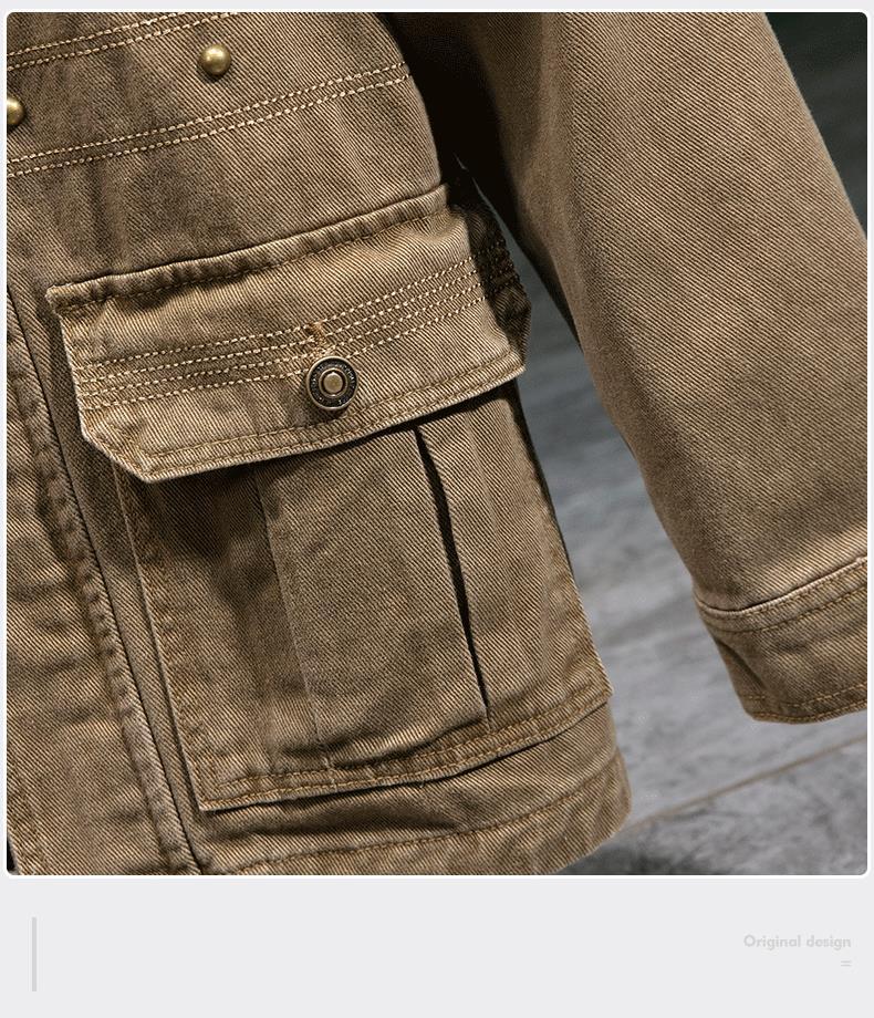 Chaqueta Americana de Ropa de Trabajo para Hombre Primavera Otoño Casual Multibolsillos Peso Pesado Lavado Vintage Cuello Alto Chaqueta de Caza Ropa de Calle
