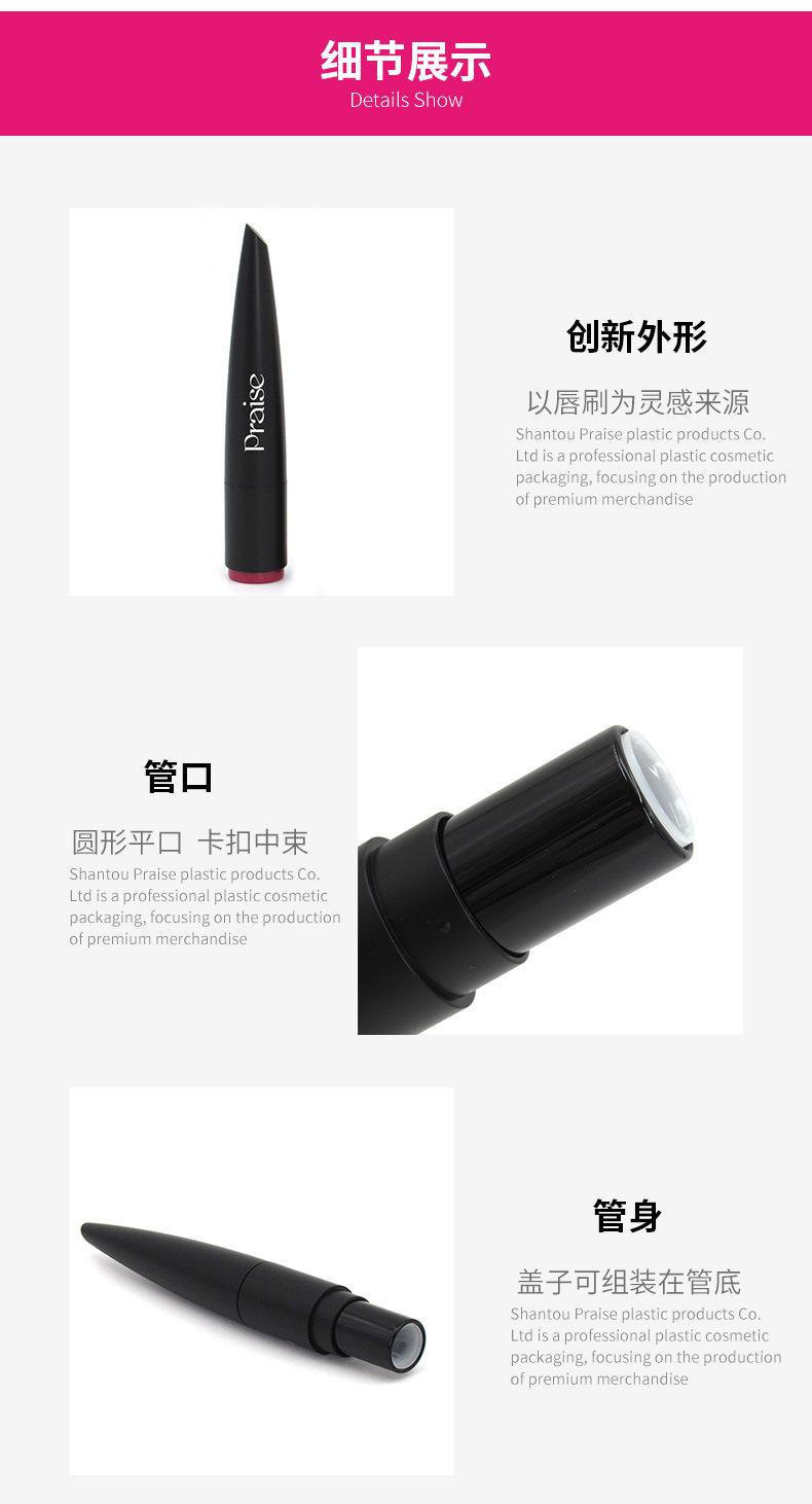 Creativo nuevo plástico pequeño tubo negro tubo de lápiz labial redondo negro mate cosméticos lápiz labial tubo vacío fabricante de embalaje