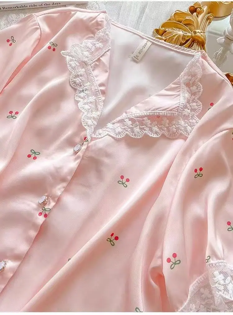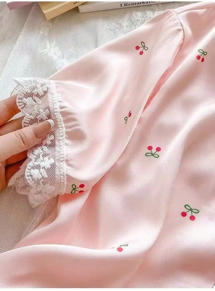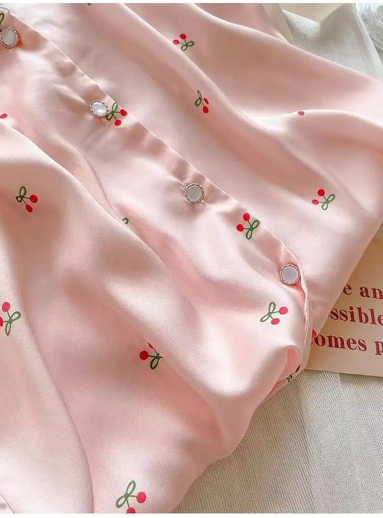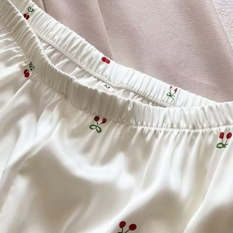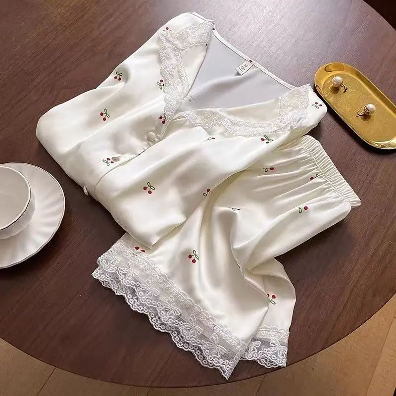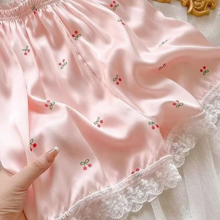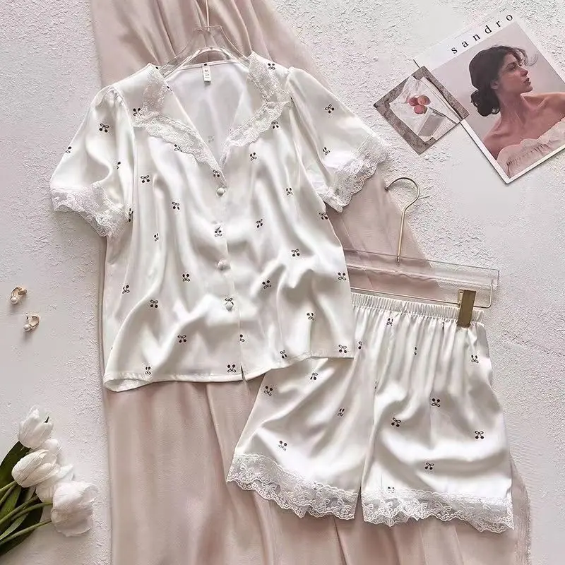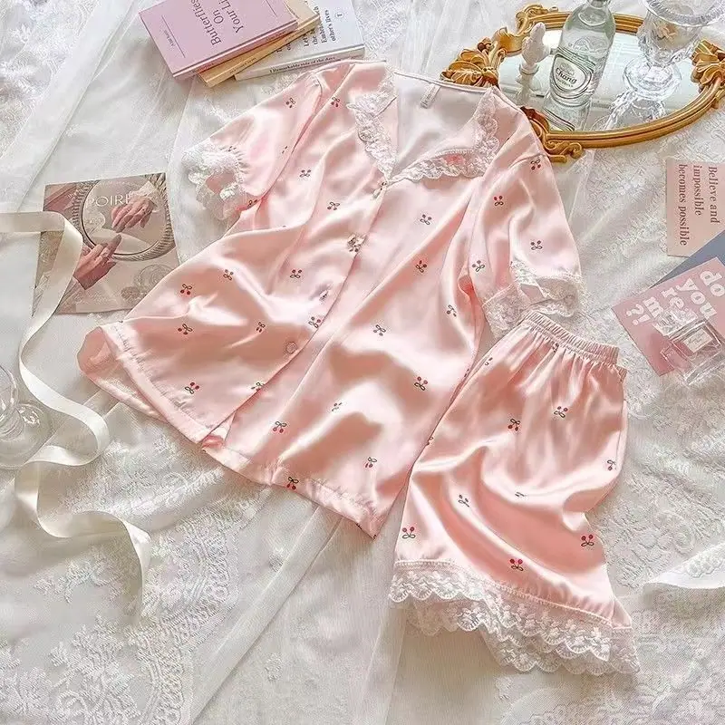 Pijamas de Seda de Hielo para Mujer Verano Delgadas de Manga Corta Shorts Traje de Dos Piezas Seda de Hielo de Alta Gama Ropa Dulce para el Hogar Venta al por Mayor