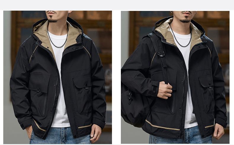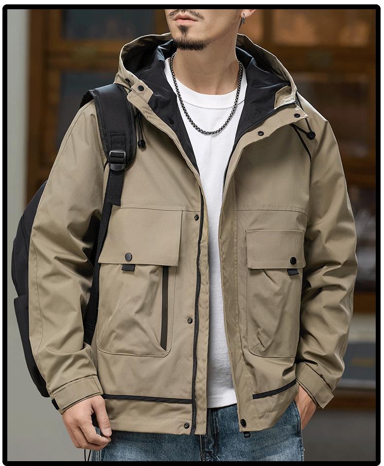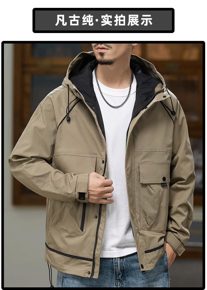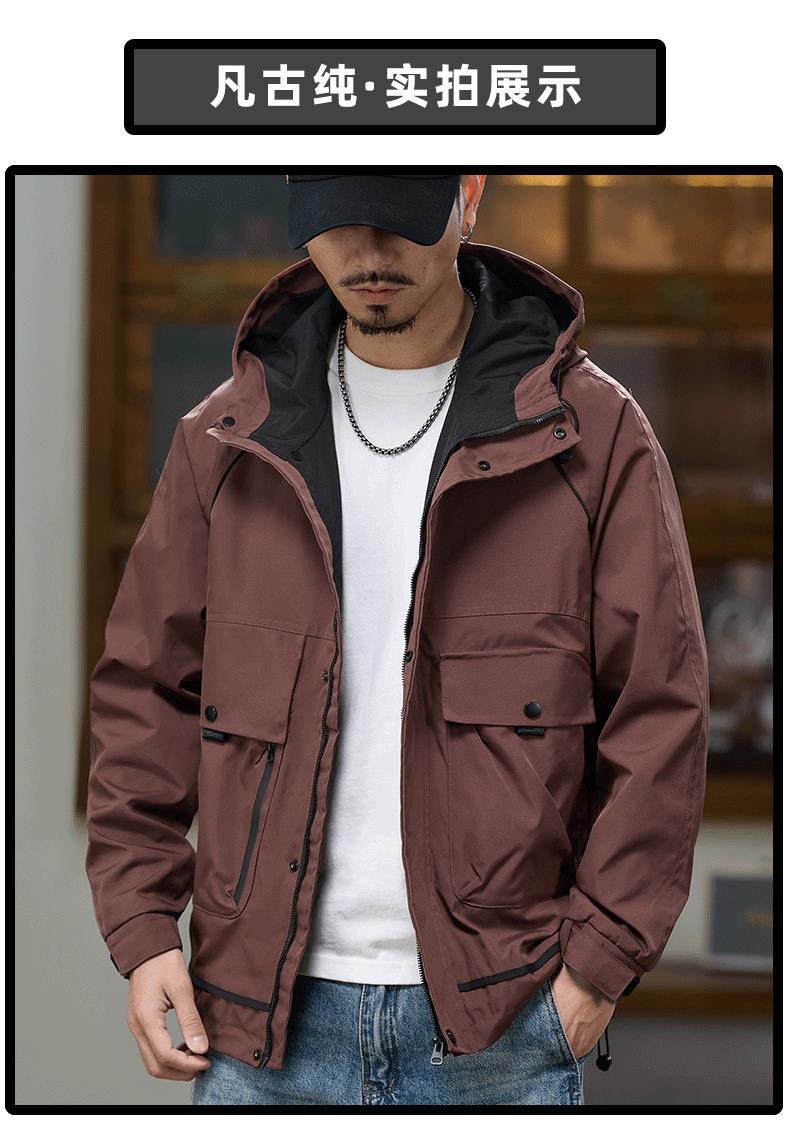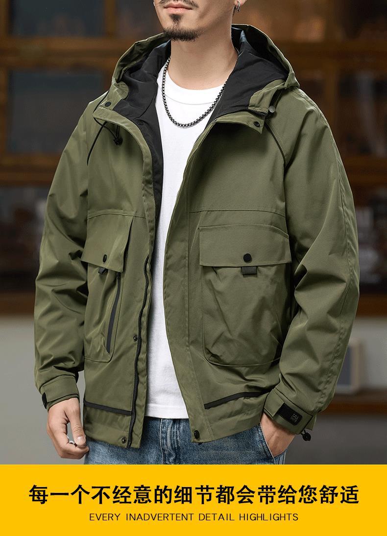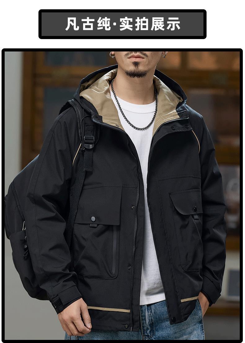 Chaqueta de Ropa de Trabajo Americana para Hombre Primavera y Otoño Casual Holgada para Exterior Tres Pruebas Sistema de Montaña Retro con Capucha Chaqueta Deportiva Marca de Tendencia