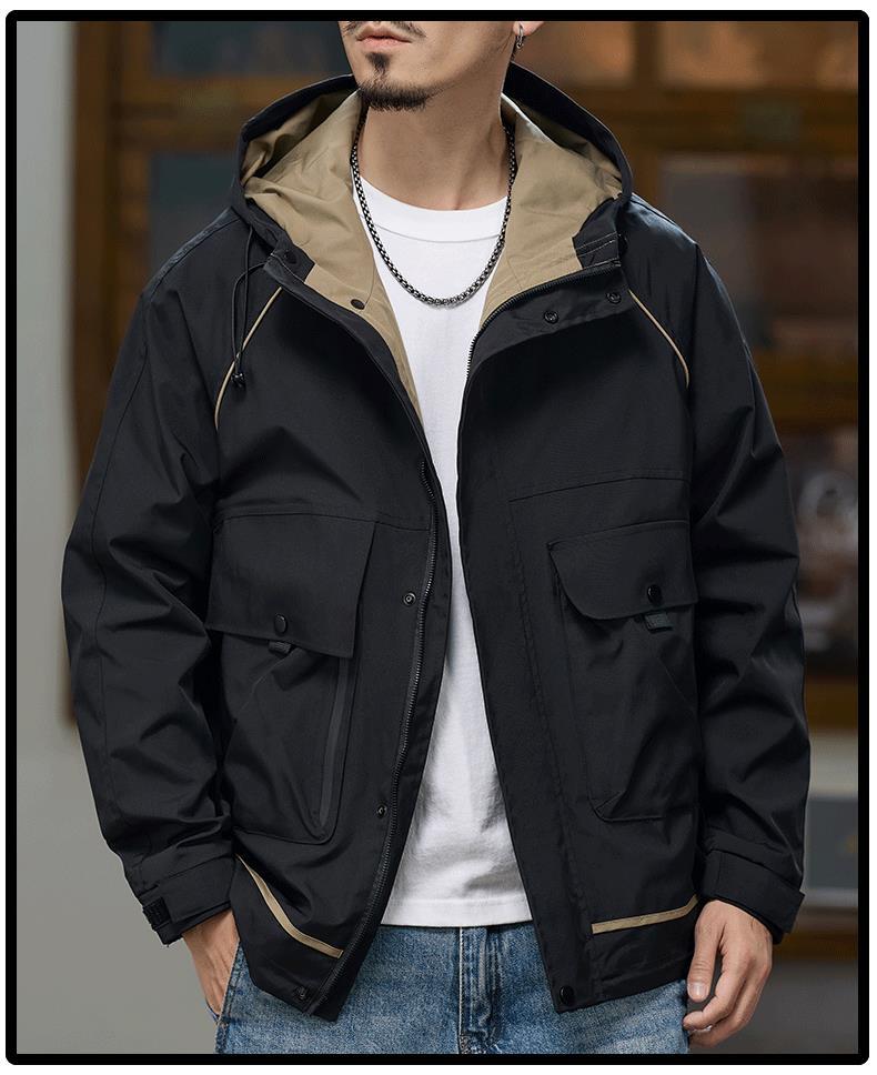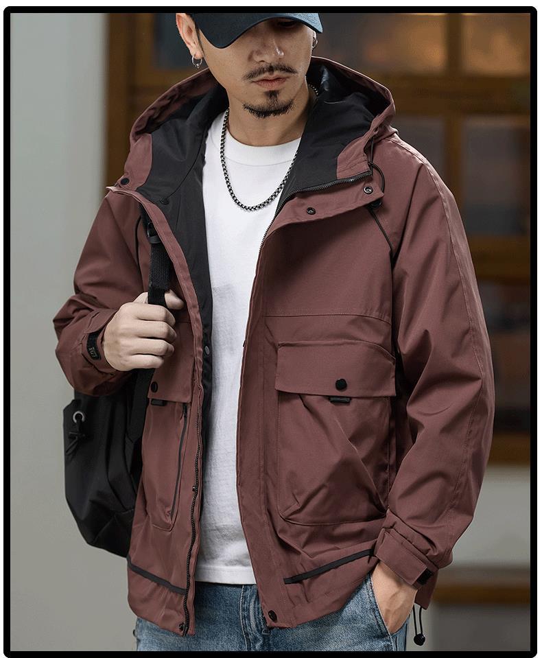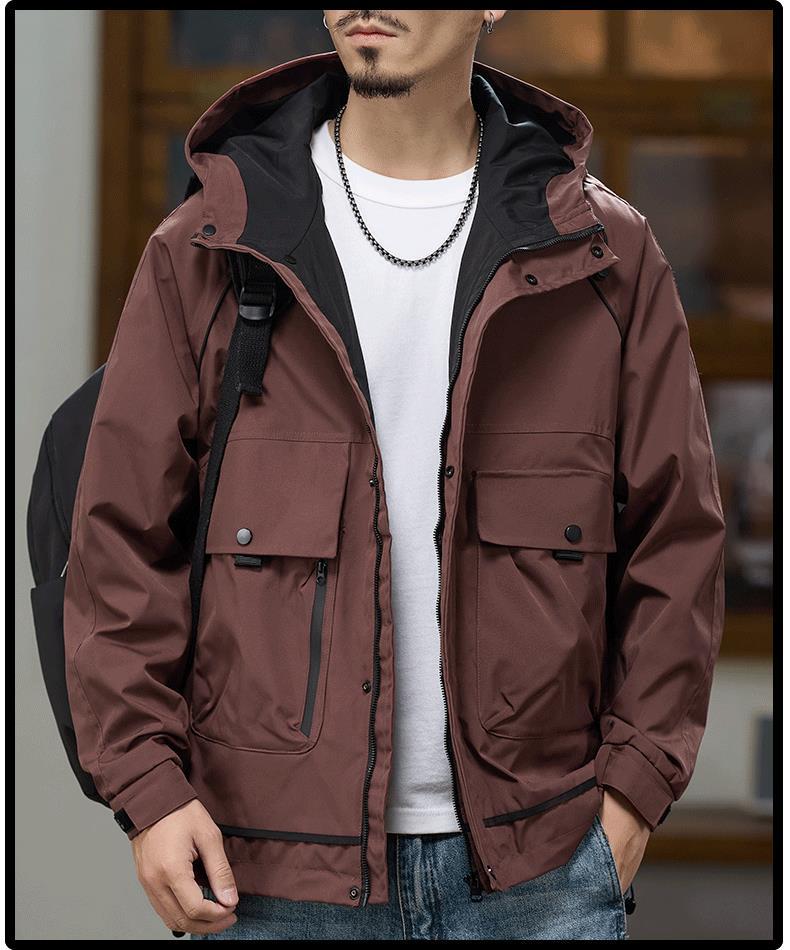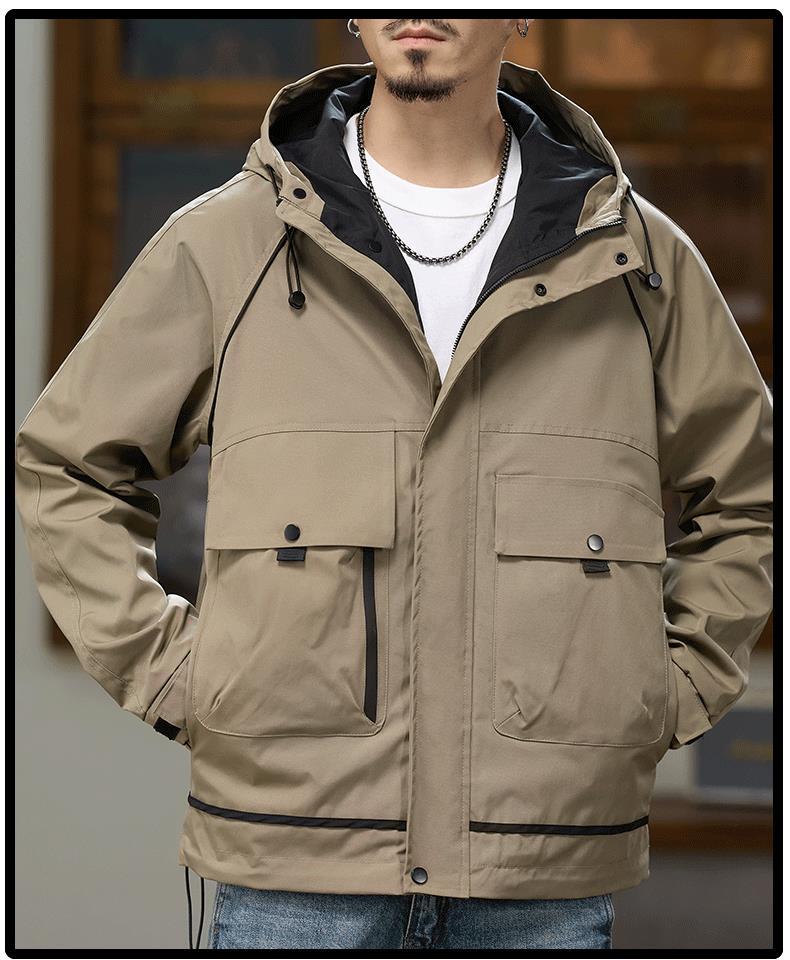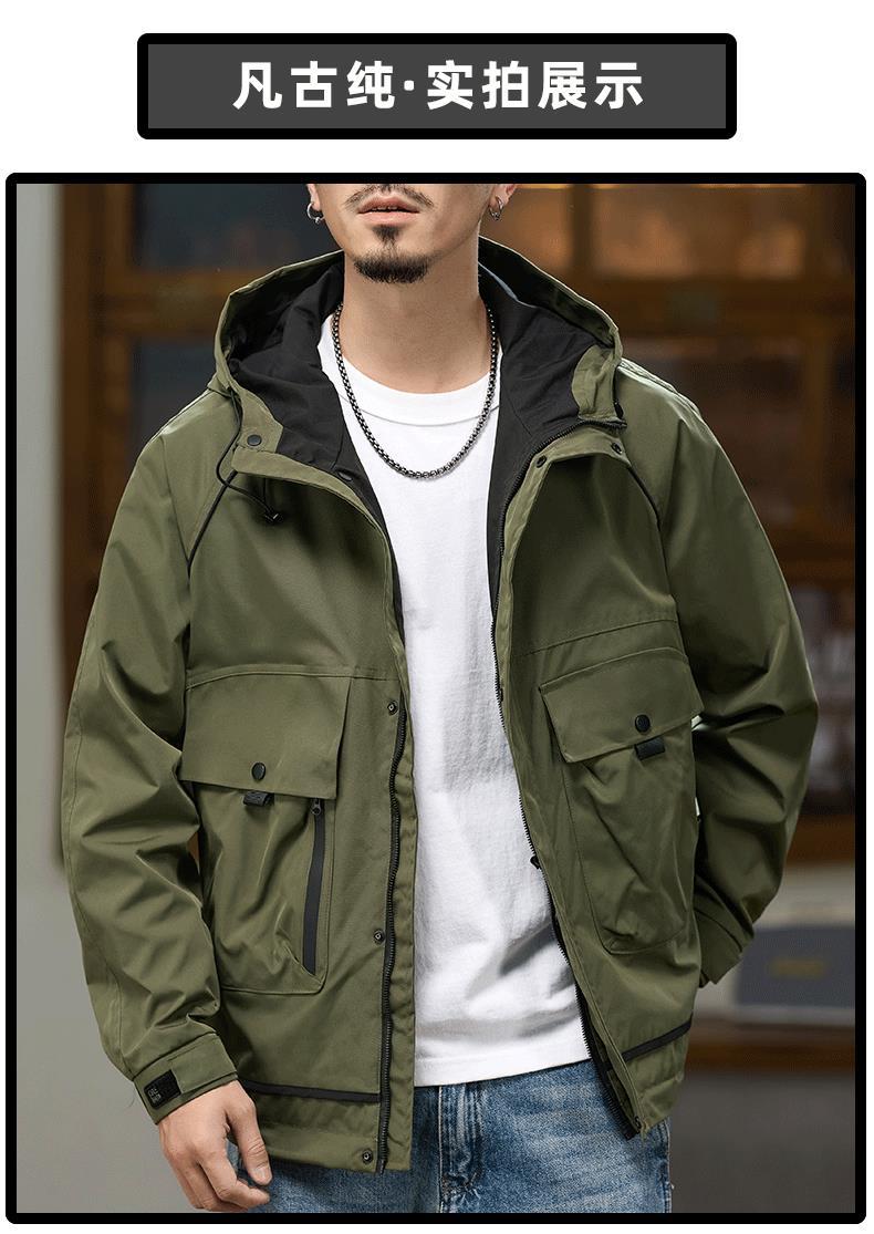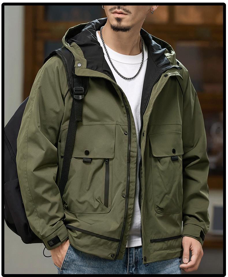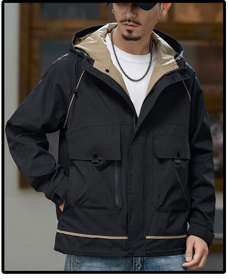 Chaqueta de Ropa de Trabajo Americana para Hombre Primavera y Otoño Casual Holgada para Exterior Tres Pruebas Sistema de Montaña Retro con Capucha Chaqueta Deportiva Marca de Tendencia