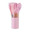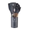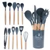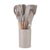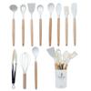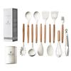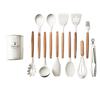 Juego de Utensilios de Cocina de Silicona con Mango de Madera Blanco Leche 11 Piezas Antiadherentes