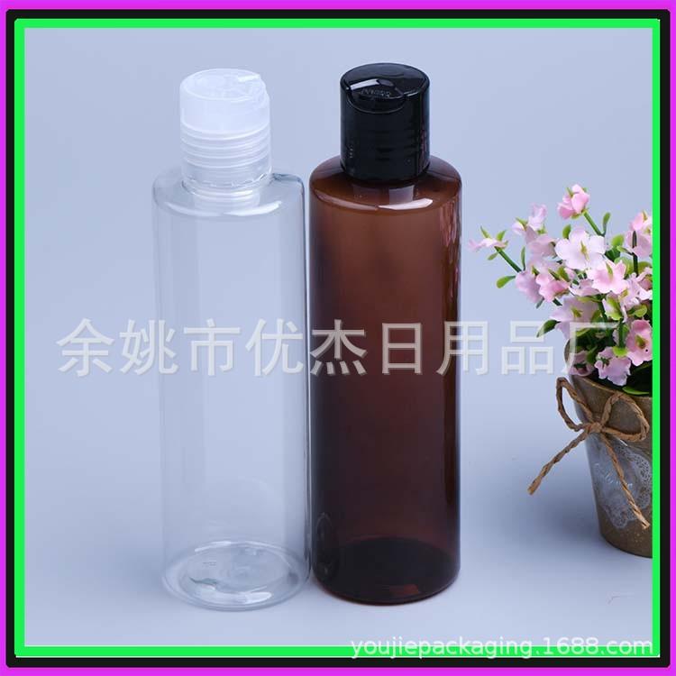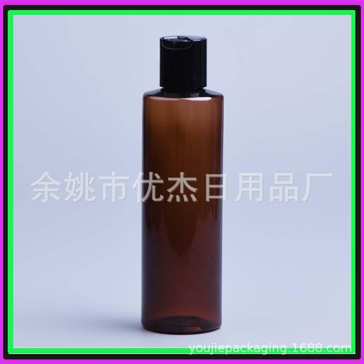 Botella PET de 200 ml de Loción Marrón Hombro Plano con Dispensador a Presión Champú Acondicionador Botella Tapa Abatible Botella de Muestra de Jabón para Trastes