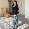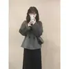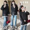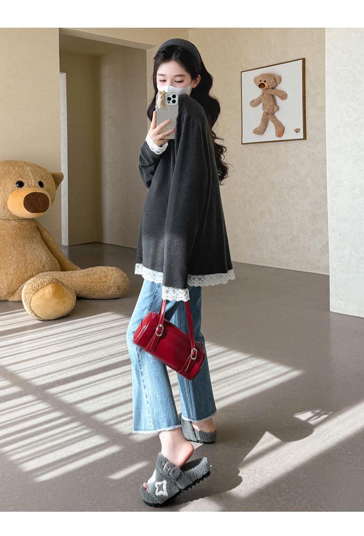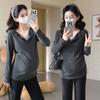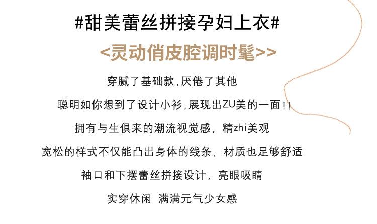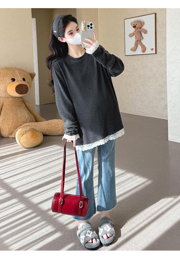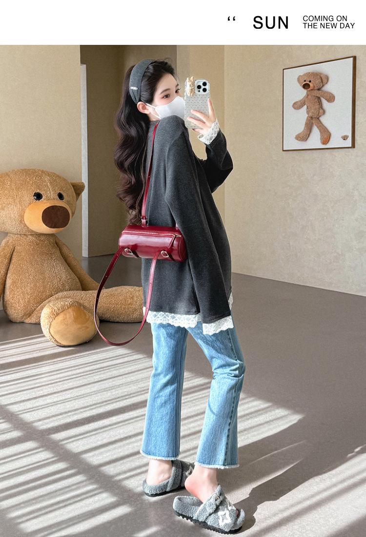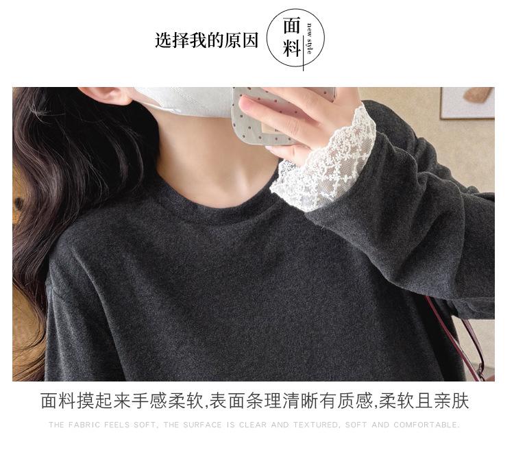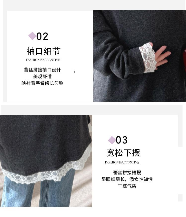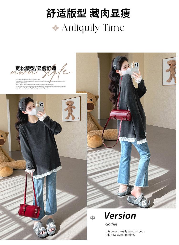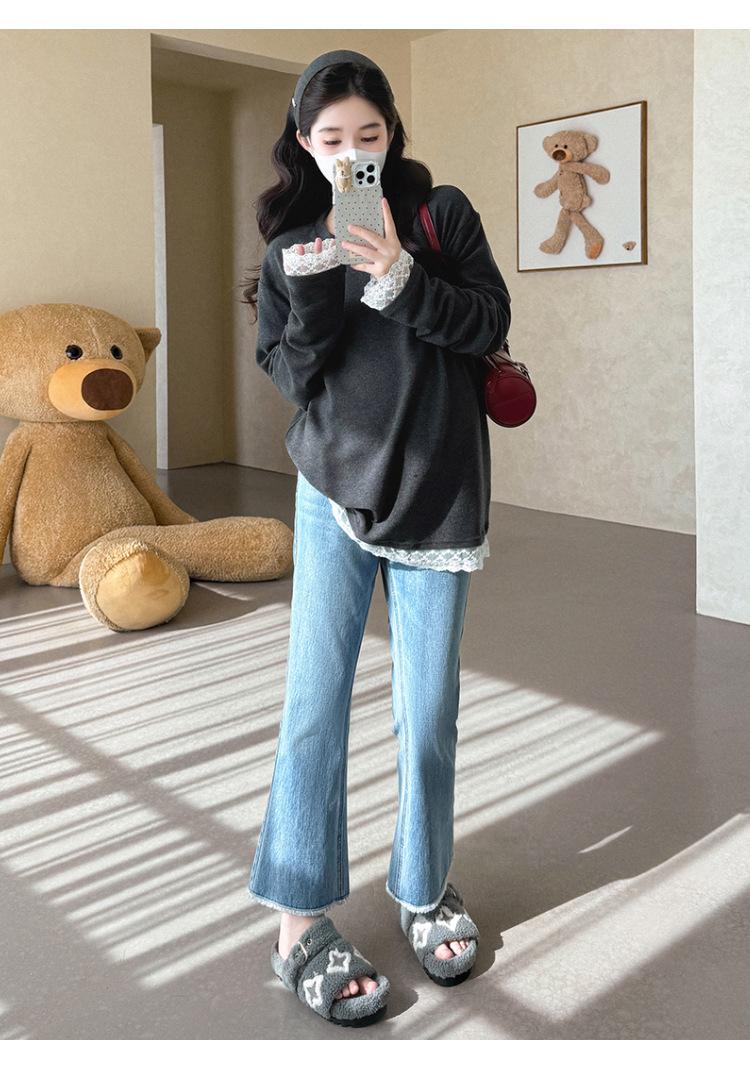 Top de Maternidad 2025 Otoño/Invierno Nueva Moda Encaje Patchwork Color Sólido Dobladillo de Encaje Capa Base Cálida Cepillada