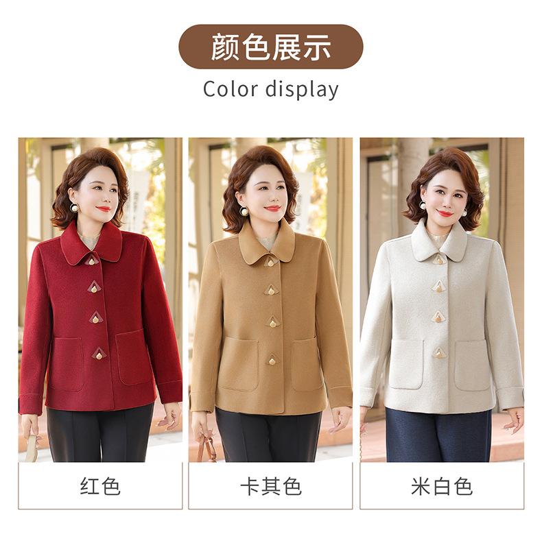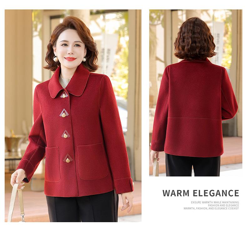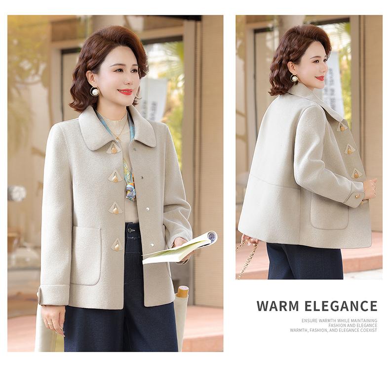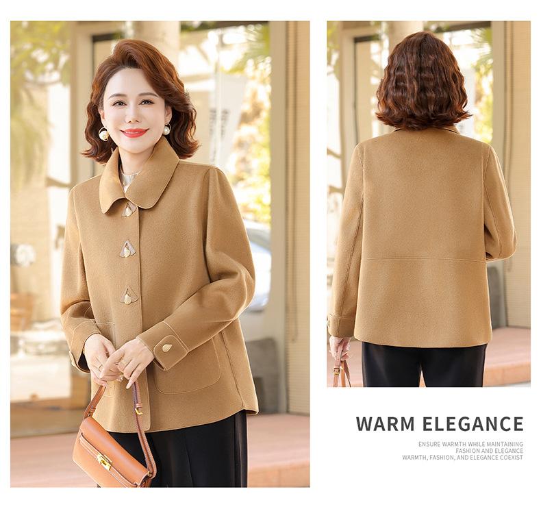 2025 Nuevo Abrigo Corto de Lana de Doble Faz para Primavera y Otoño, Temperamento, Ropa para Mujeres de Mediana Edad y Mayores, Abrigo Exterior de Otoño para Madres