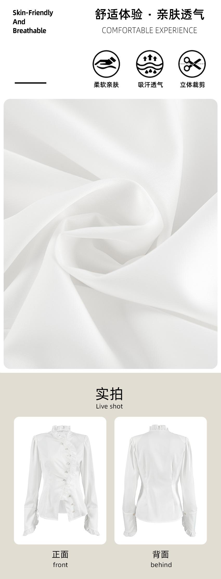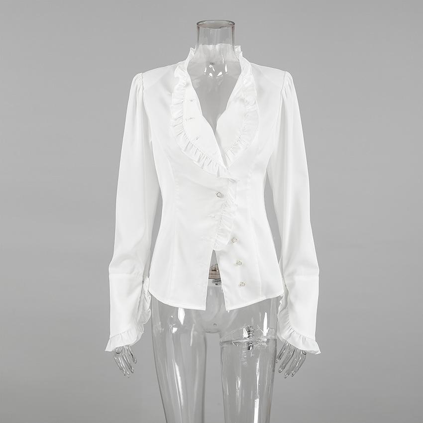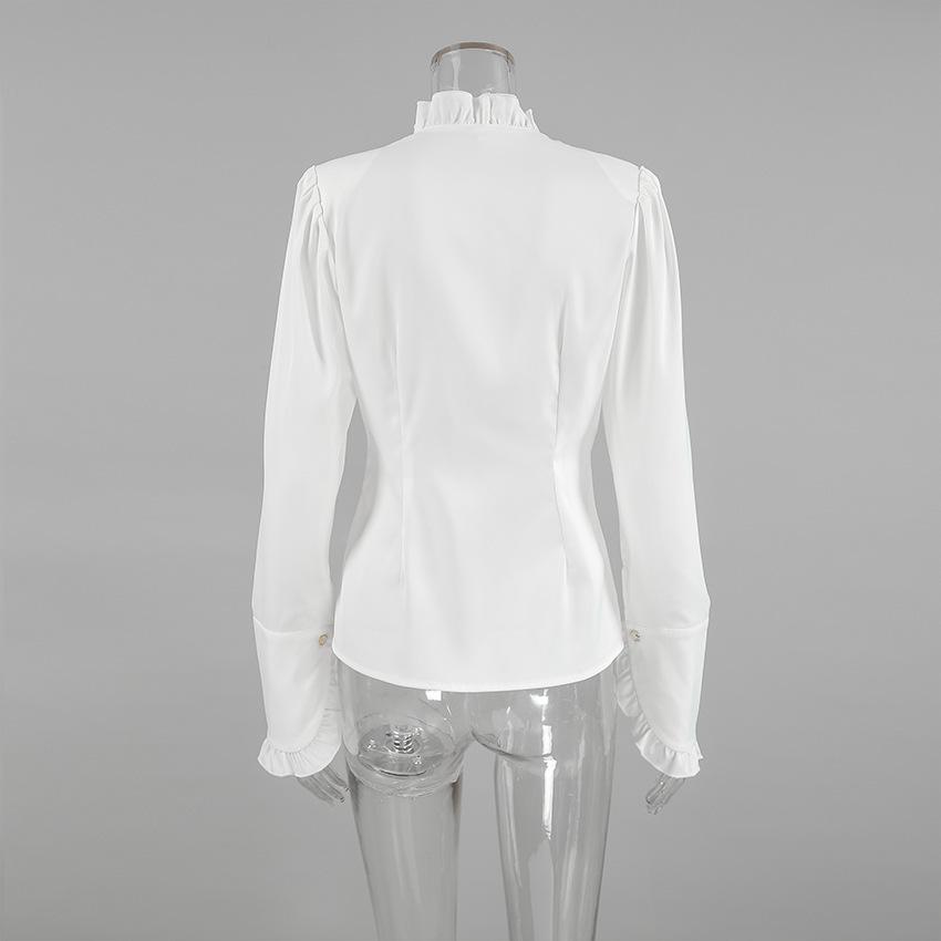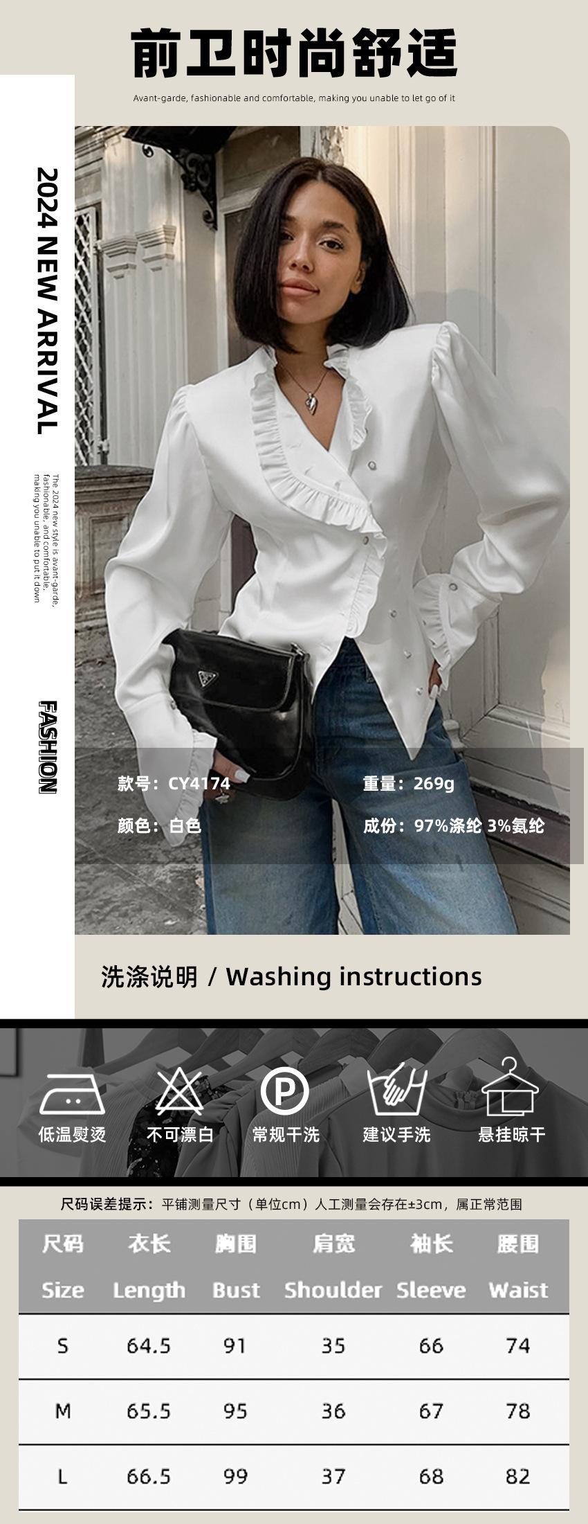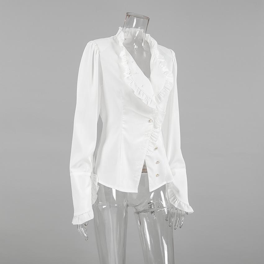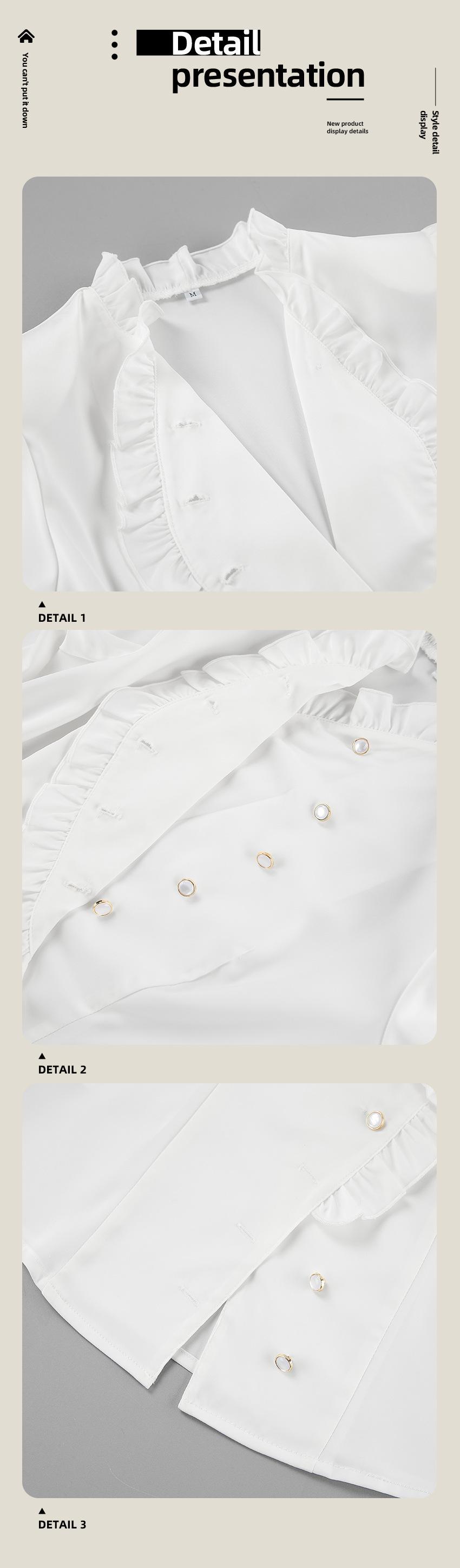 Compra Camisa de satén con volantes transfronteriza europea y americana Otoño 2025 Temperamento Ropa interior Adelgazante Top de encaje blanco Ropa de mujer al por mayor en Joom.pro