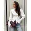 Camisa de satén con volantes transfronteriza europea y americana Otoño 2025 Temperamento Ropa interior Adelgazante Top de encaje blanco Ropa de mujer