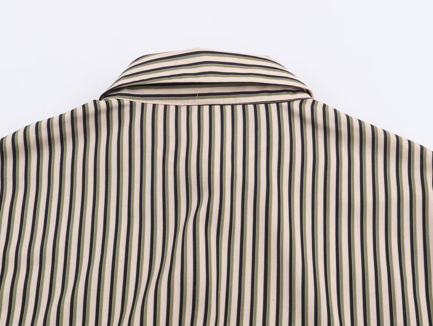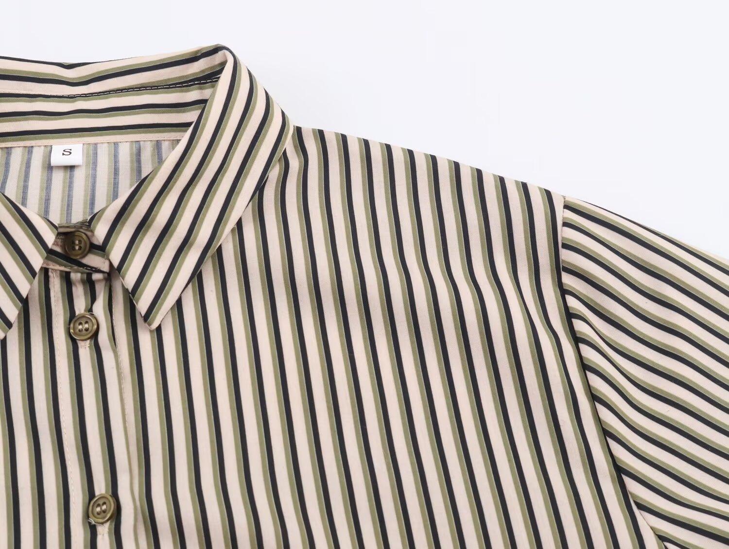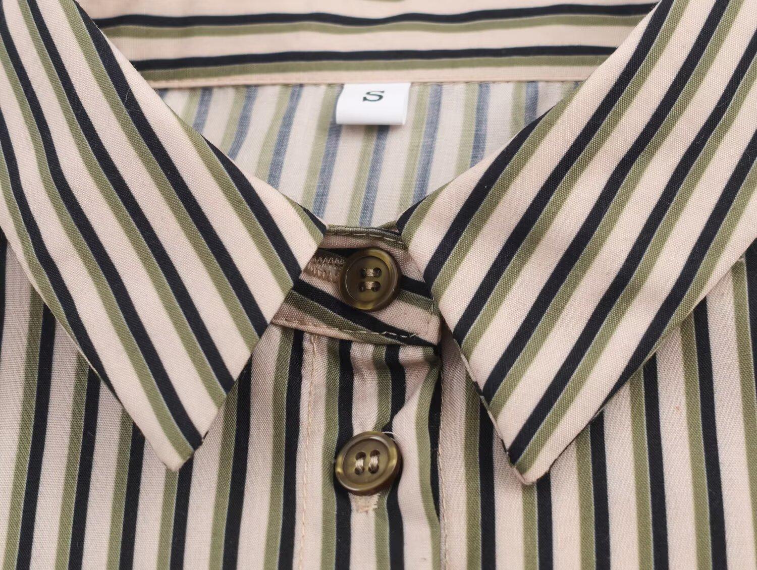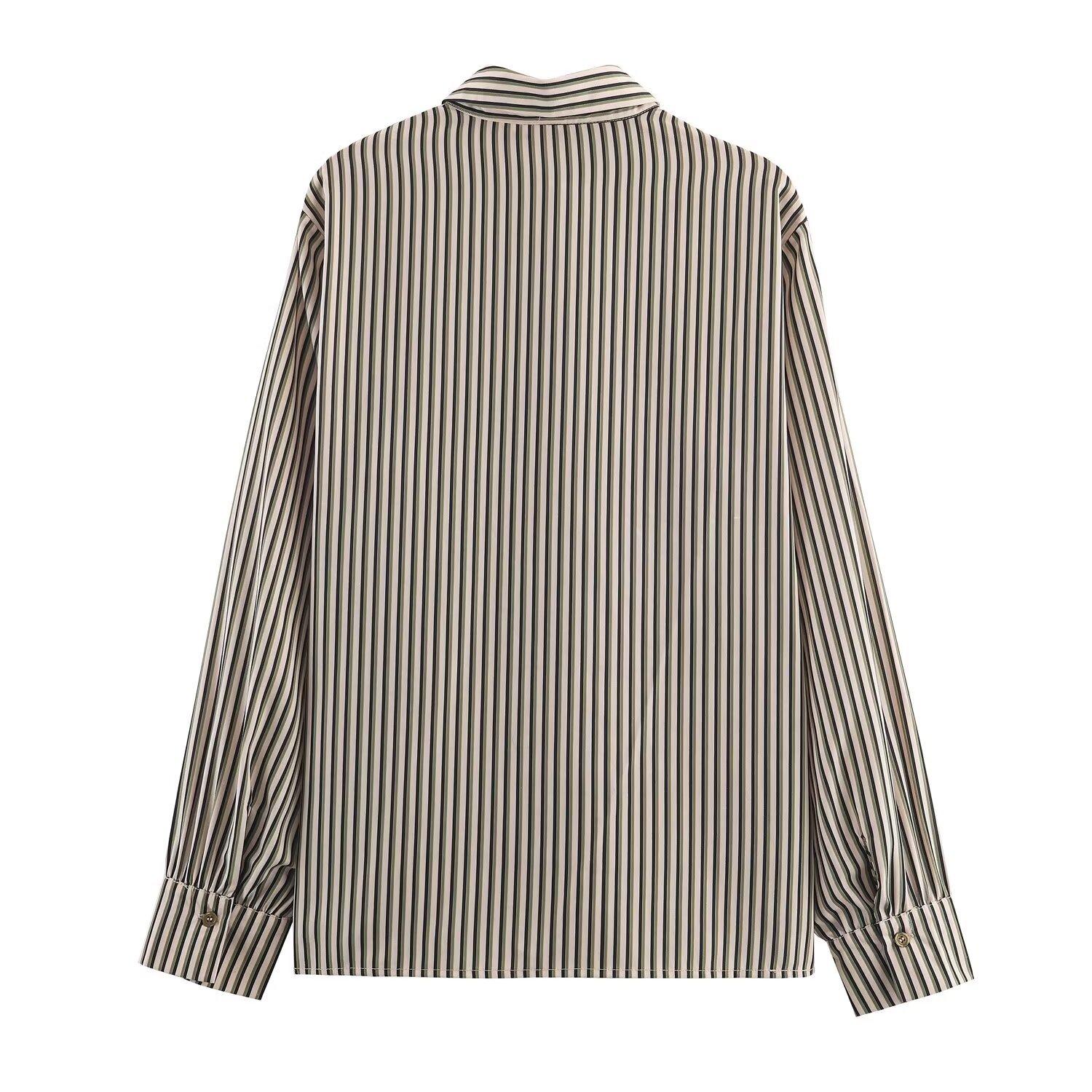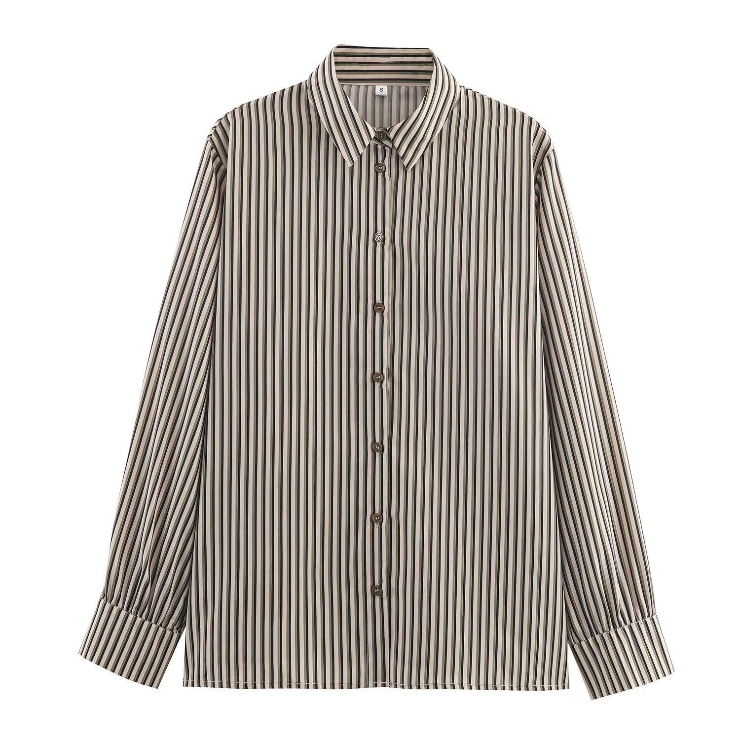 Venta al por mayor de ropa de mujer transfronteriza 2025 otoño nueva ropa de mujer estilo europeo y americano moda simple versátil camisa a rayas