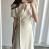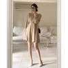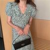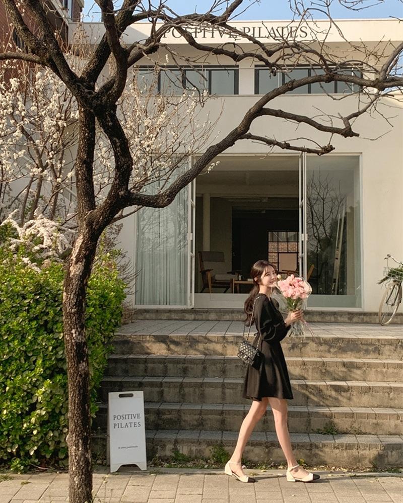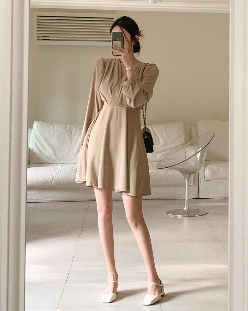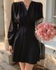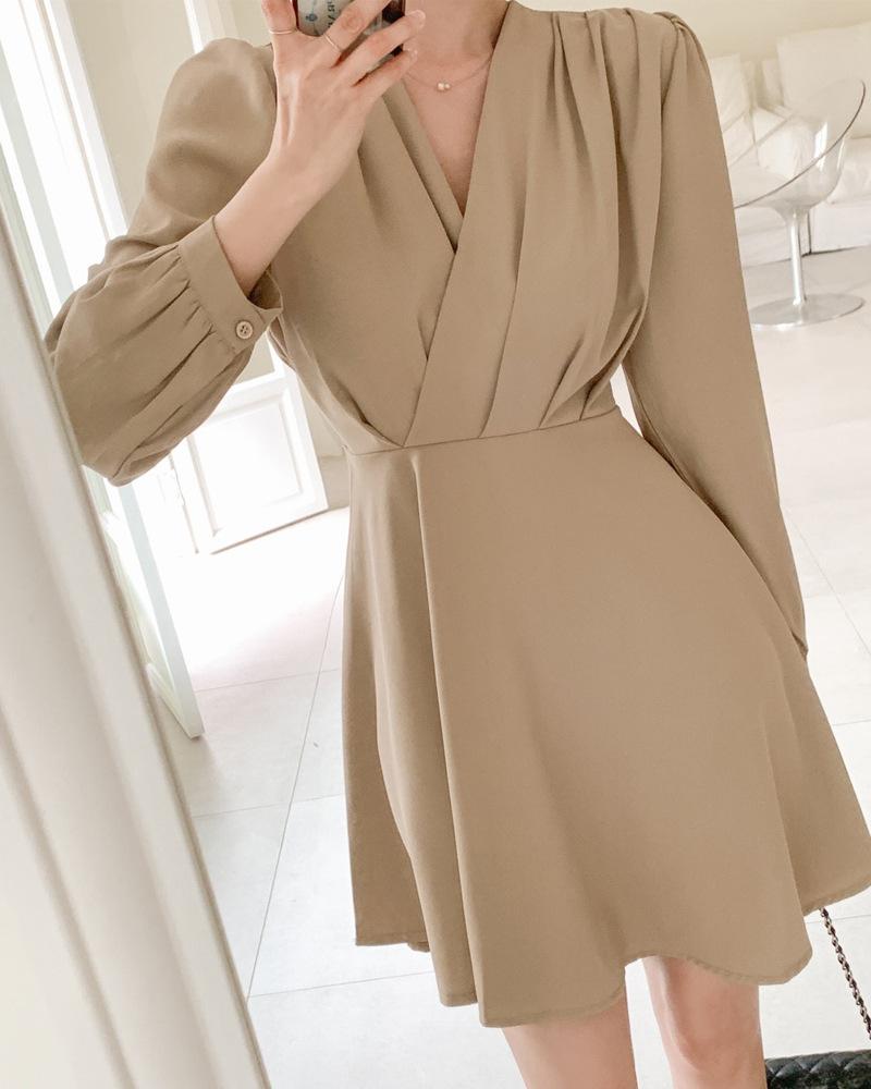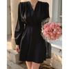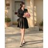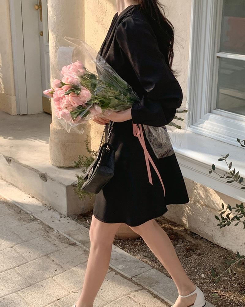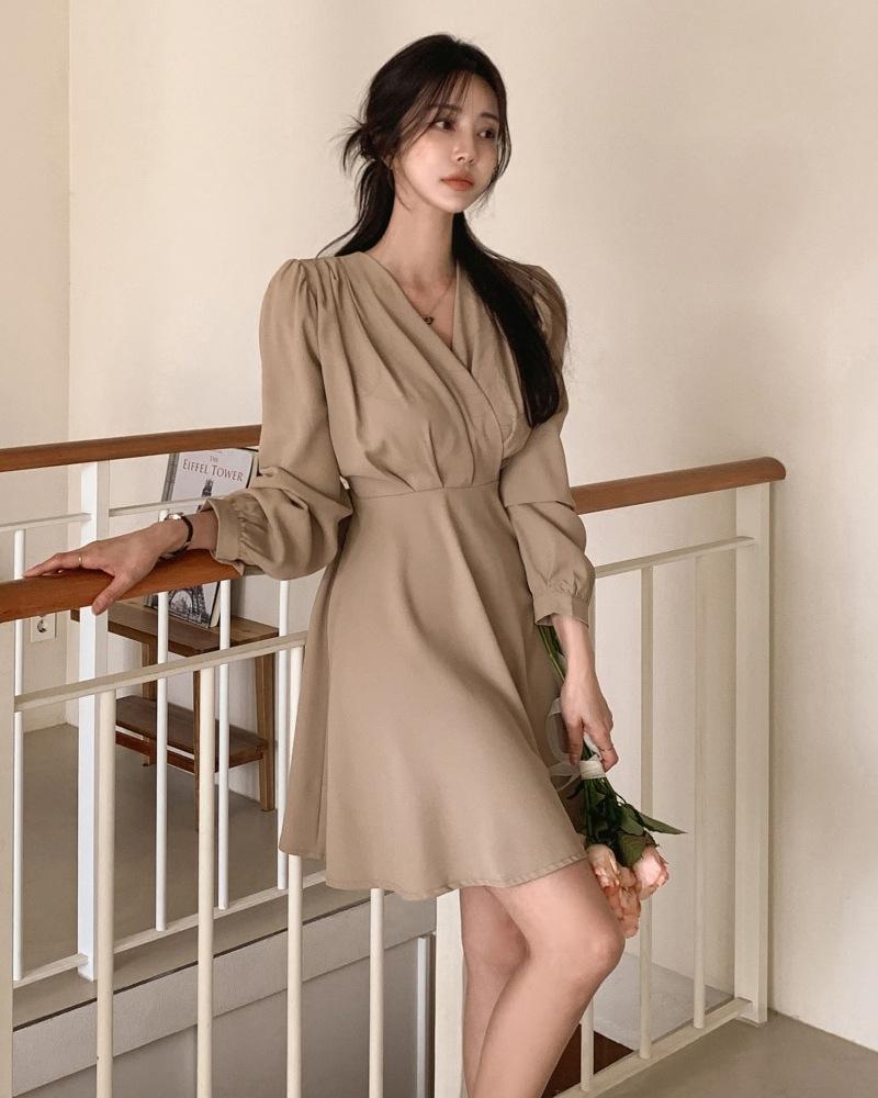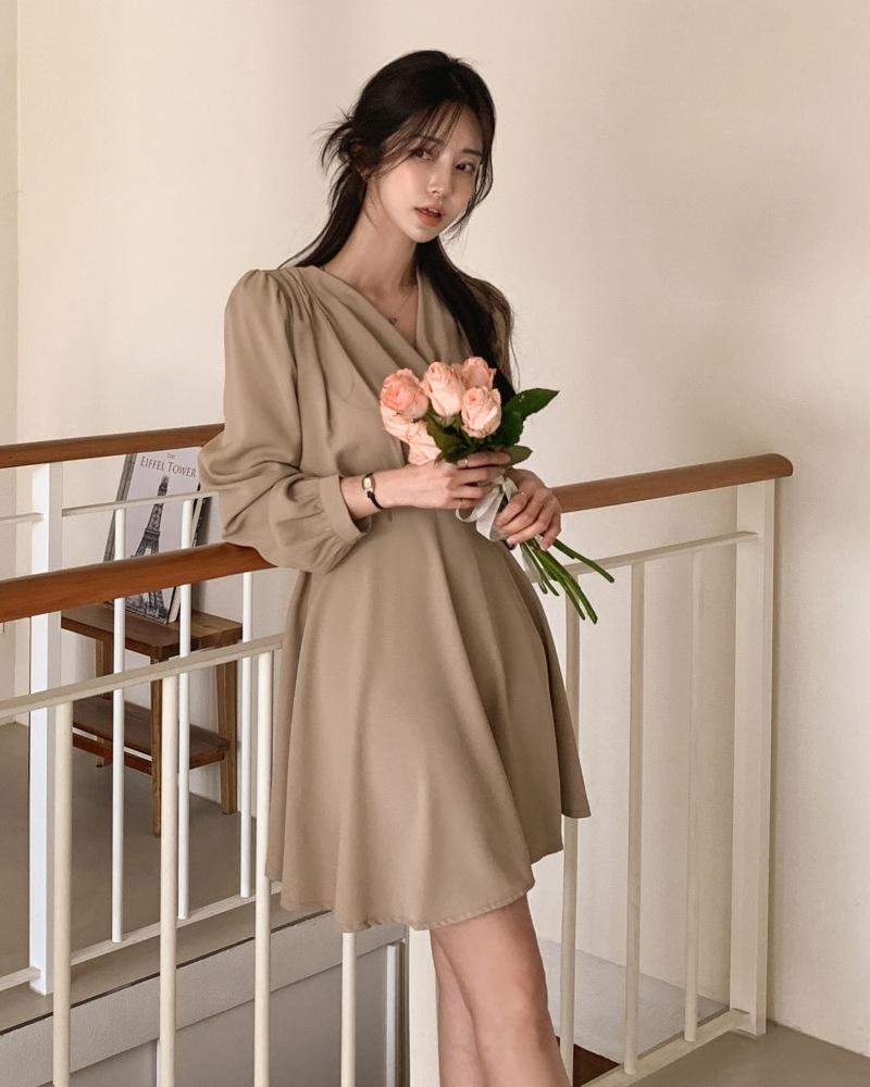 Vestido coreano chic con cuello en V francés y cinturón de temperamento