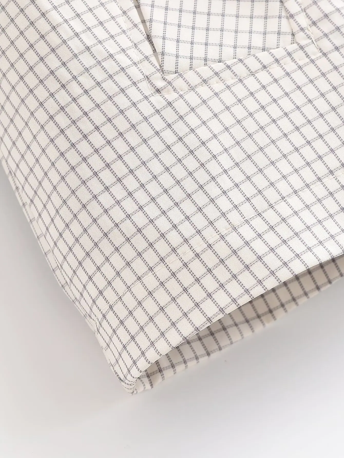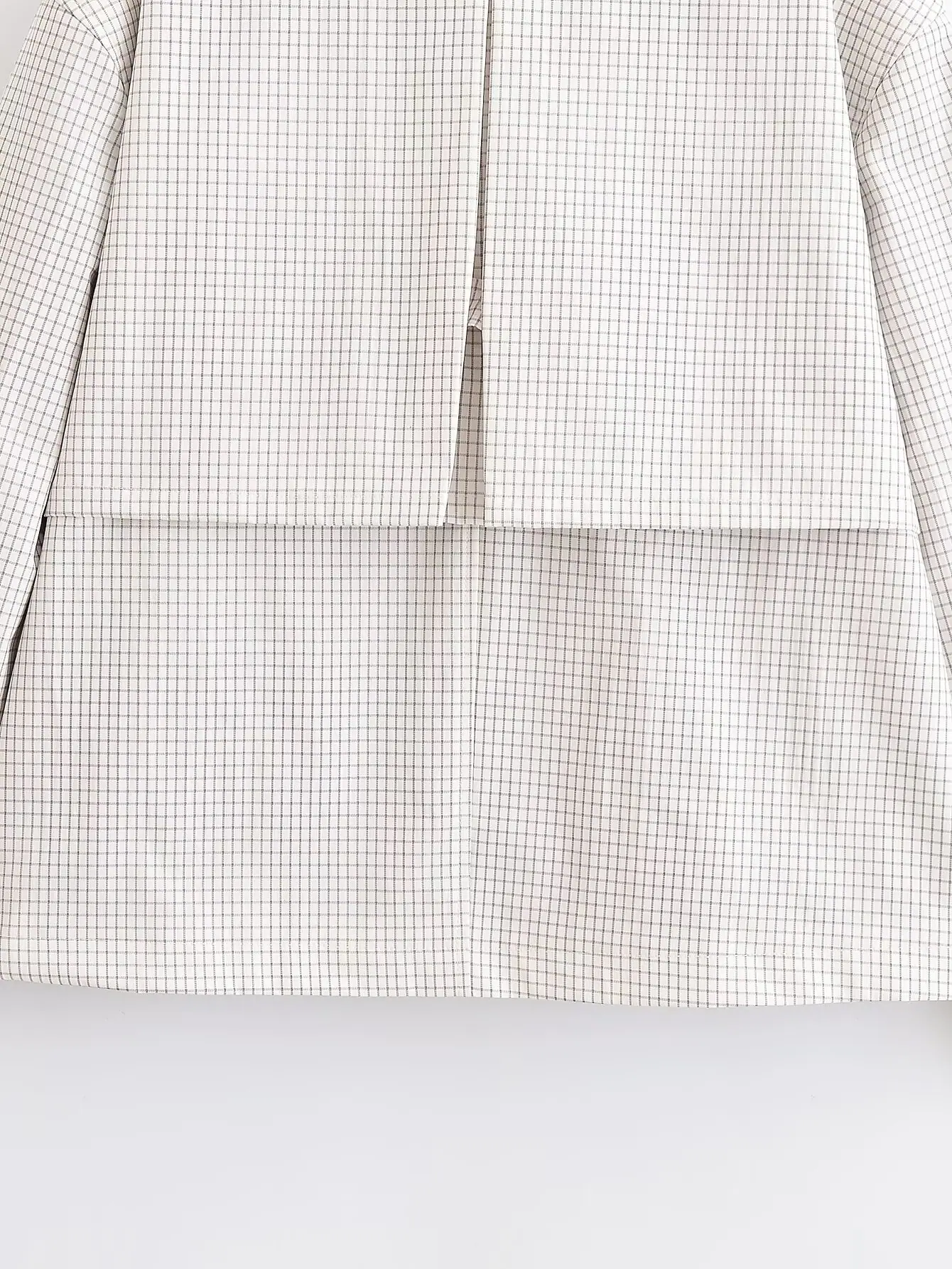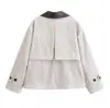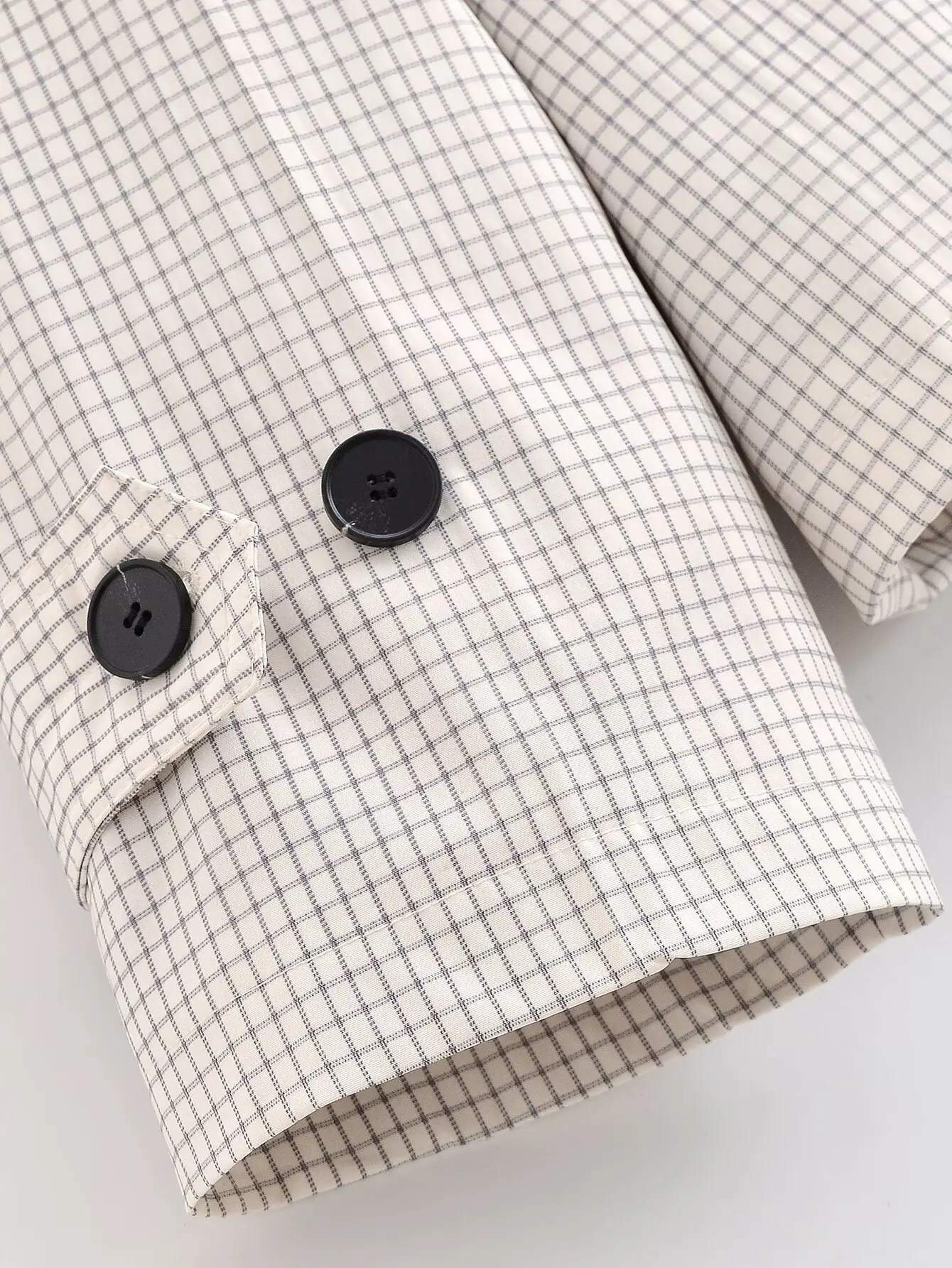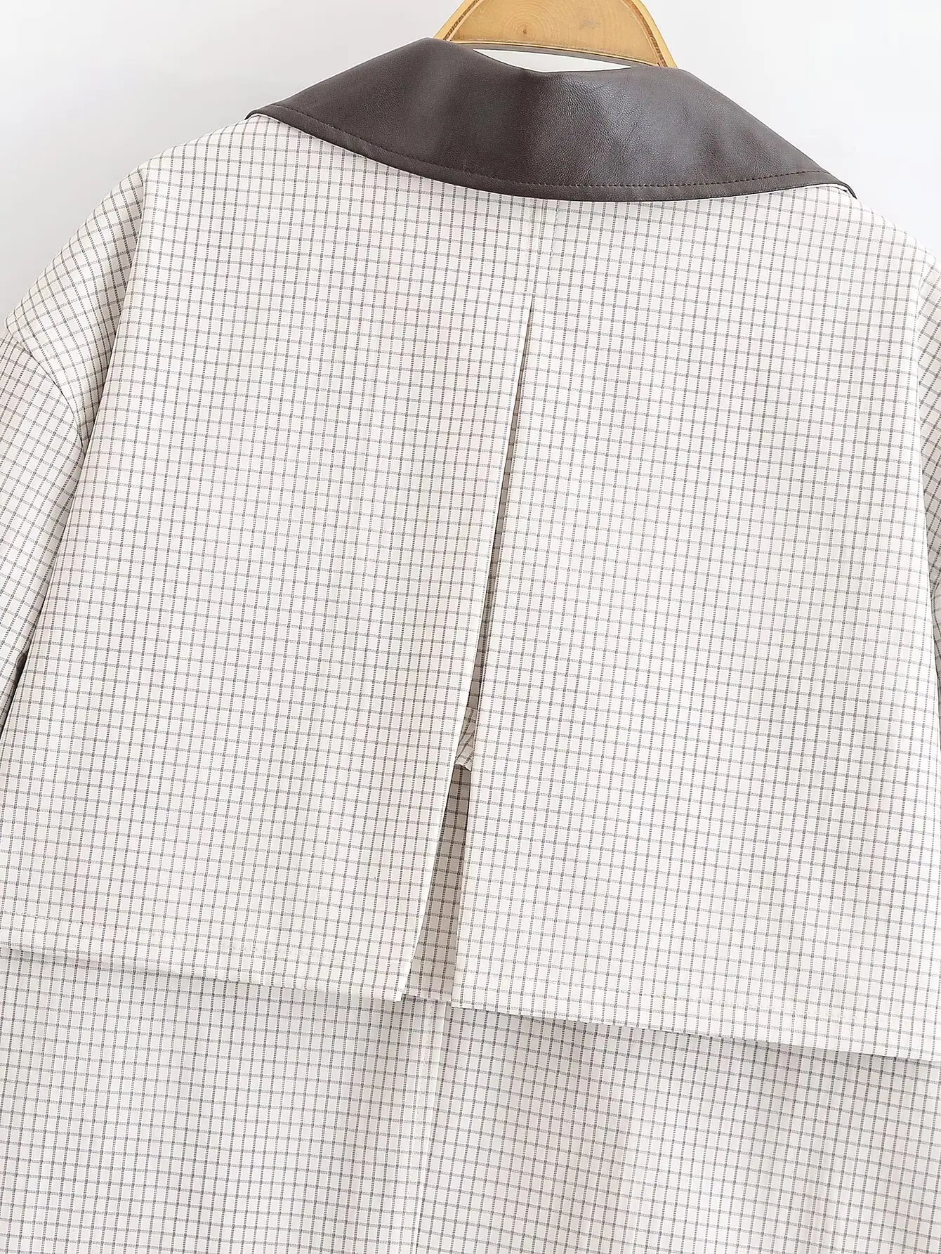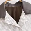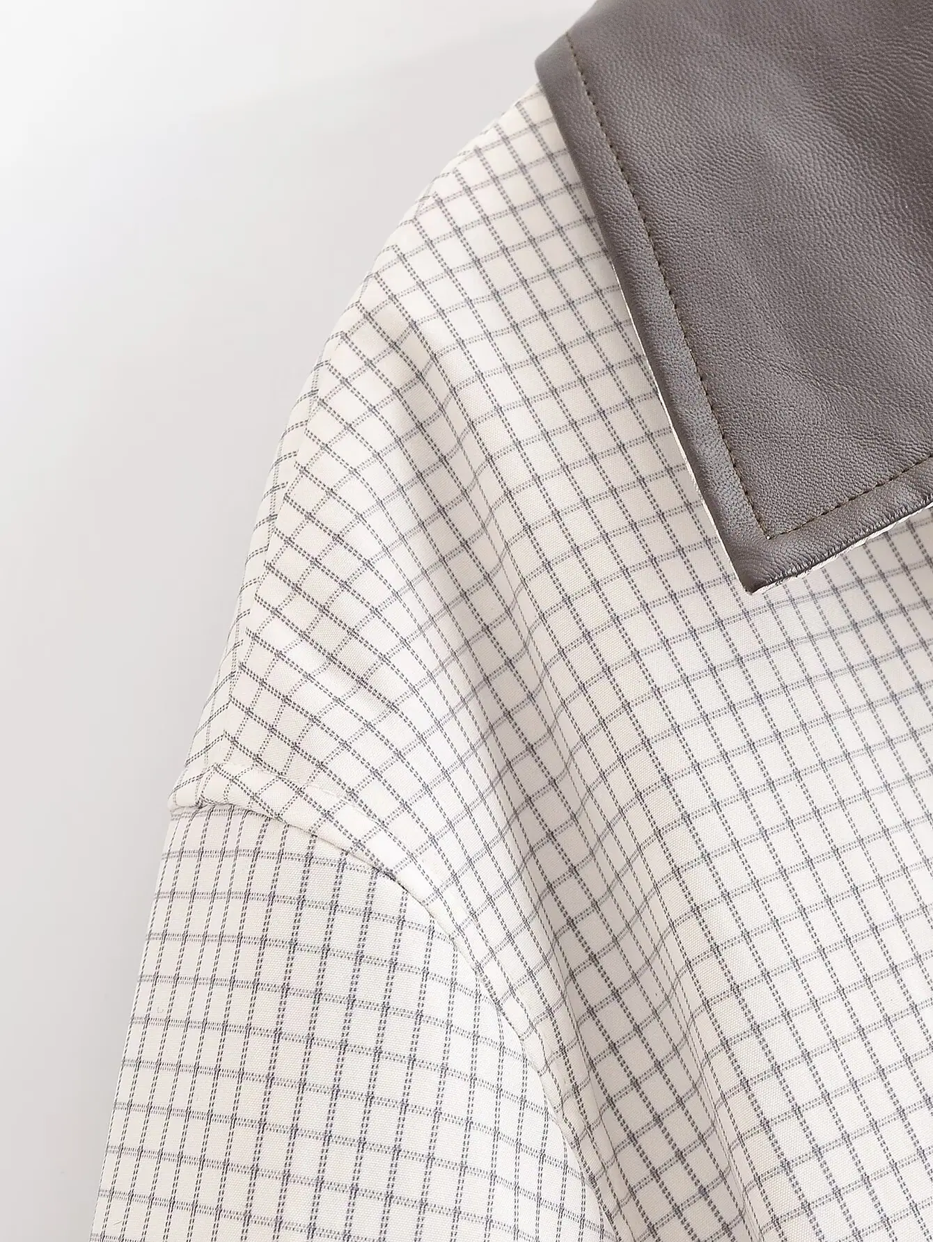 Ropa de mujer transfronteriza otoño/invierno 2025 estilo europeo y americano bloque de color solapa PU abrigo trench corto a cuadros chaqueta mujer A711681