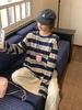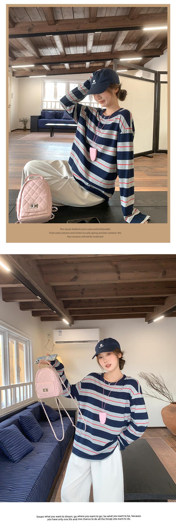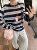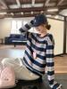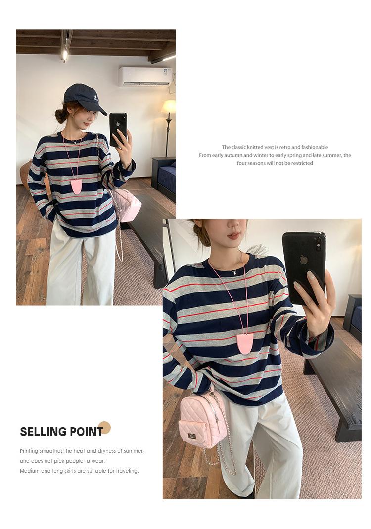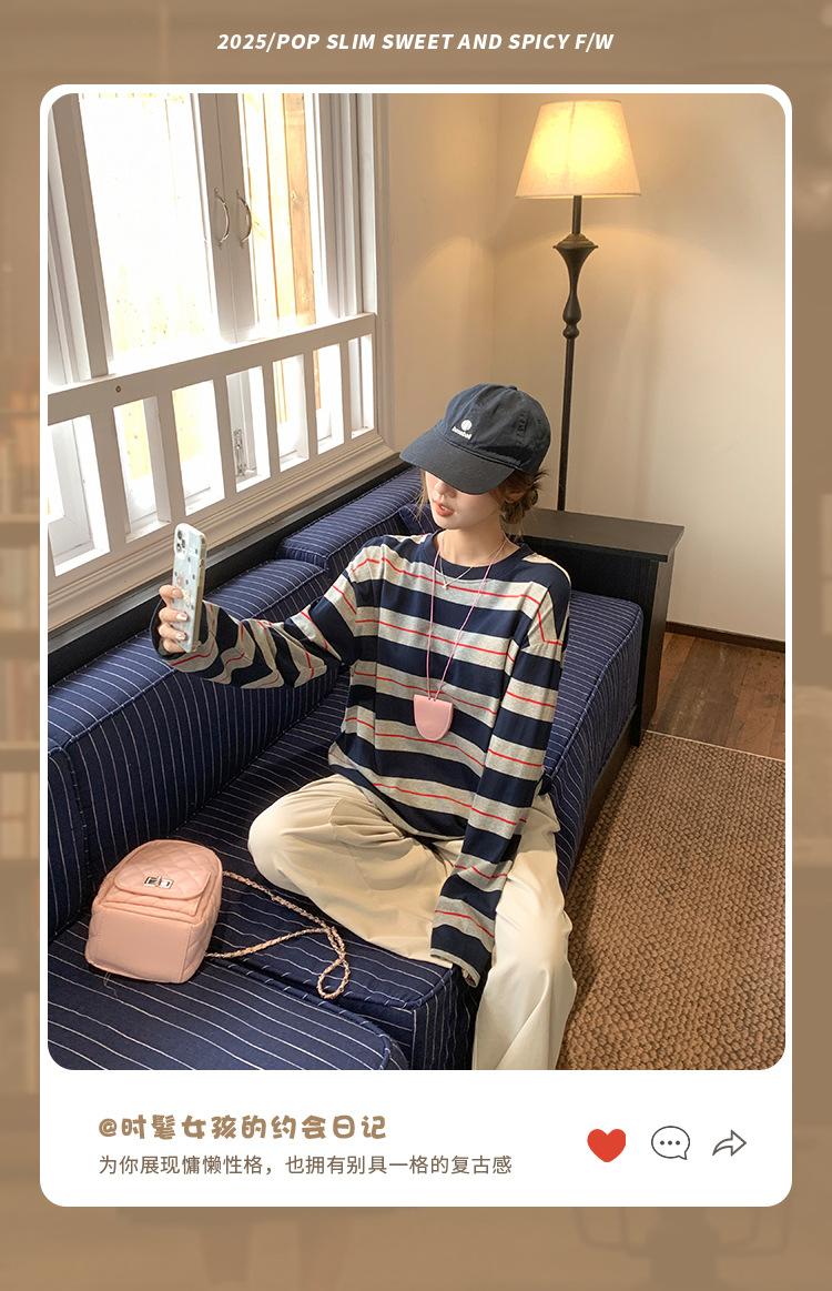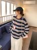 Playera de Manga Larga con Cuello Redondo y Bloque de Color a Rayas para Mujer Estilo Coreano Outfit de Principios de Otoño Capa Interior Holgada Top Relajado