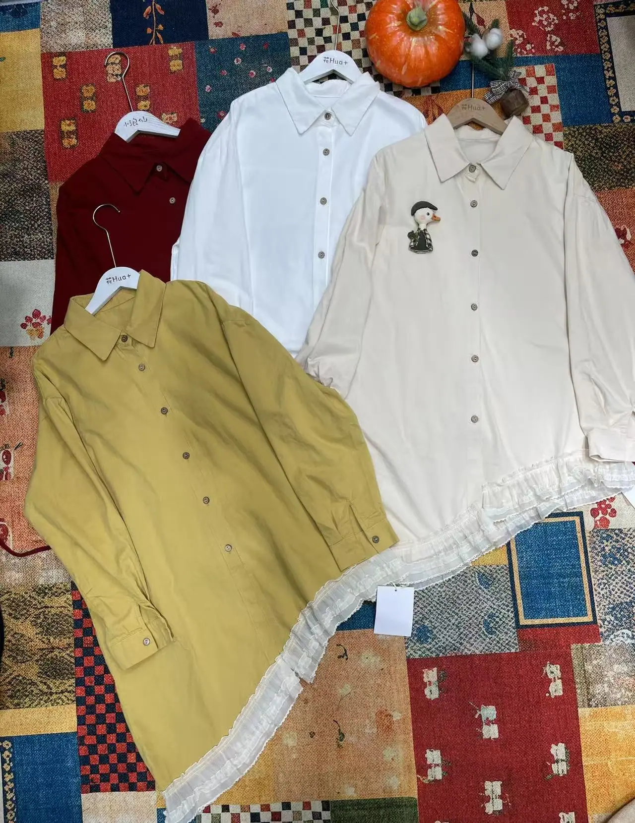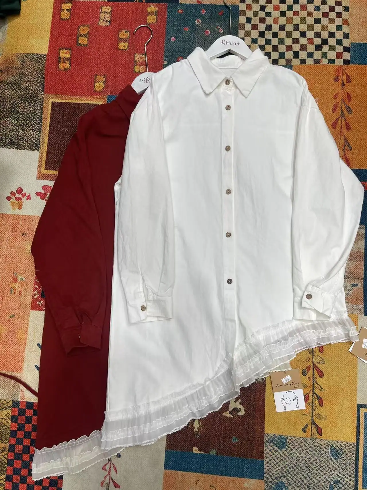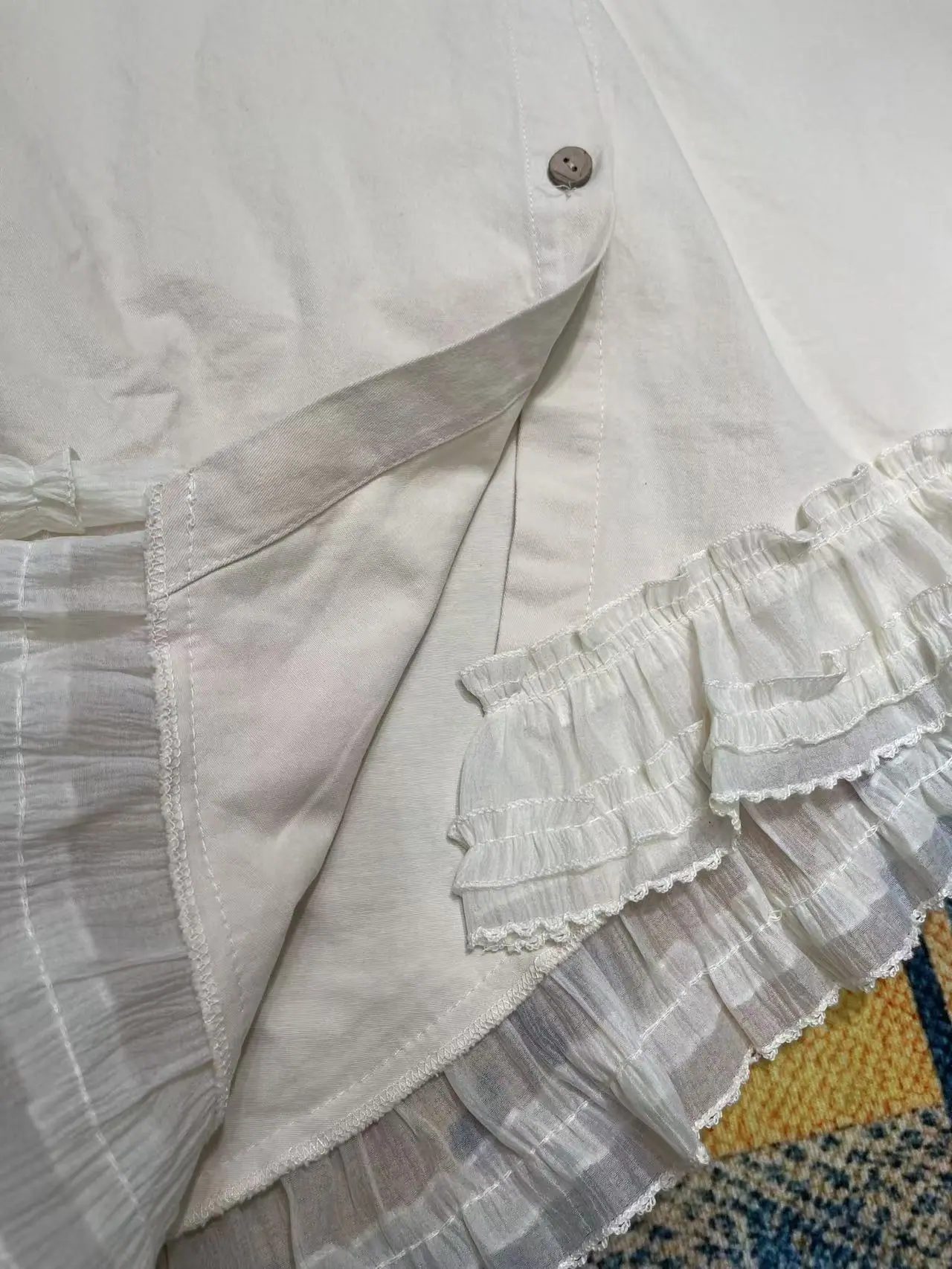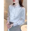 Camisa Coreana Retro Bajo Irregular Encaje Manga Larga Otoño/Invierno Diseño Sensorial Diseño Cepillado Camisa Larga Mujer