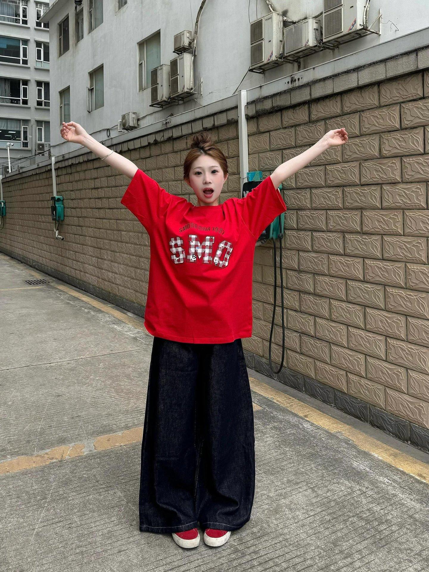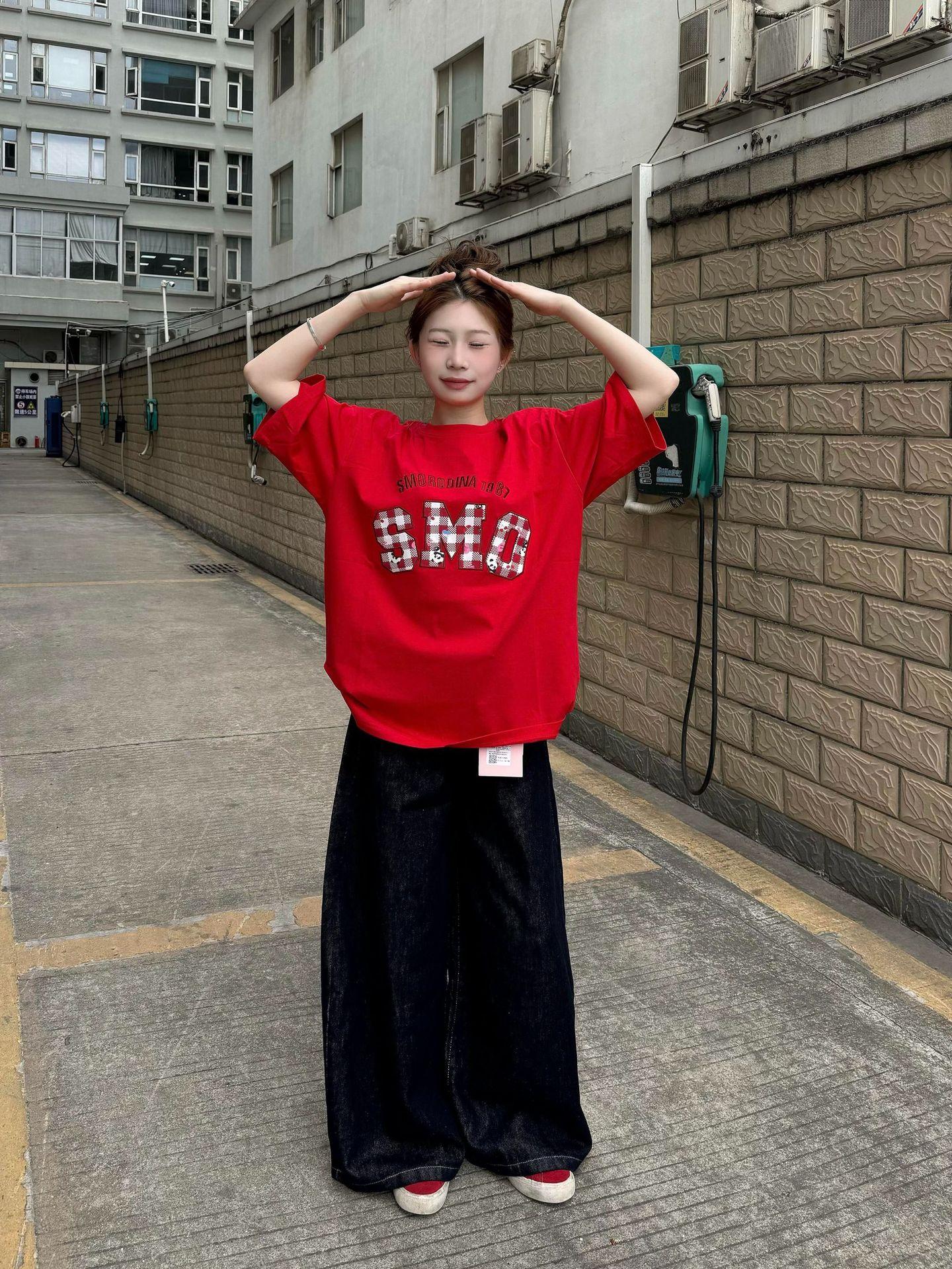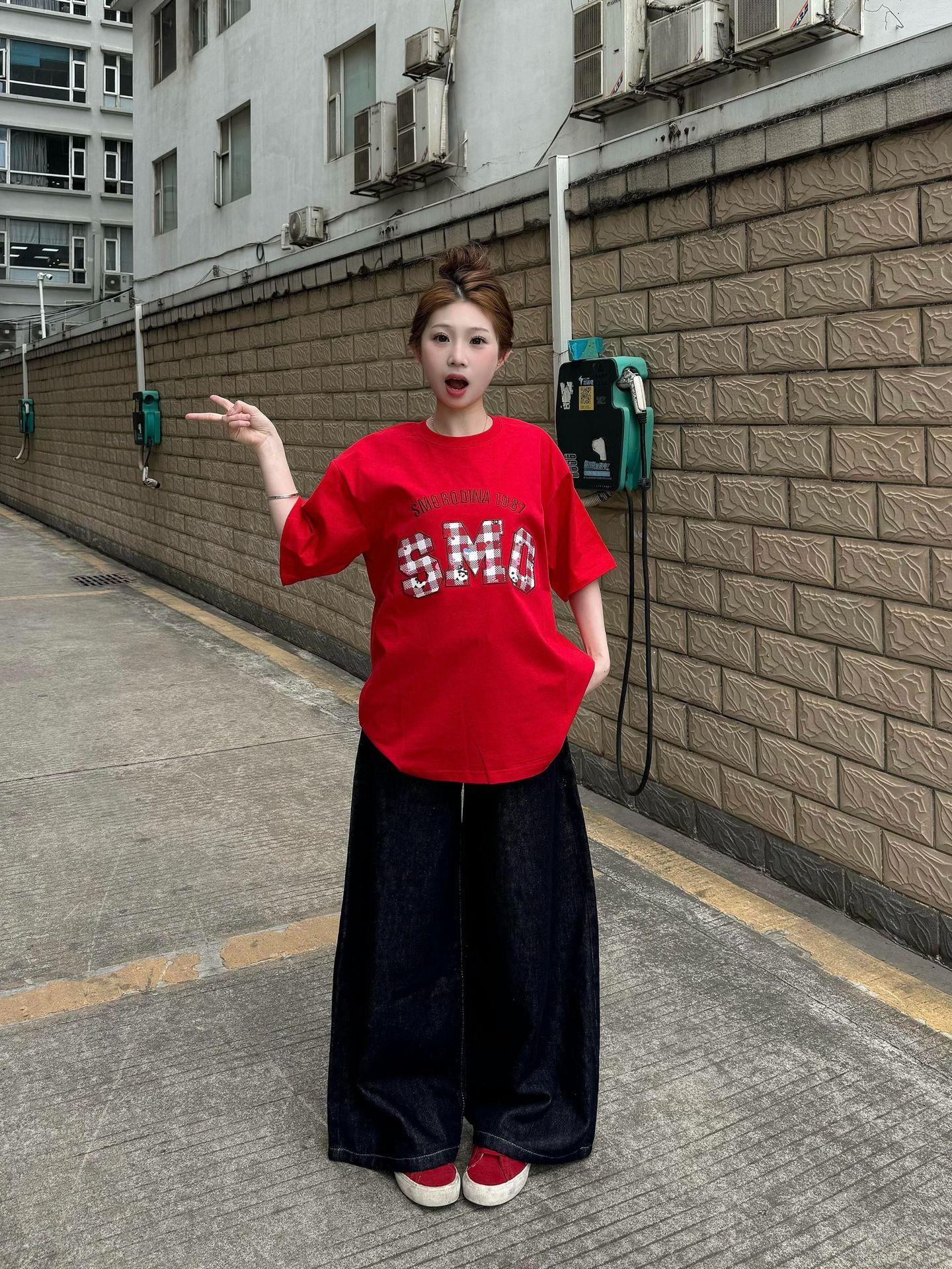 Ins Super Popular Camiseta de Manga Corta de Algodón Puro para Mujer Camiseta Sencilla Estampada de Media Manga Tops Verano Estudiantes Europeos y Americanos Coreanos