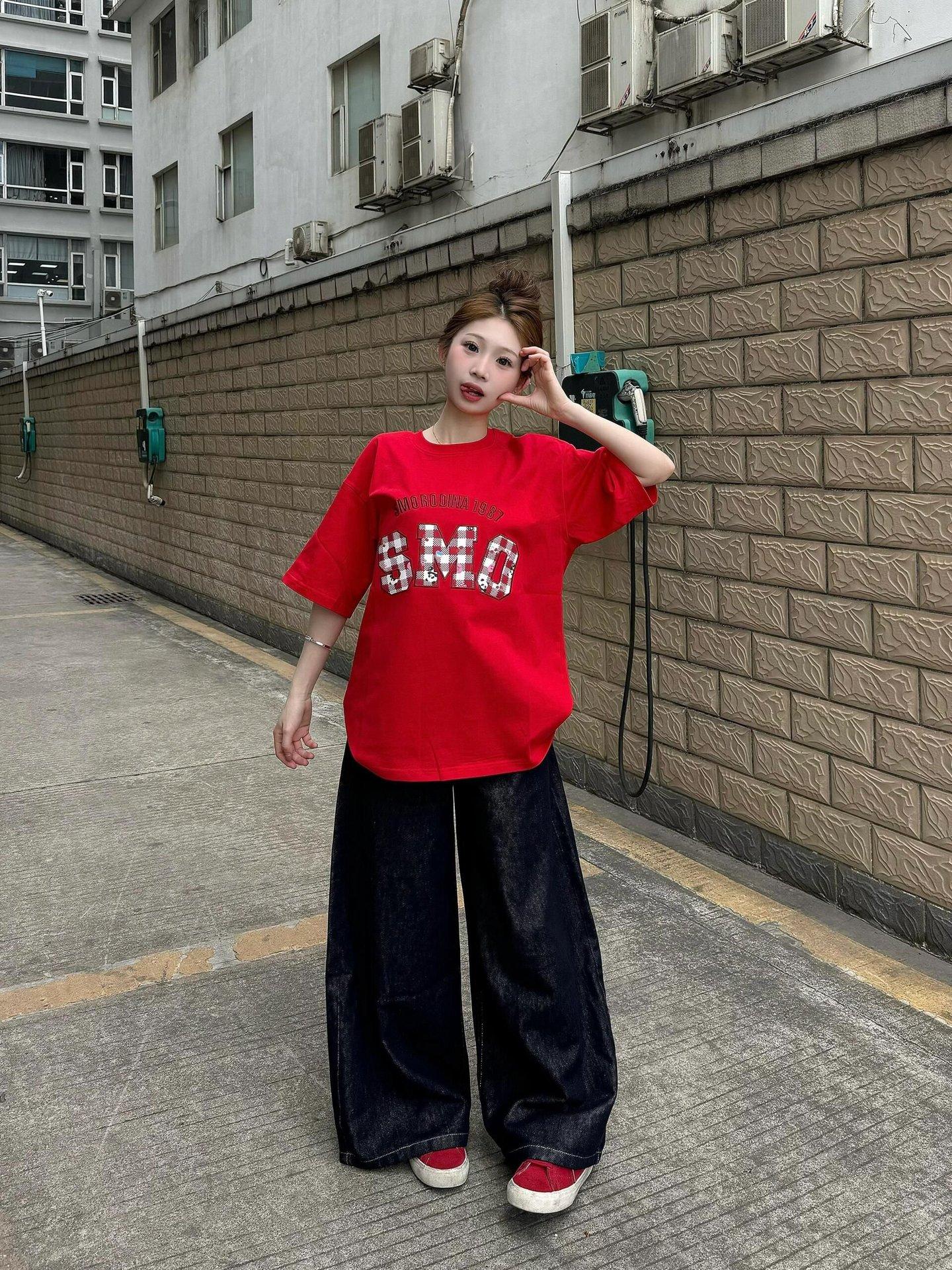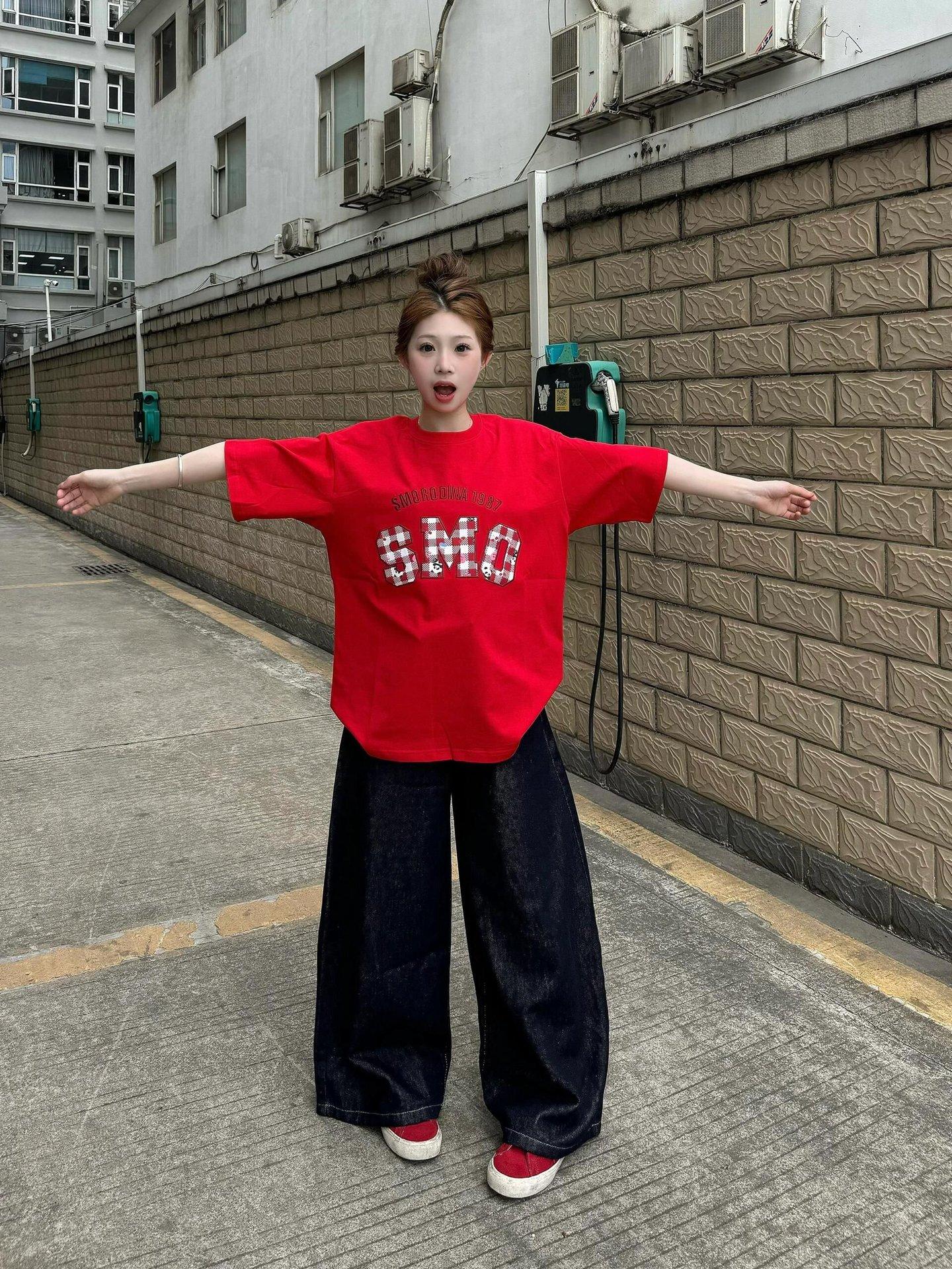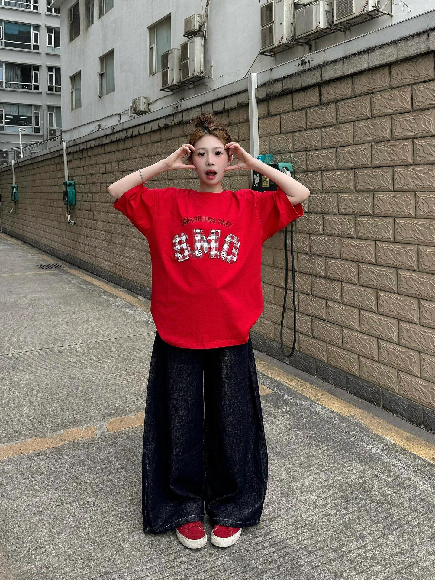 Ins Super Popular Camiseta de Manga Corta de Algodón Puro para Mujer Camiseta Sencilla Estampada de Media Manga Tops Verano Estudiantes Europeos y Americanos Coreanos