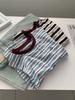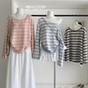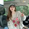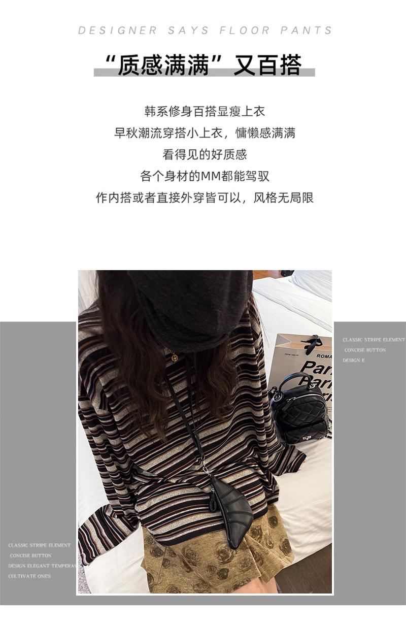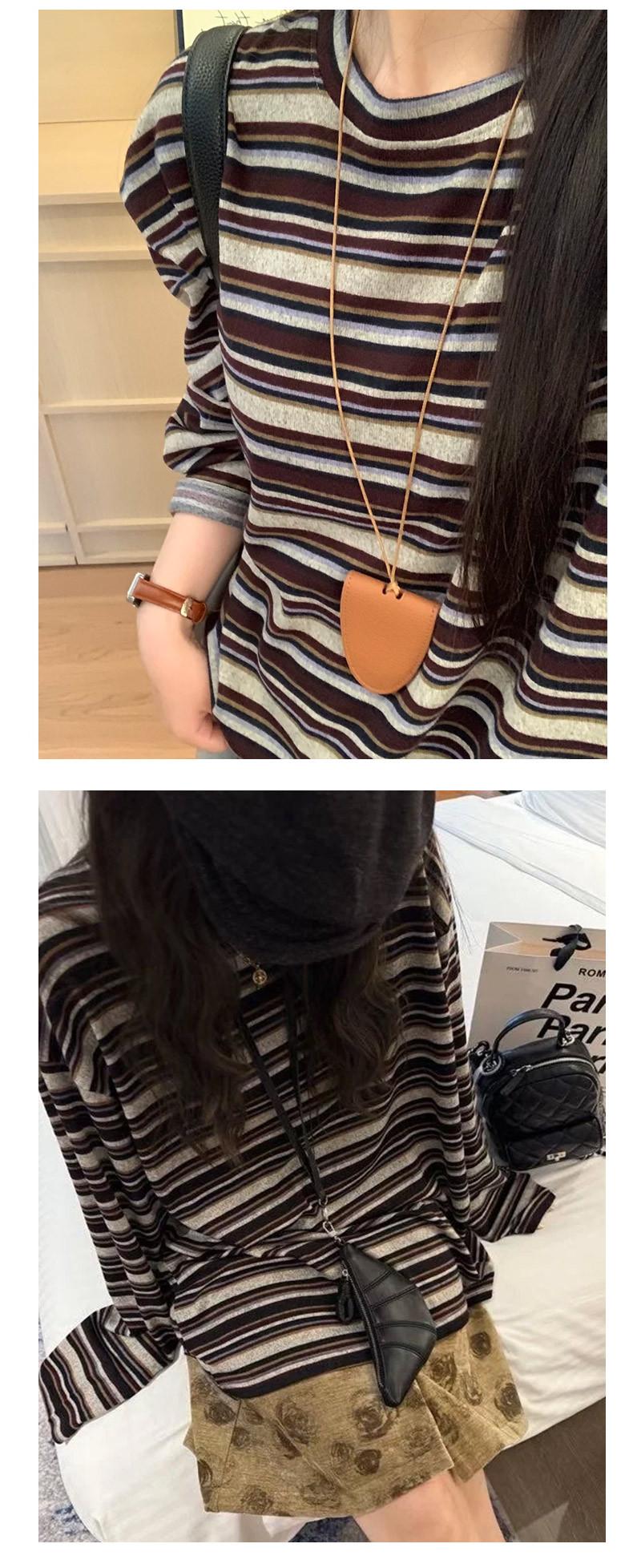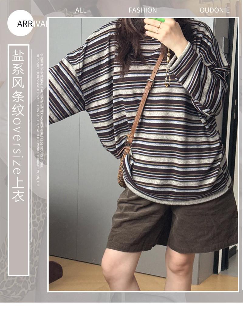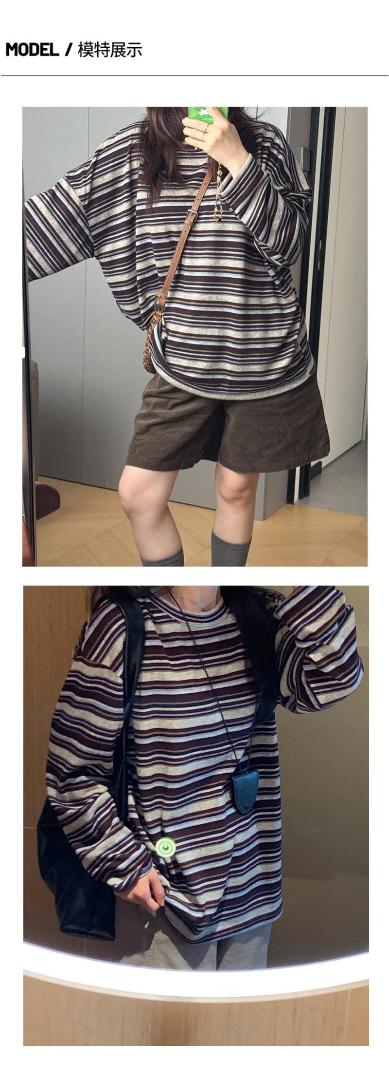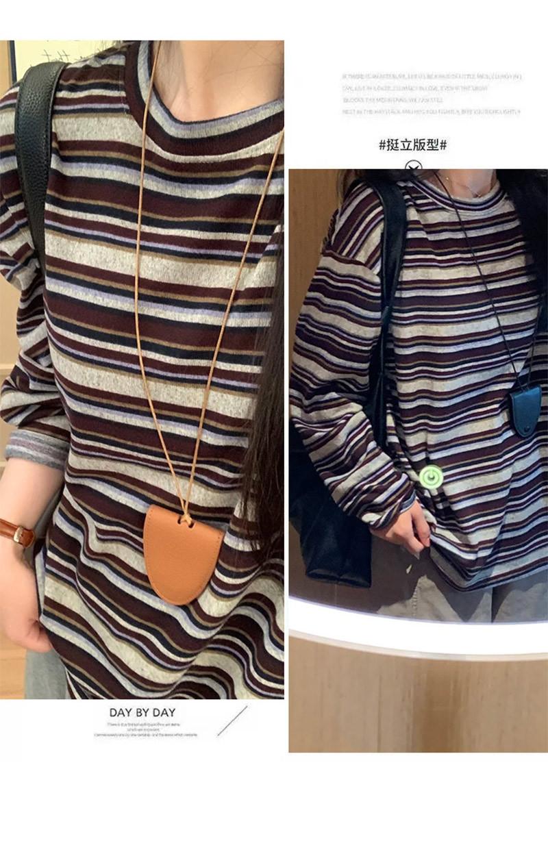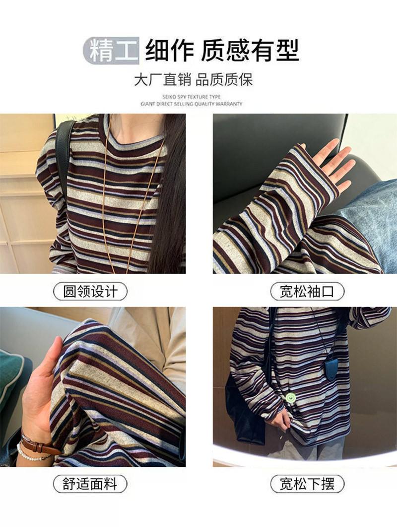 Camiseta de manga larga a rayas retro con cuello redondo y bloques de color para mujer, versátil para primavera y otoño, top holgado de sensación relajada y perezosa