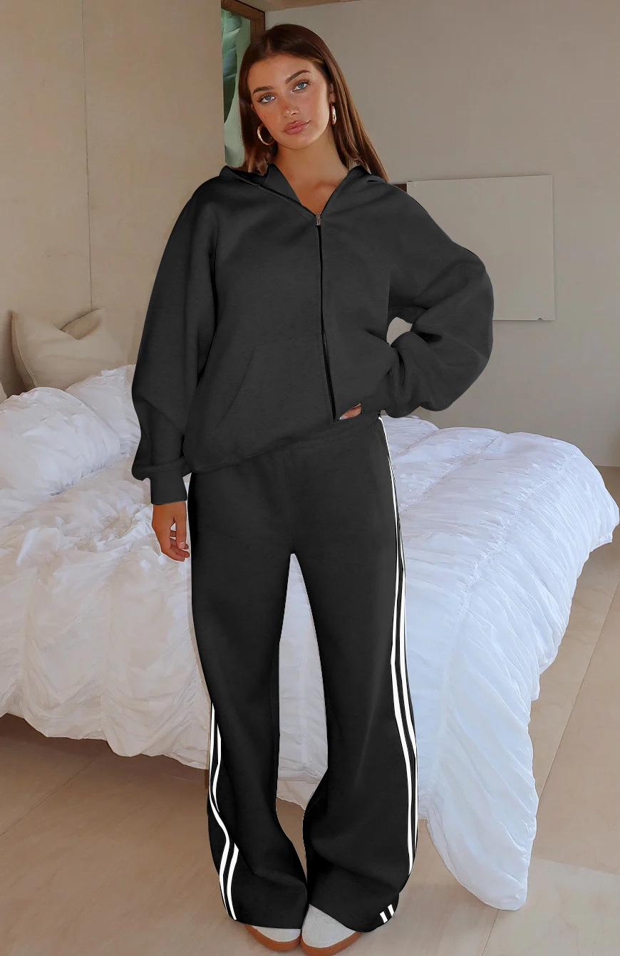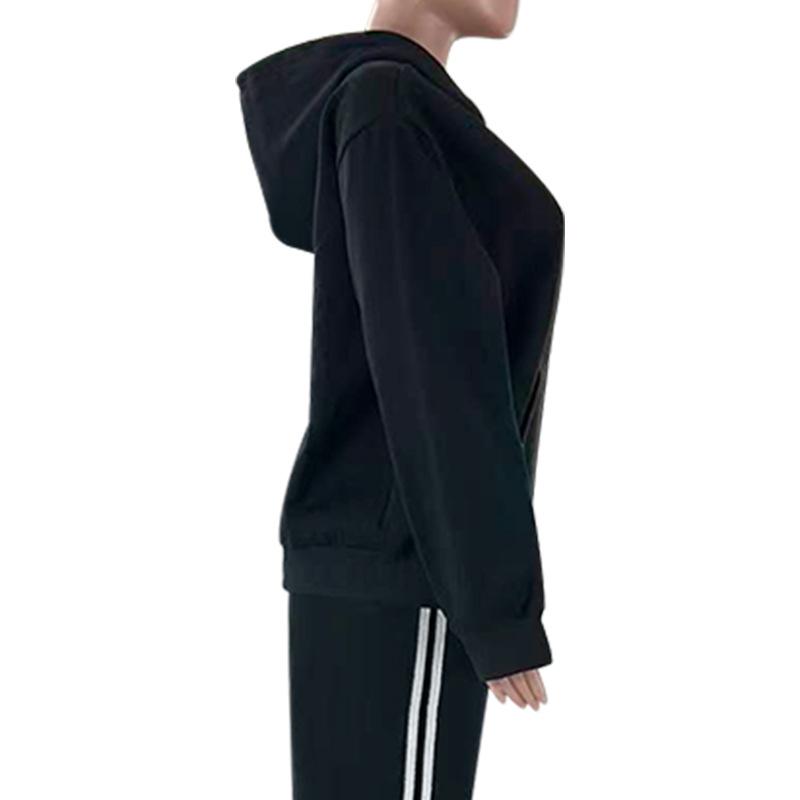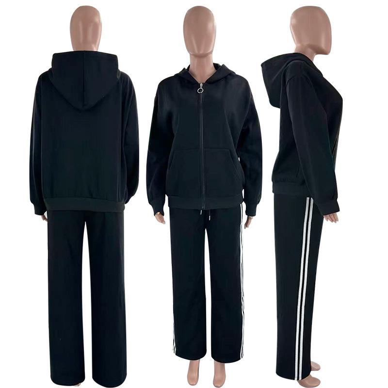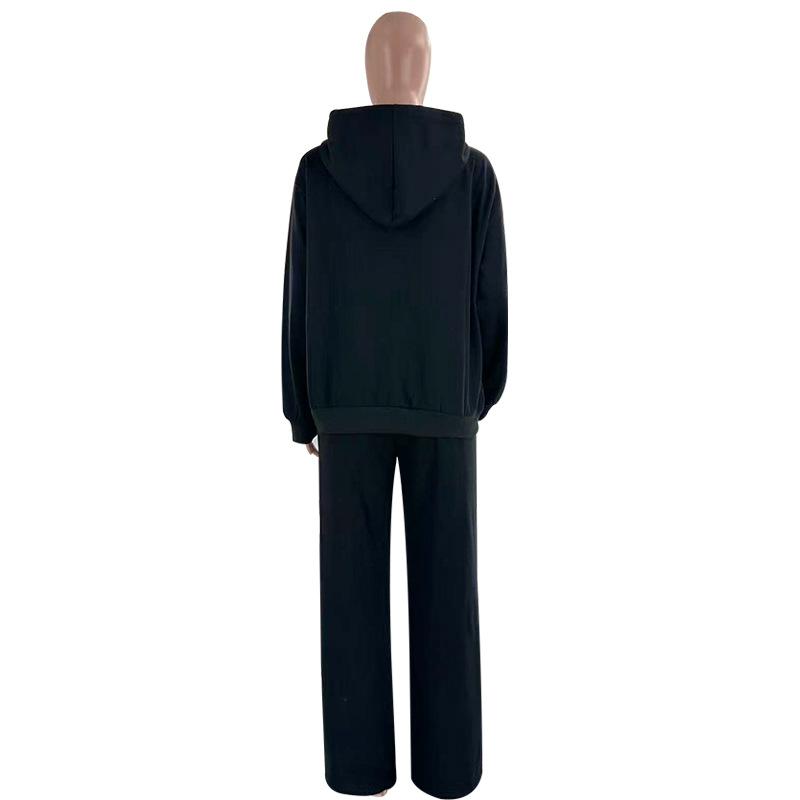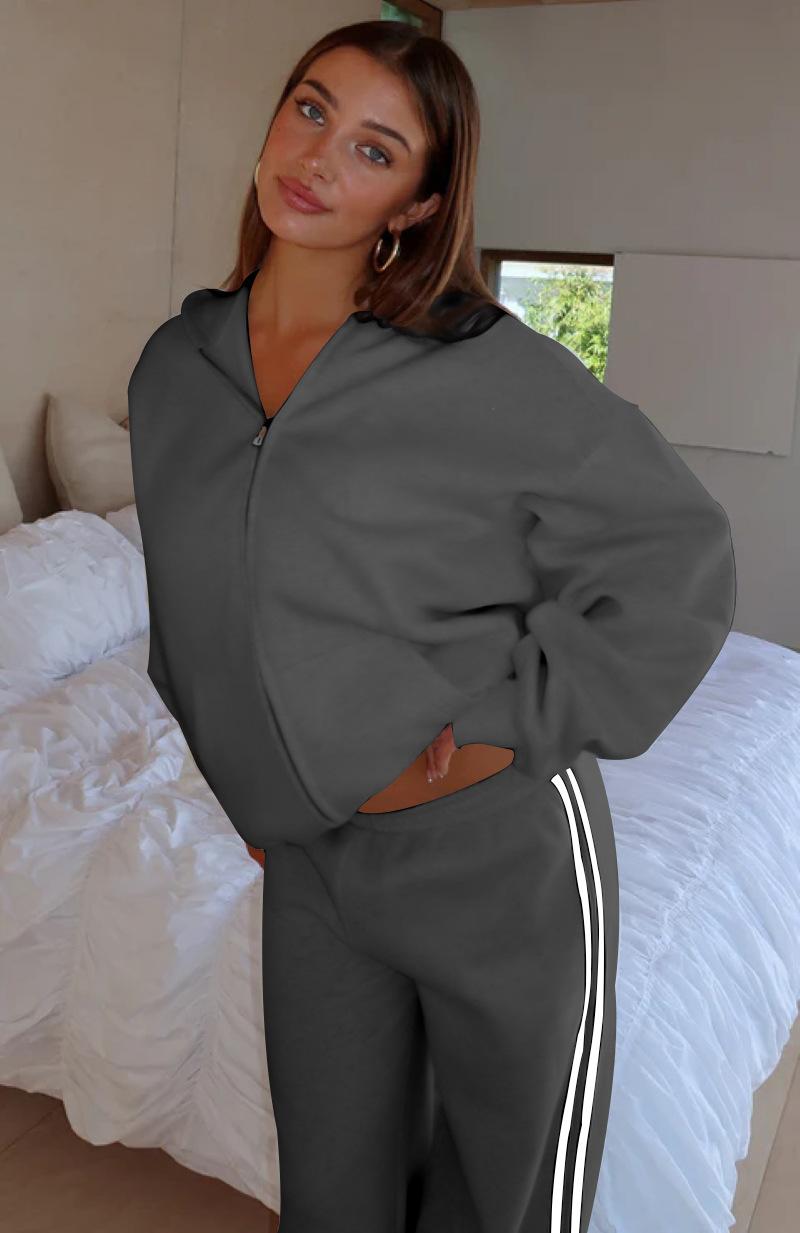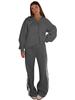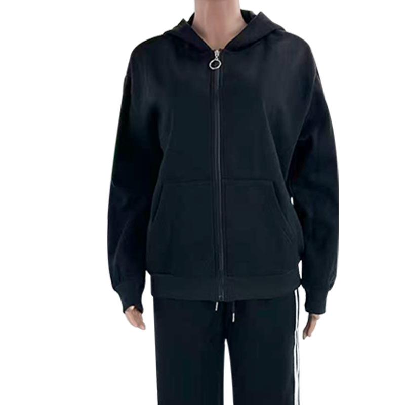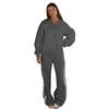 Cárdigan con capucha y cremallera de color sólido casual suelto de moda nueva de otoño e invierno europeo y americano, conjunto de pantalones largos con cordón para mujer