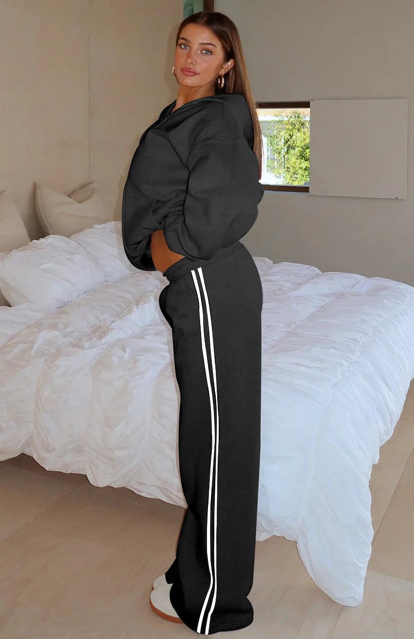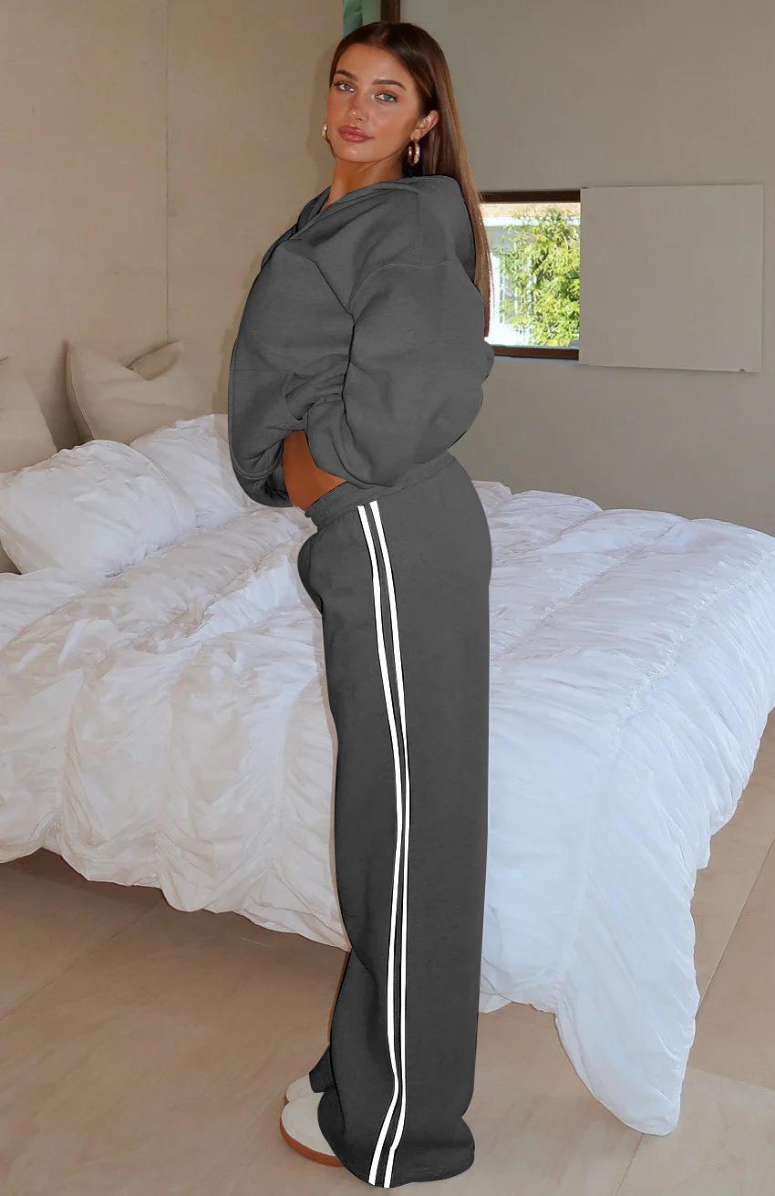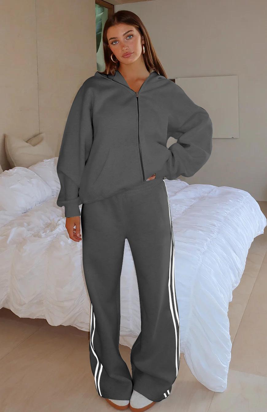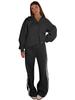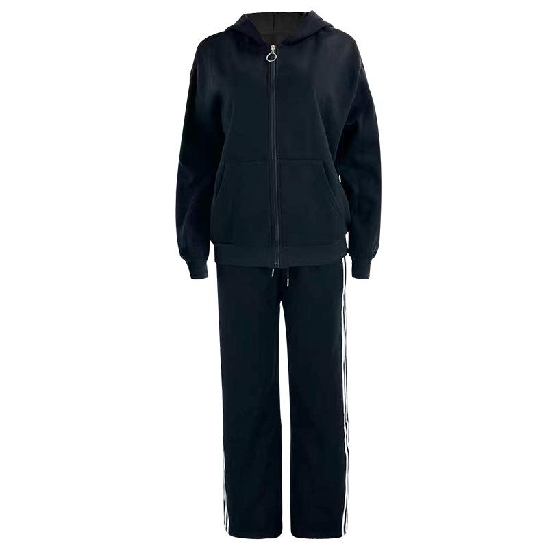 Cárdigan con capucha y cremallera de color sólido casual suelto de moda nueva de otoño e invierno europeo y americano, conjunto de pantalones largos con cordón para mujer