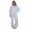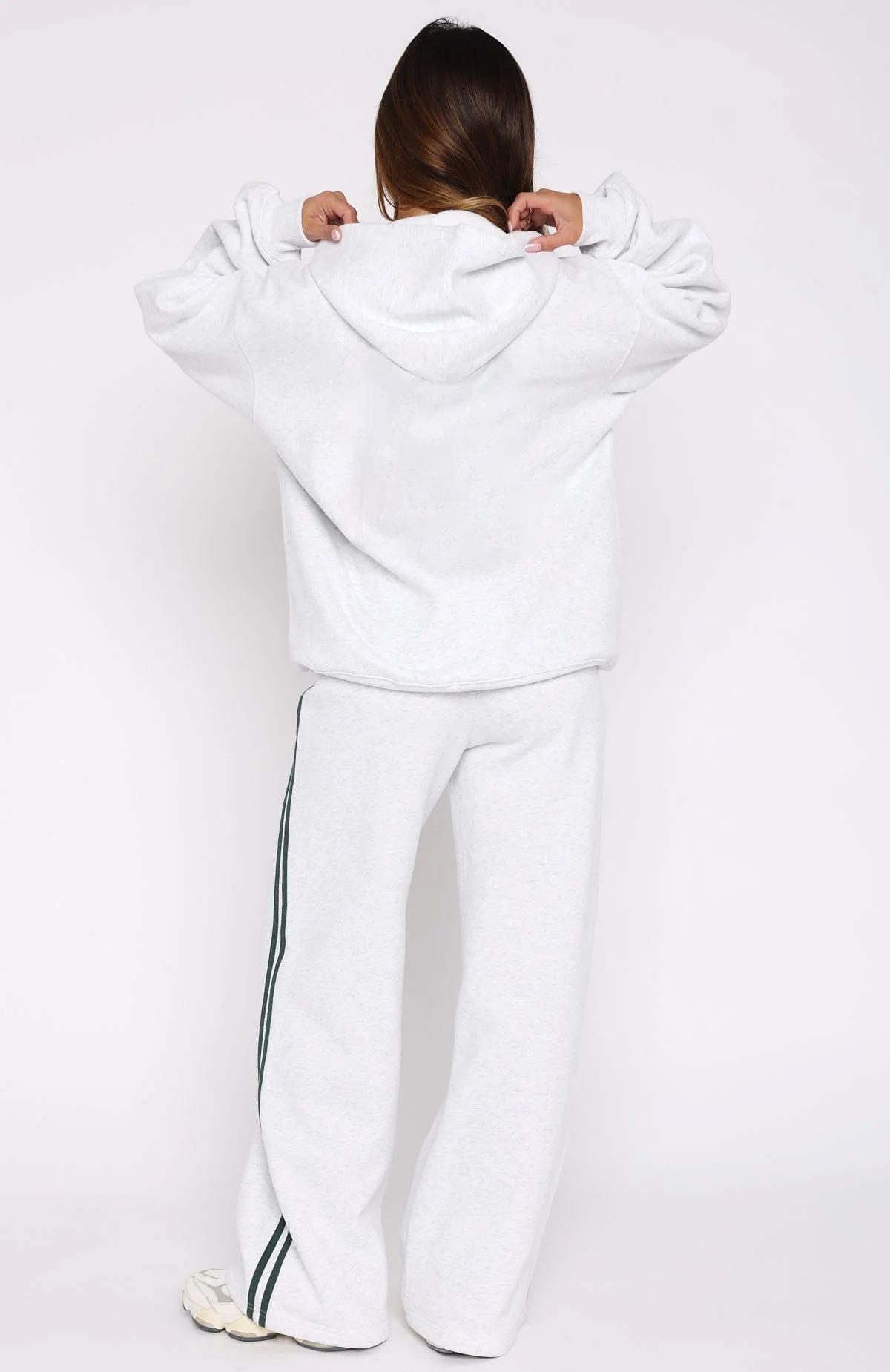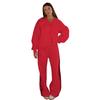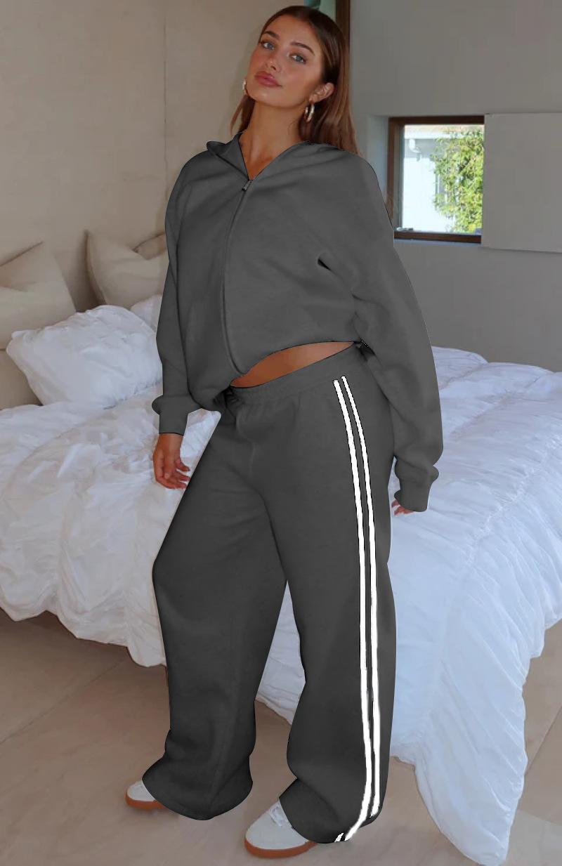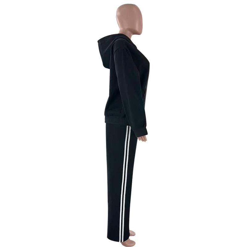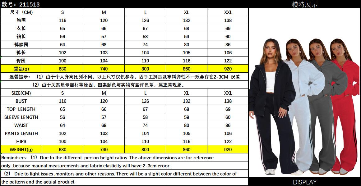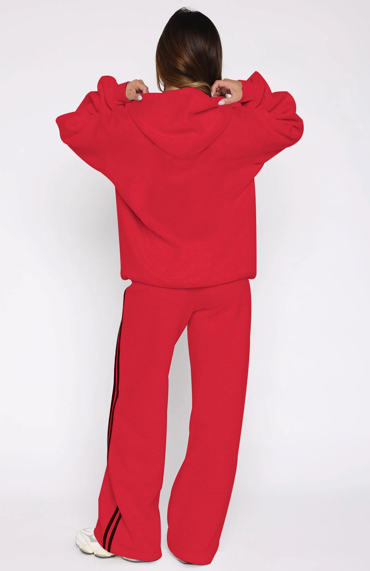 Cárdigan con capucha y cremallera de color sólido casual suelto de moda nueva de otoño e invierno europeo y americano, conjunto de pantalones largos con cordón para mujer