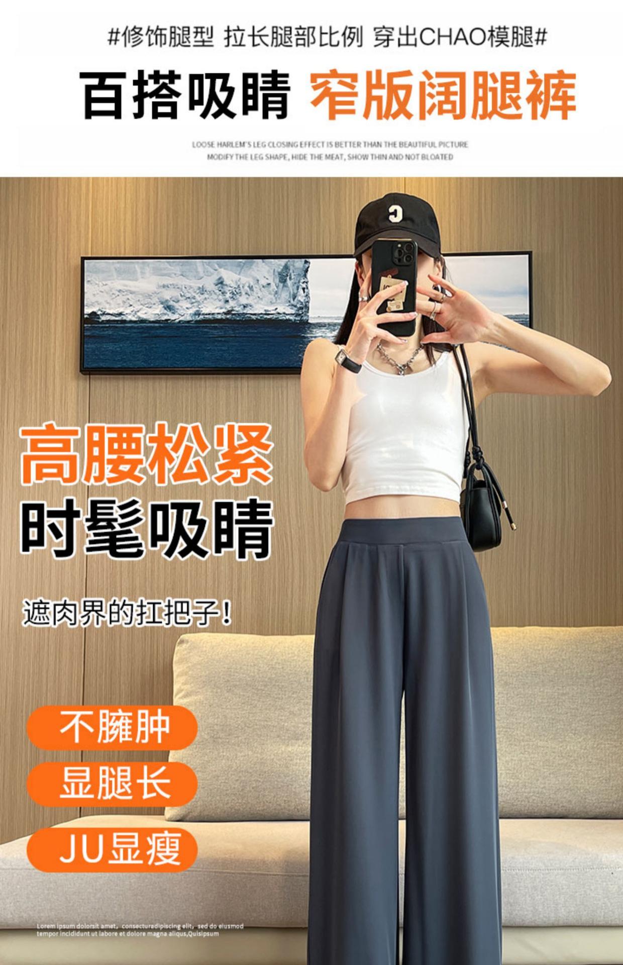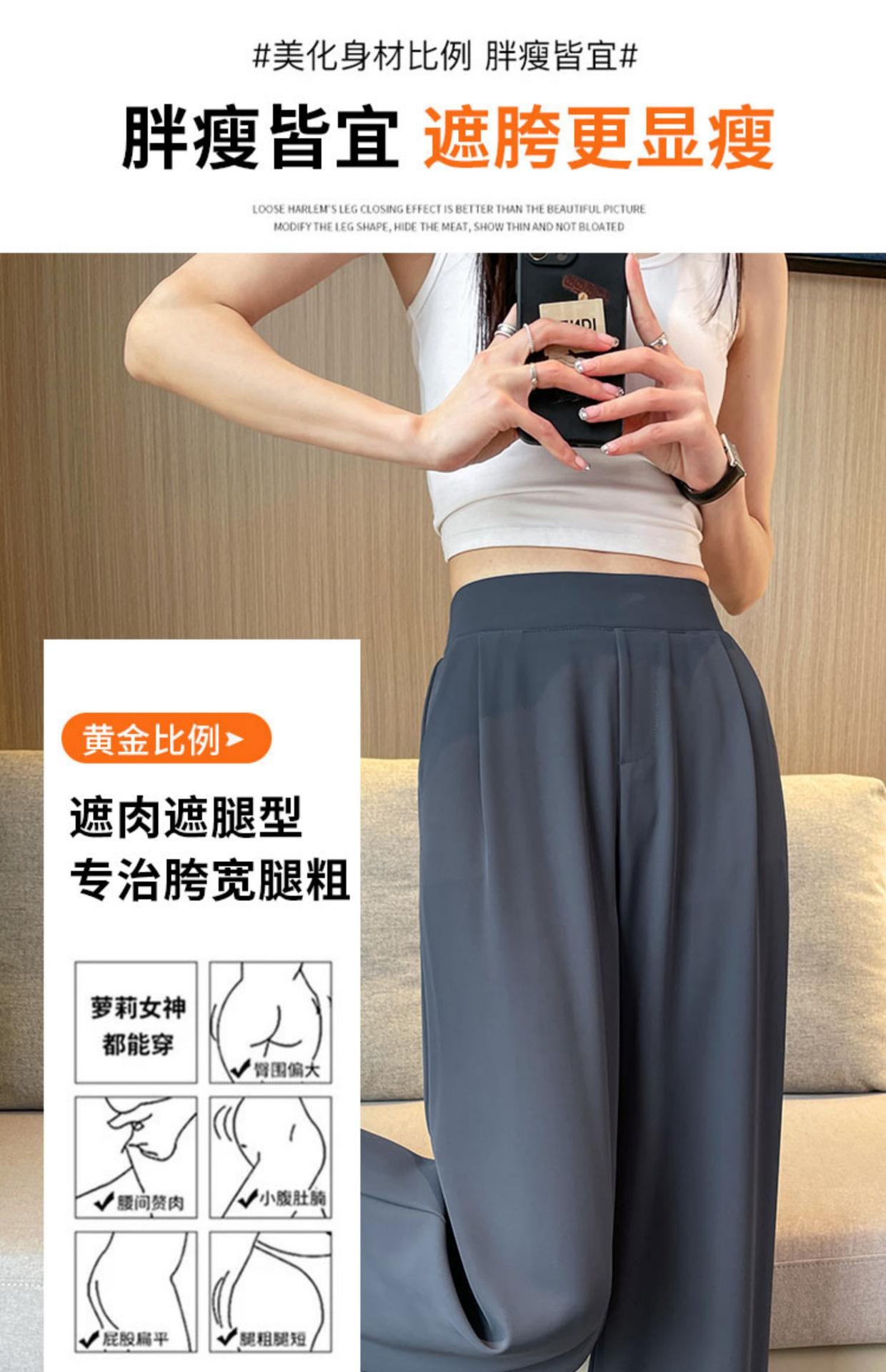 Pantalones de traje primavera y otoño cintura alta caída pantalones de pierna ancha 200 jin talla grande nuevos verano delgados casuales slim de pierna recta