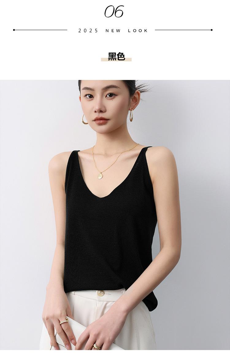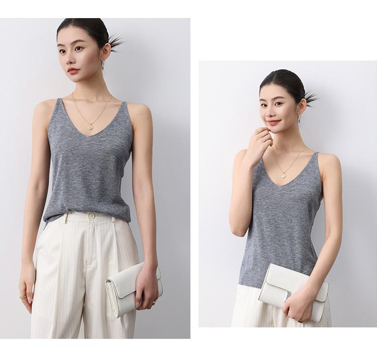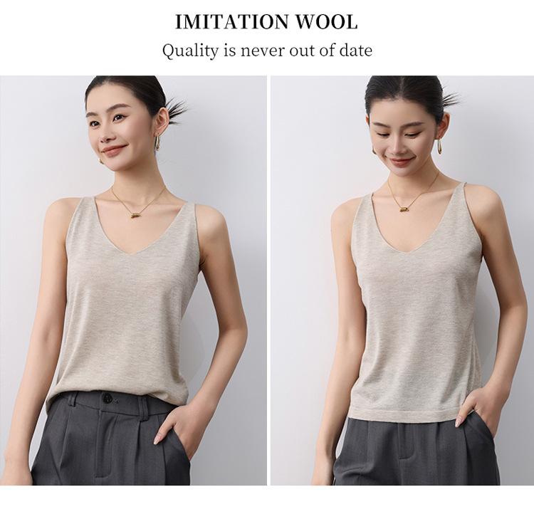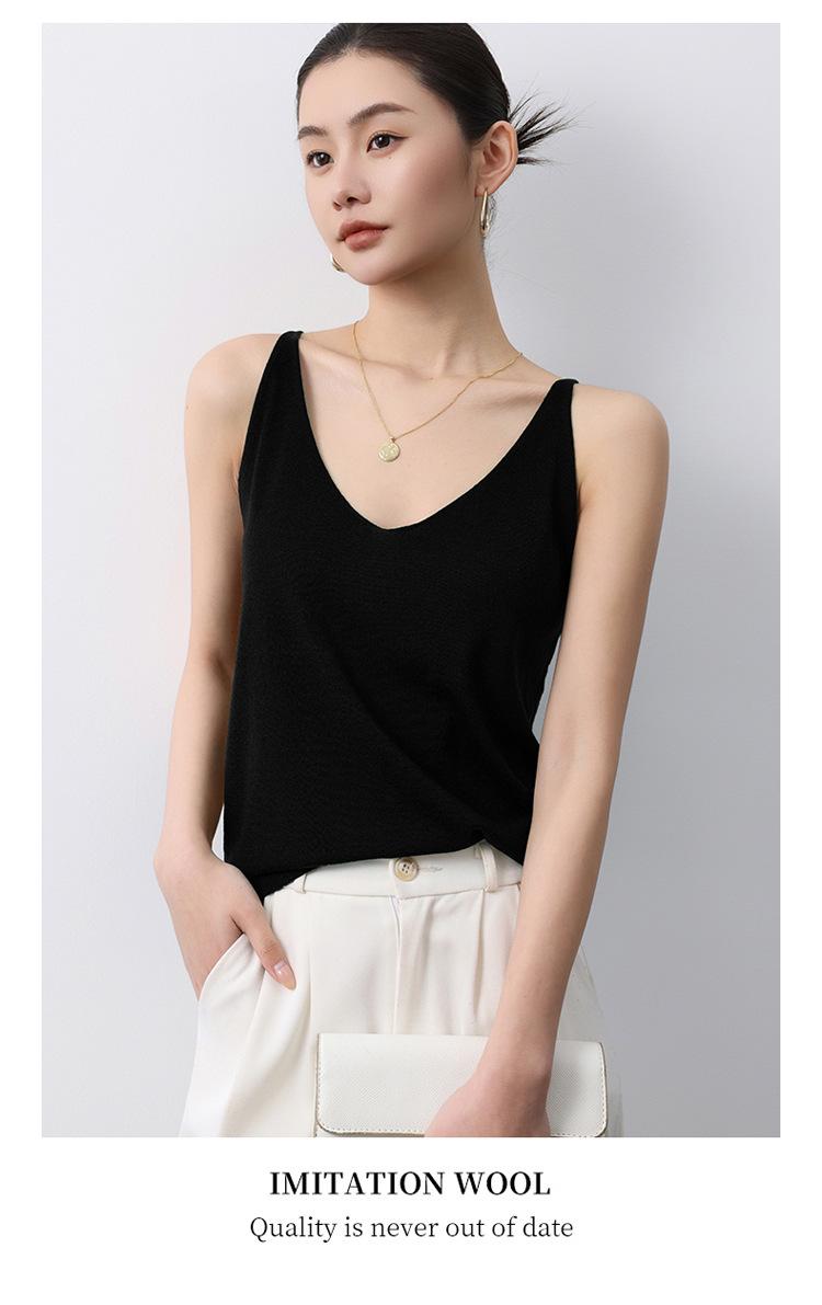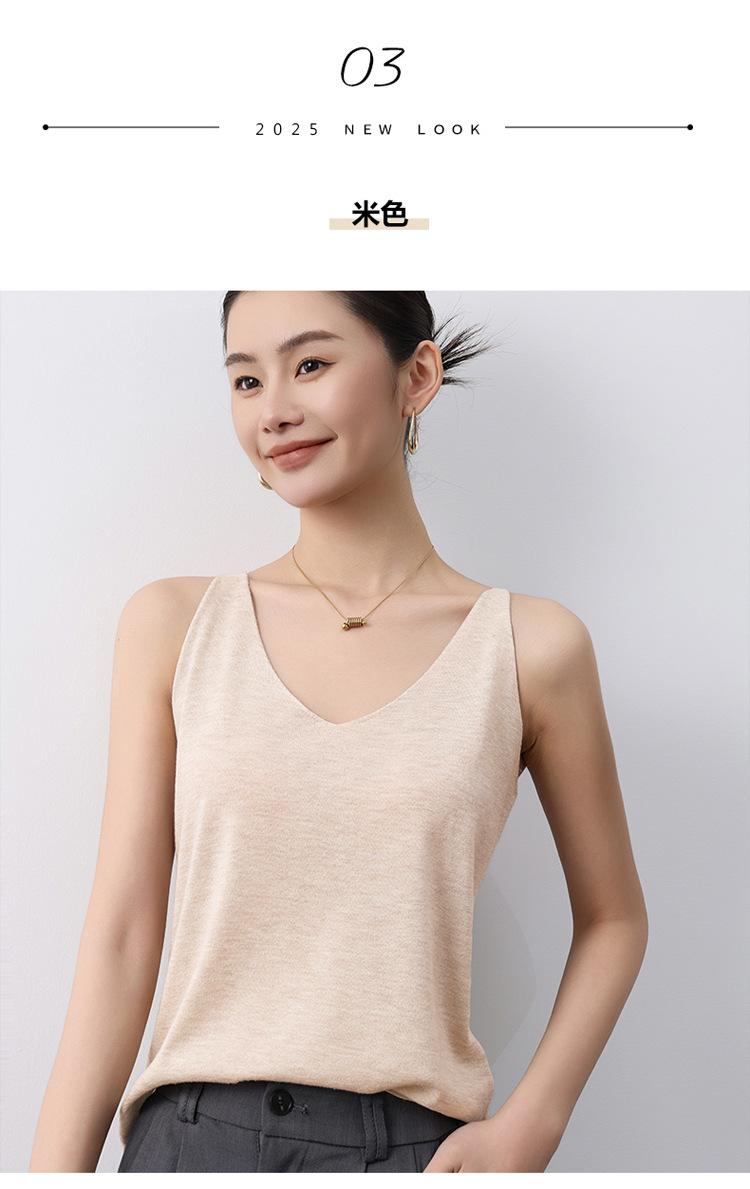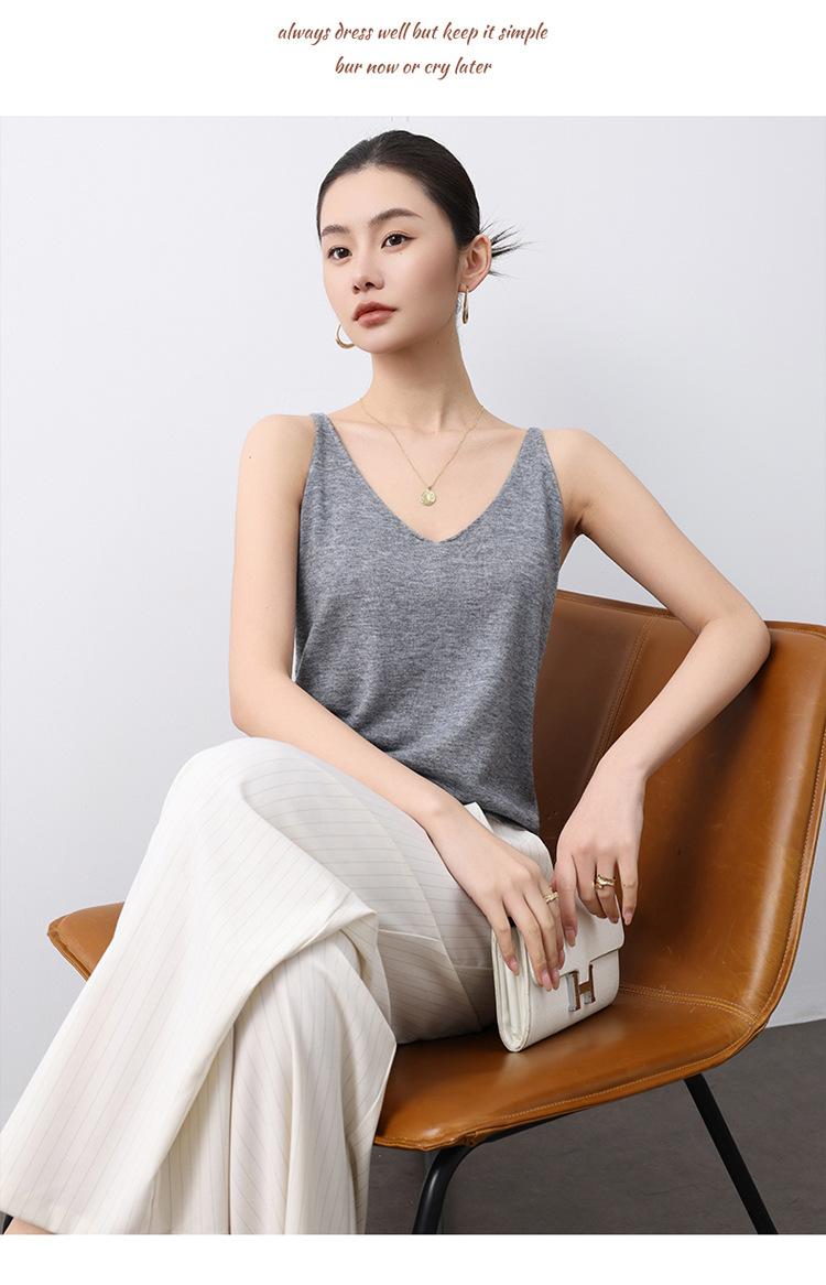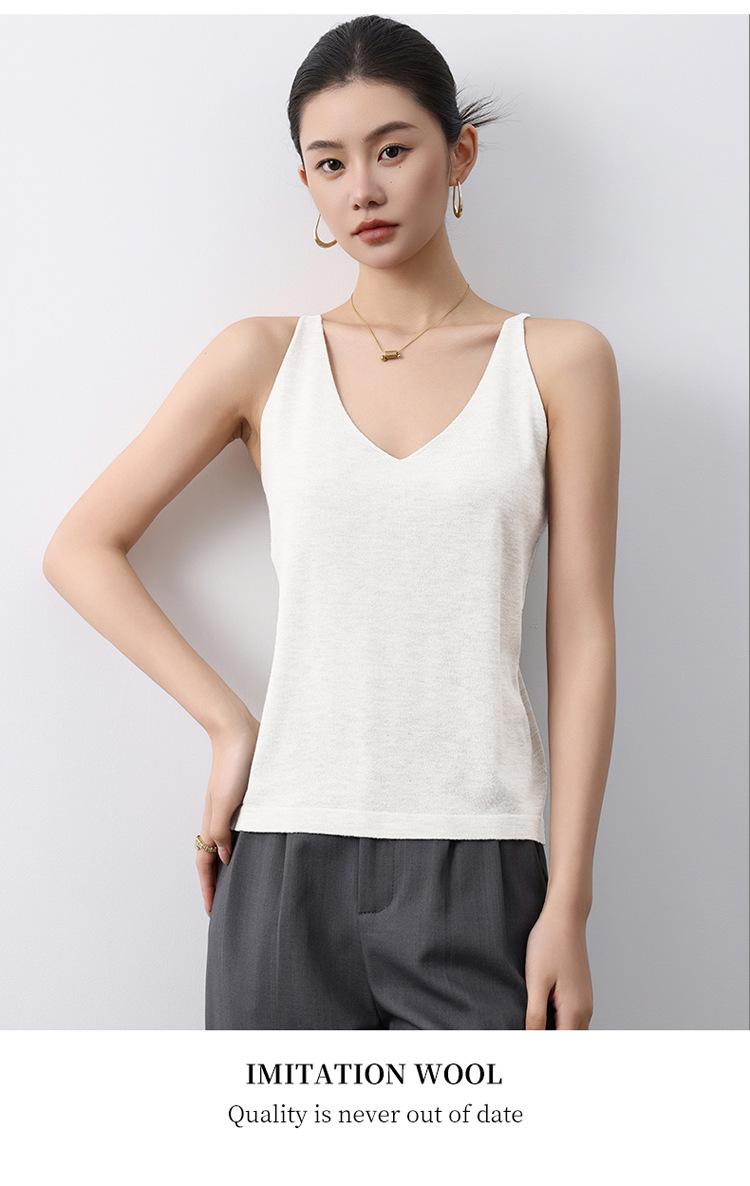 25 Nuevo Estilo Verano Camisola de Punto de Lana Peinada de 16 Agujas con Cuello en V para Mujer Color Puro Capa Interior Camiseta Top