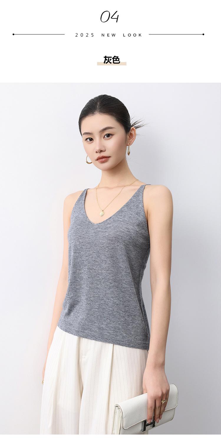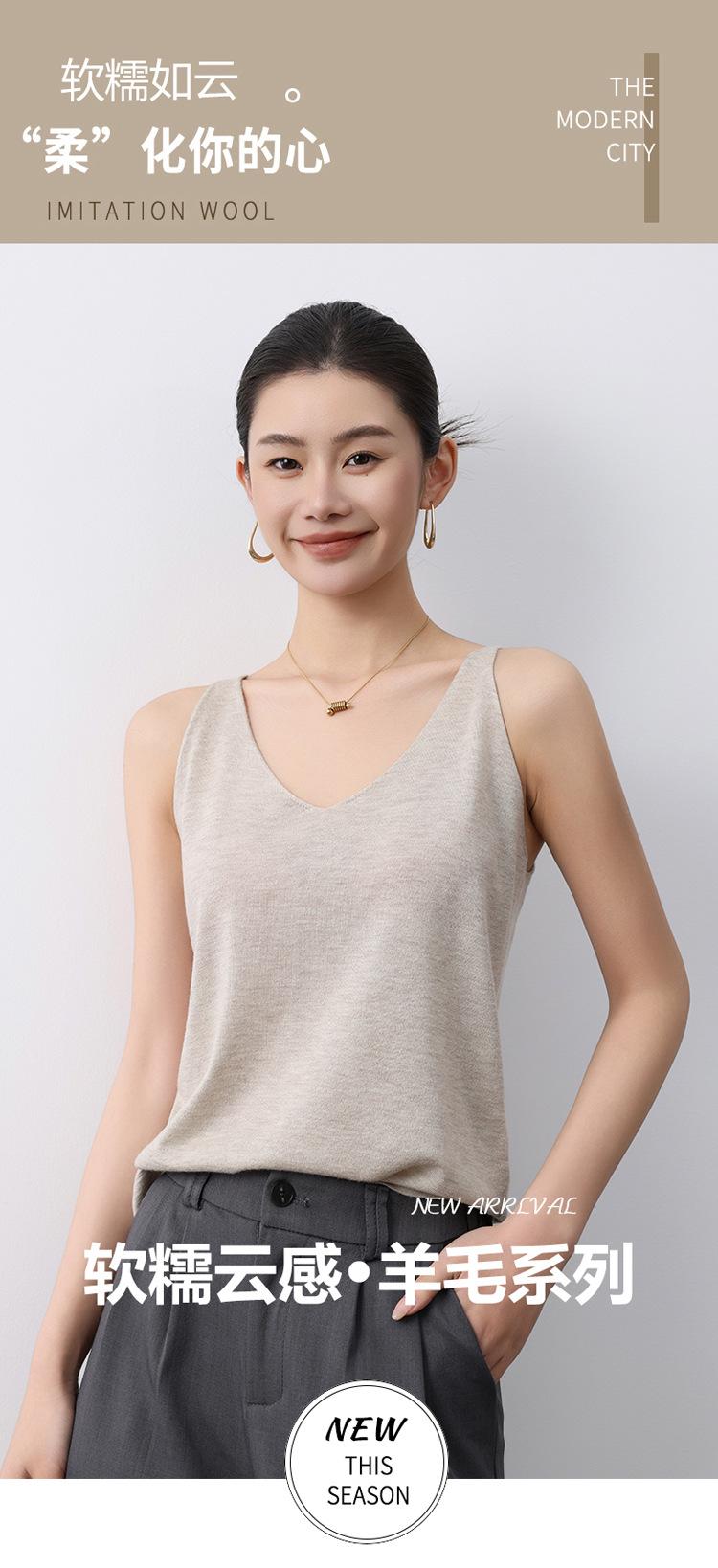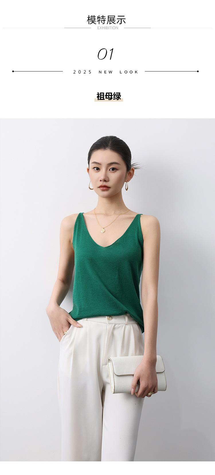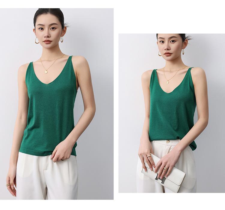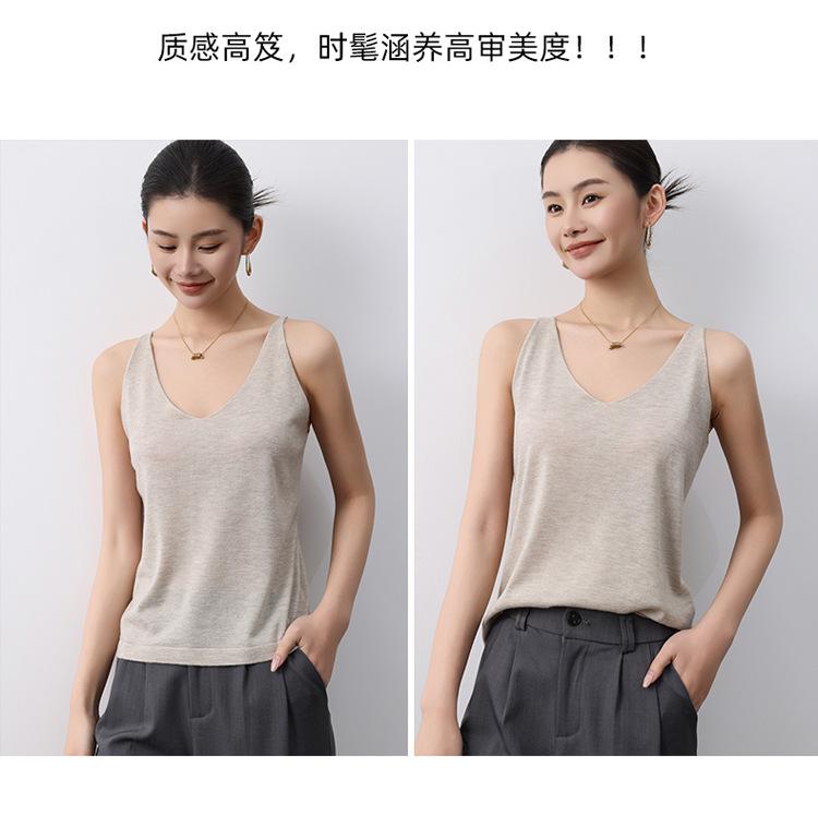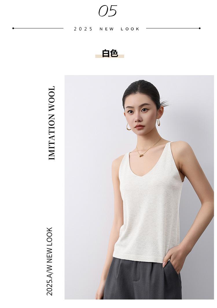 25 Nuevo Estilo Verano Camisola de Punto de Lana Peinada de 16 Agujas con Cuello en V para Mujer Color Puro Capa Interior Camiseta Top