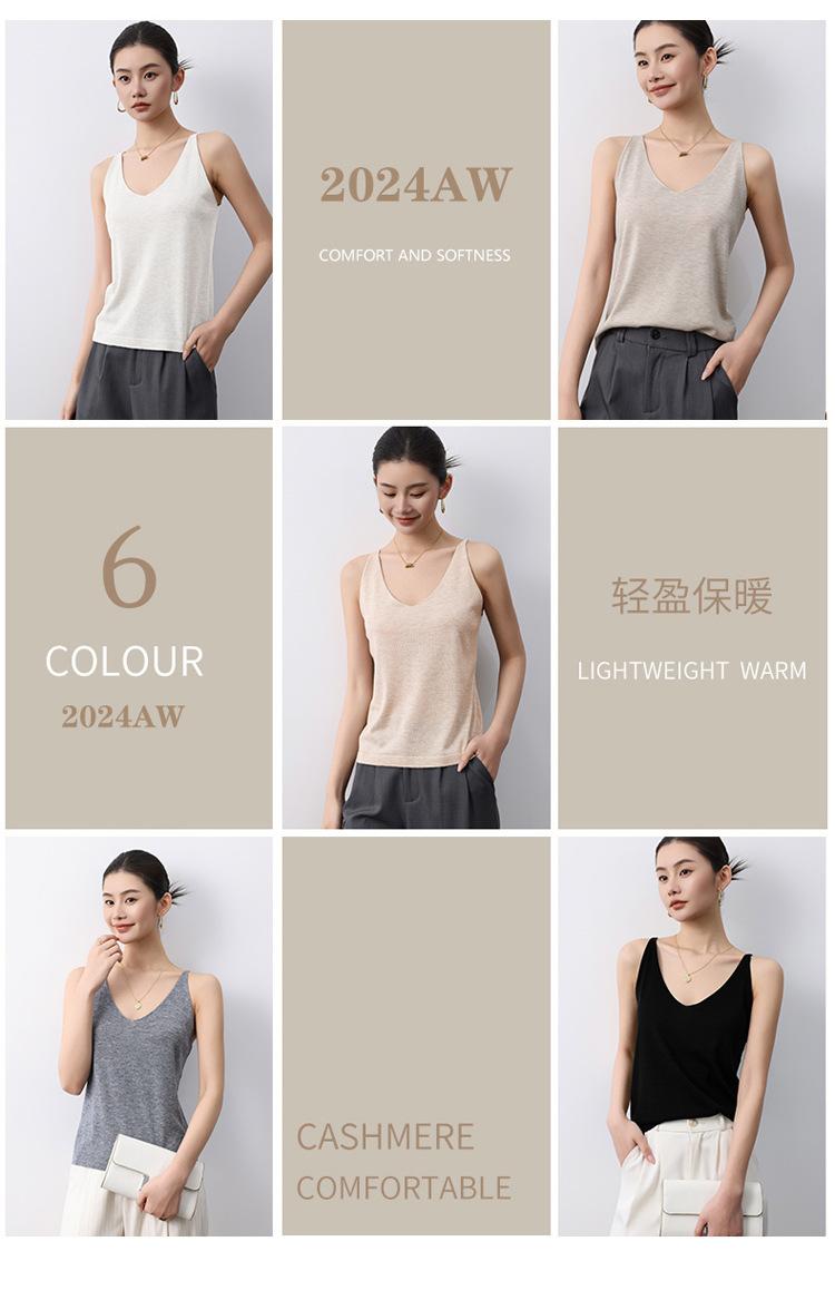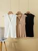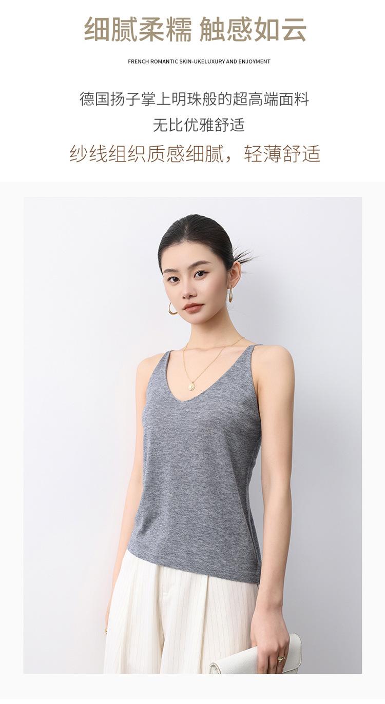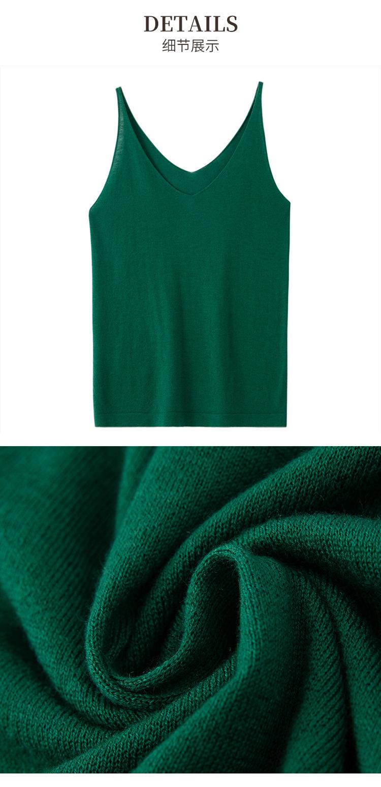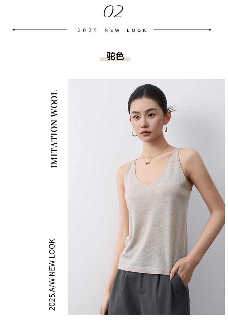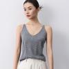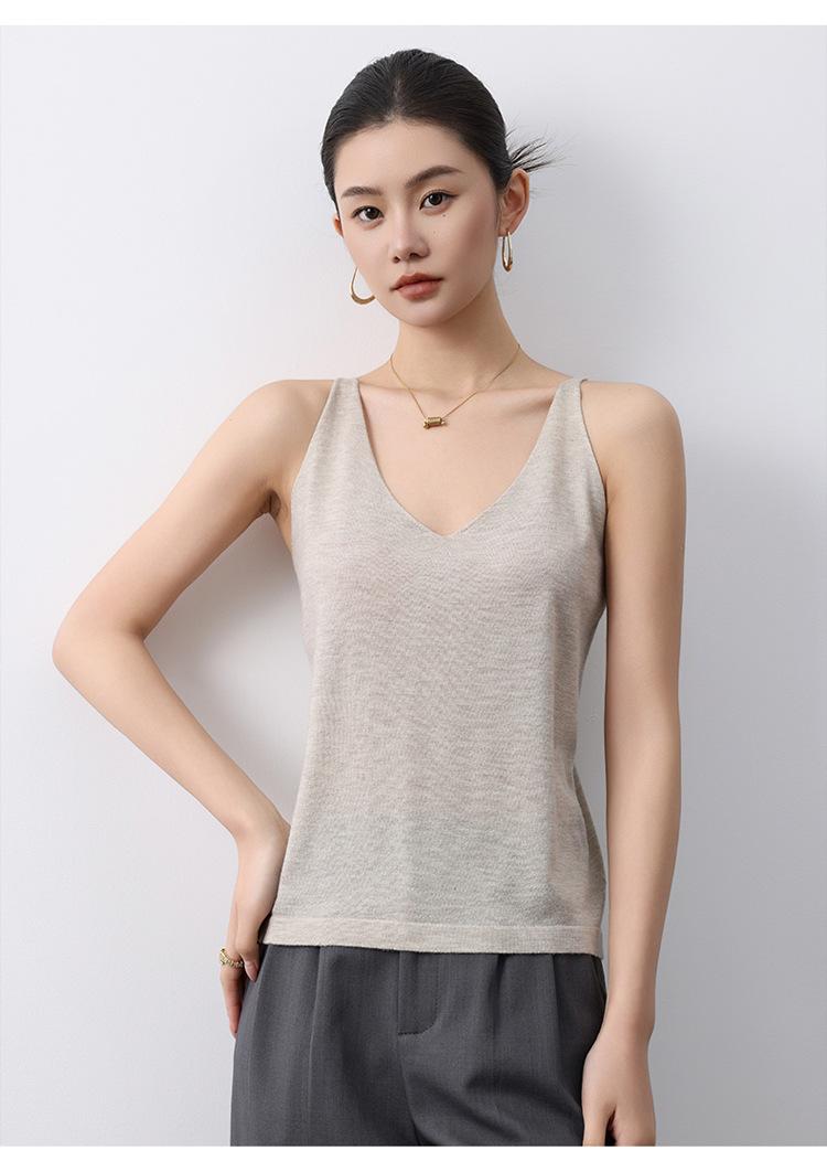25 Nuevo Estilo Verano Camisola de Punto de Lana Peinada de 16 Agujas con Cuello en V para Mujer Color Puro Capa Interior Camiseta Top