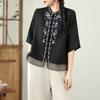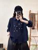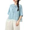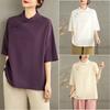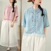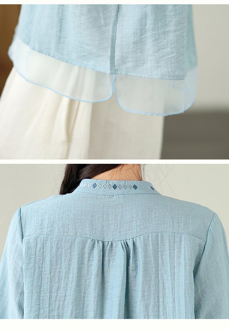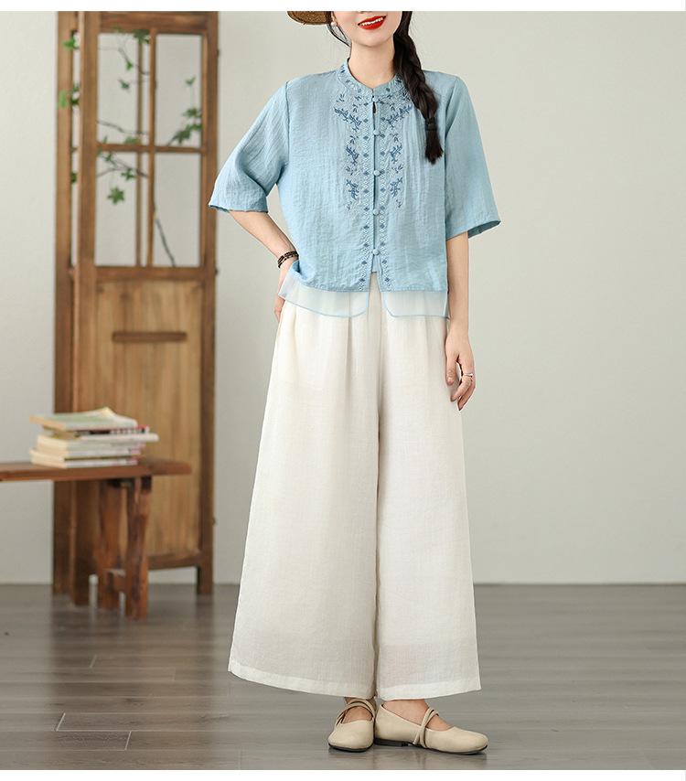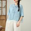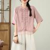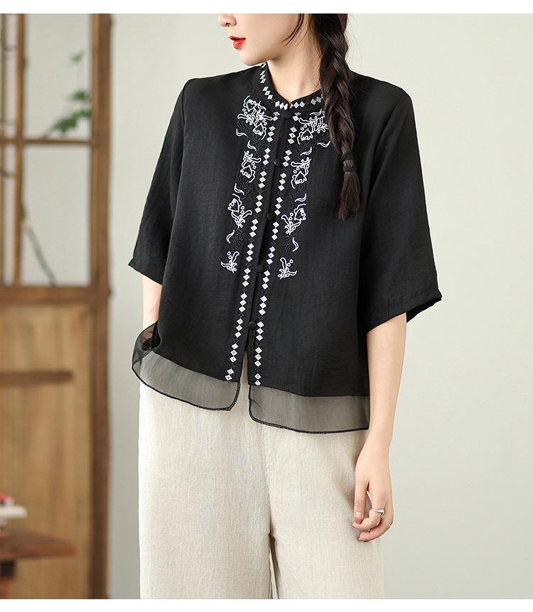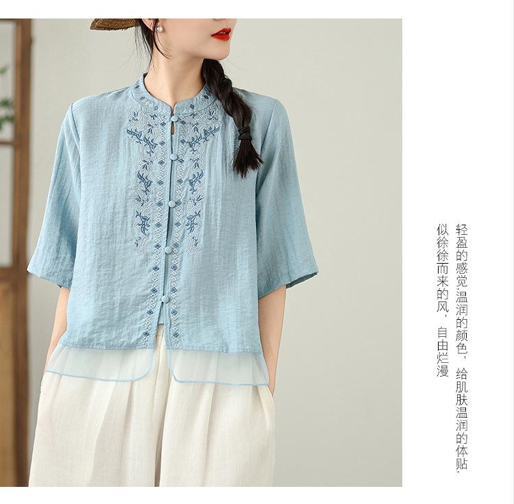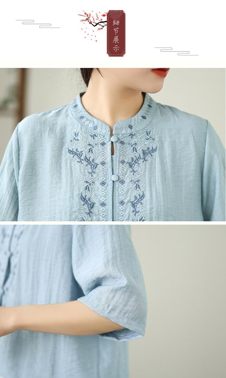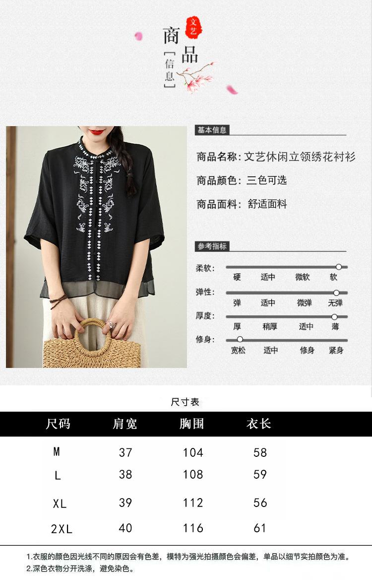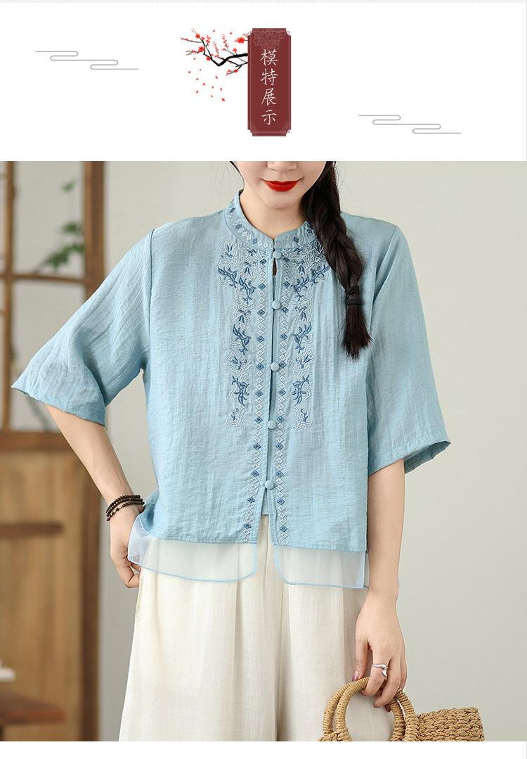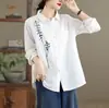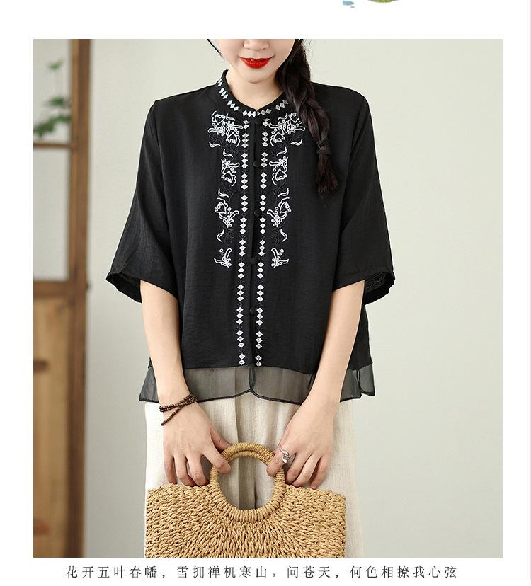 Foto Real Verano 2025 Color Sólido Nuevo Literario Bordado Patchwork Casual Simple Suelto Top Camisa Nuevo Estilo Chino