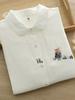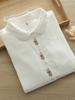 Primavera y Otoño Nuevo Estilo Artístico Fresco Bordado Lazo Camisa Cepillada Cuello Vuelto Manga Larga Versátil Camisa Base Venta al Mayoreo