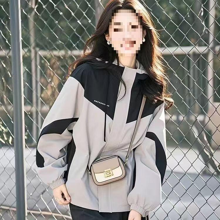 Chaqueta Casual con Capucha de Moda Cortavientos Primavera Otoño 2025 Nueva Chaqueta Holgada Petite Corta